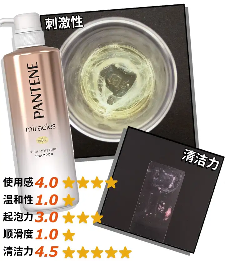 这款潘婷高保湿洗发水是日本P&G/宝洁旗下的,它的特点就是——清洁有余,保湿不够。较强的脱脂力很容易带走头皮必需的营养成分,导致头发环境更加干燥。另外顺滑度的得分也非常低,找不到非它不可的理由。