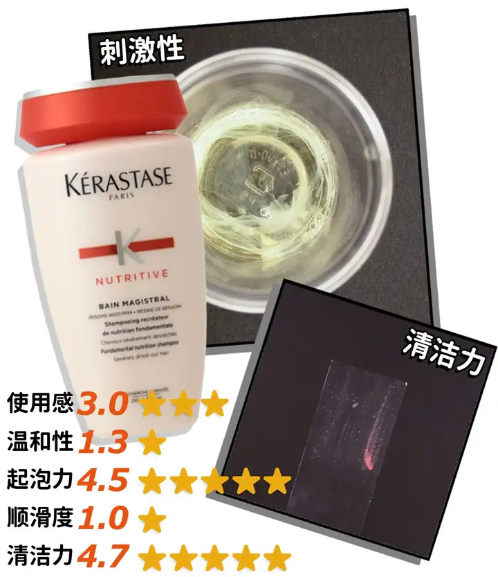 来自巴黎的卡诗,在日本也是非常人气的沙龙专卖品牌。不过这次评测中我们发现,这款卡诗的润养洗发水并不太适合亚洲人发质——清洁力过高(4.7分),而温和性较低(1.3分),这个评分组合对于敏感肌人士实在不够友好。除了起泡力好、使用起来方便之外,几乎没什么值得一提的优点。