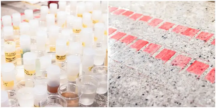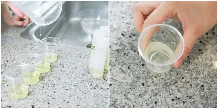 之后,将玻璃片在稀释后的洗发水溶液中浸泡、搅拌,并观察油脂的脱落情况。油脂脱落得越多,说明清洁力越强,得分也就越高。