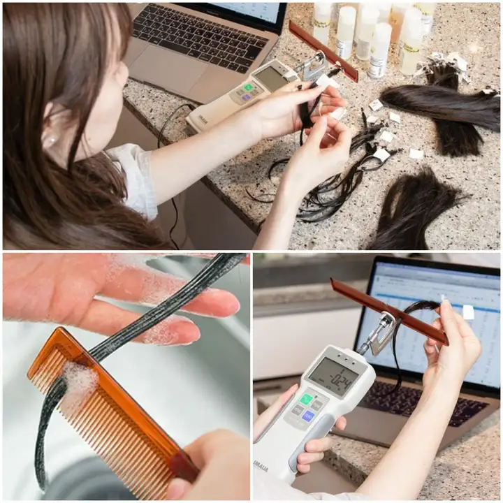 最后,我们将使用专业的压力测试仪,测量用梳子梳理发束时摩擦产生的压力值。为了使结果更精确,每束头发都将测量10次,取平均值作为最终结果。