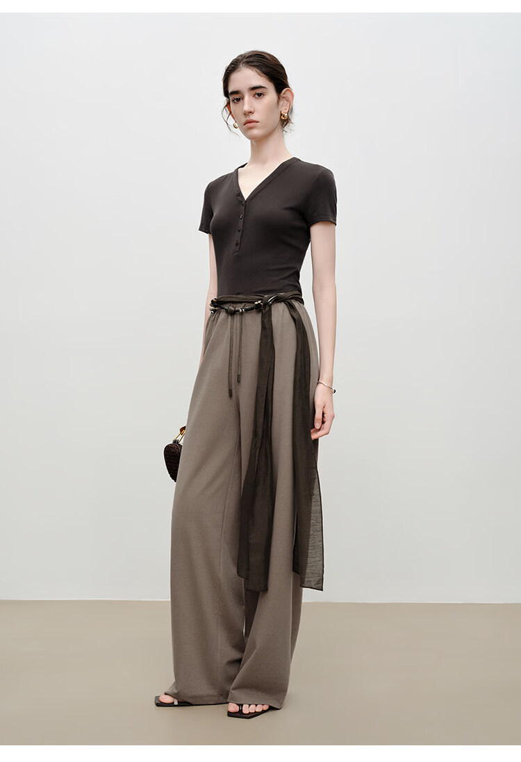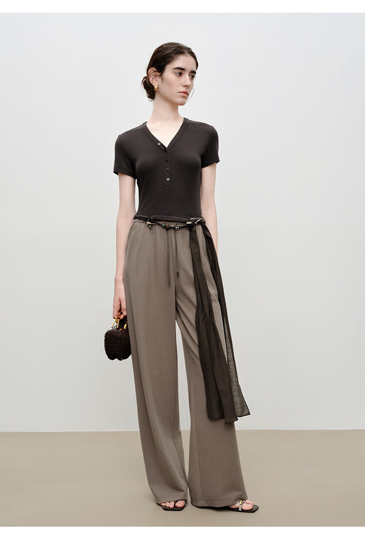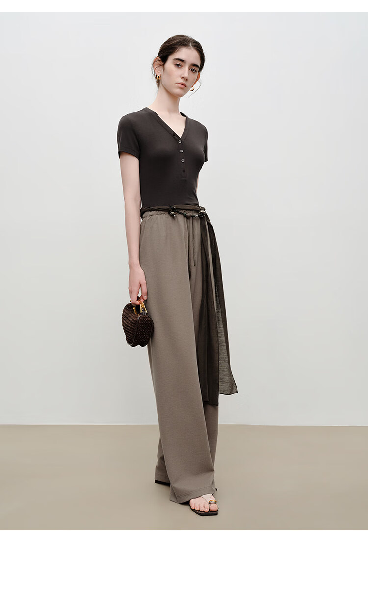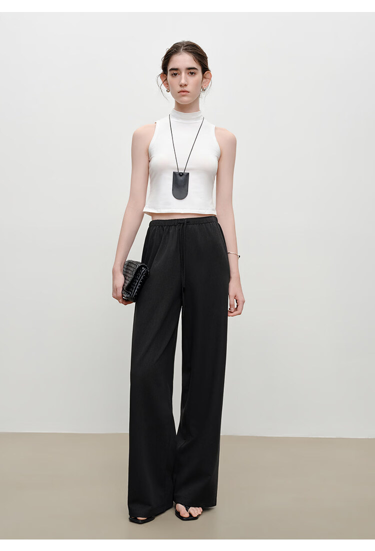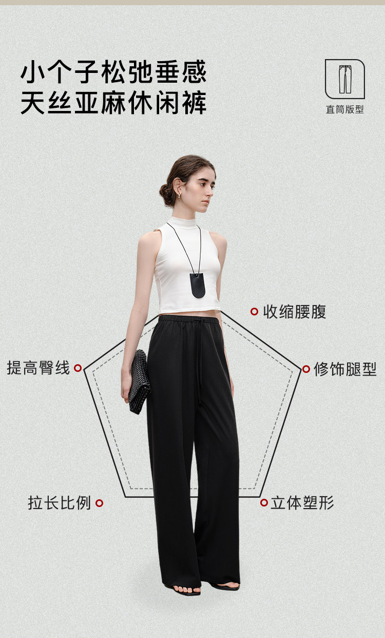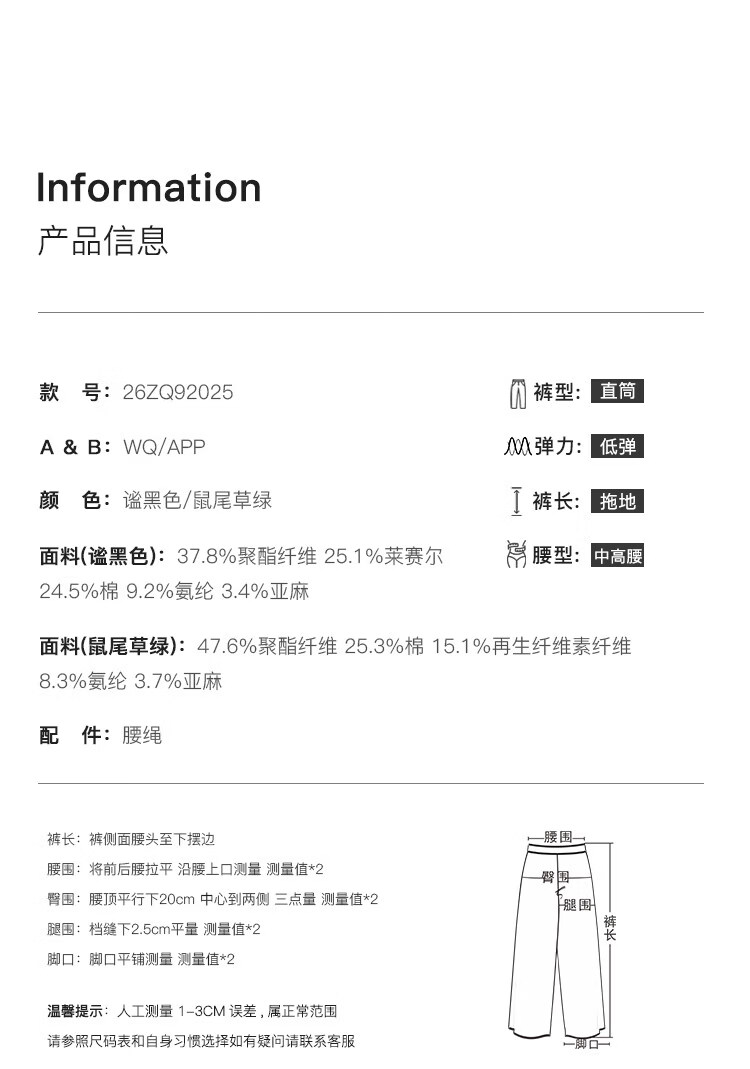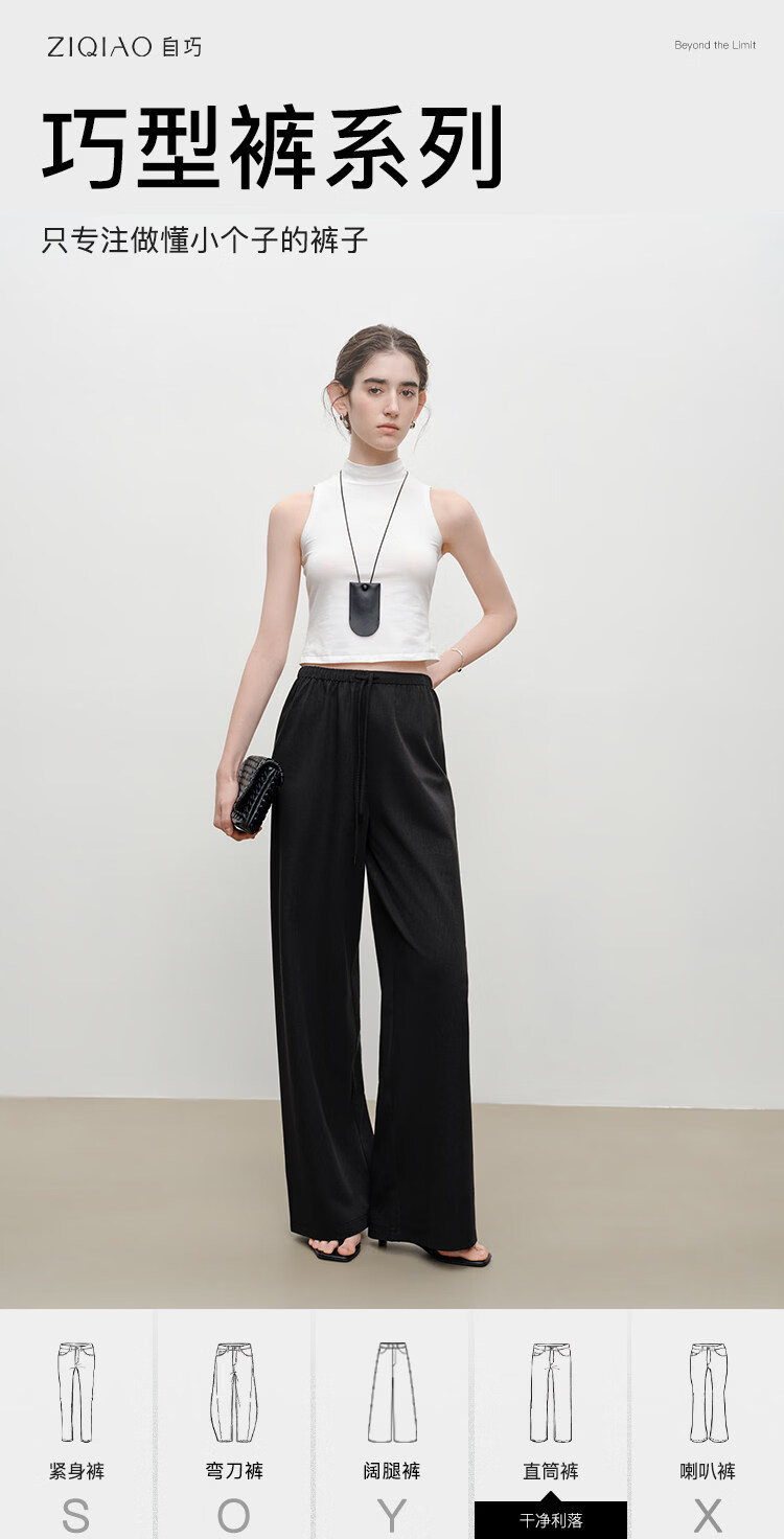 自巧小个子松弛感无侧缝松紧腰抽绳休闲裤女2026年夏季新品 鼠尾草绿 XS (尺码:2)