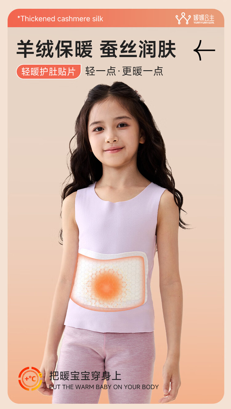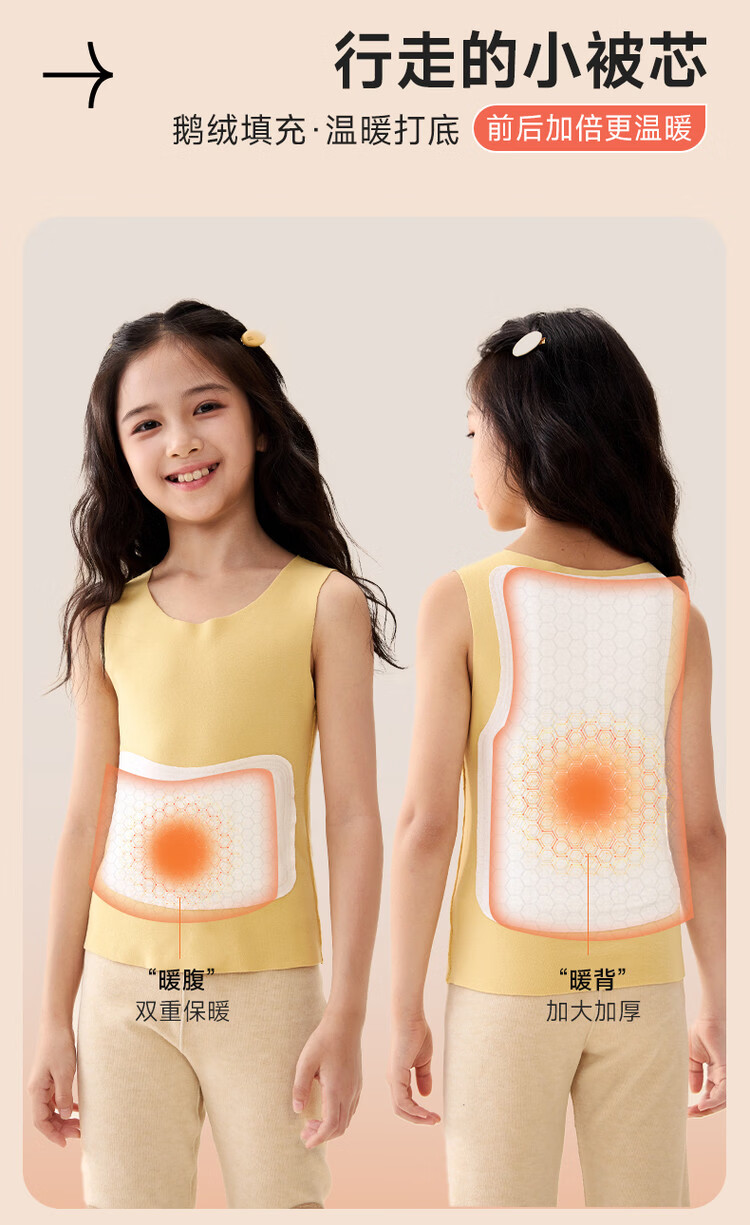 媛媛公主【含鹅绒】儿童保暖背心秋冬款女童亲肤蓄热打底内胆防寒校服神器 粉色 110