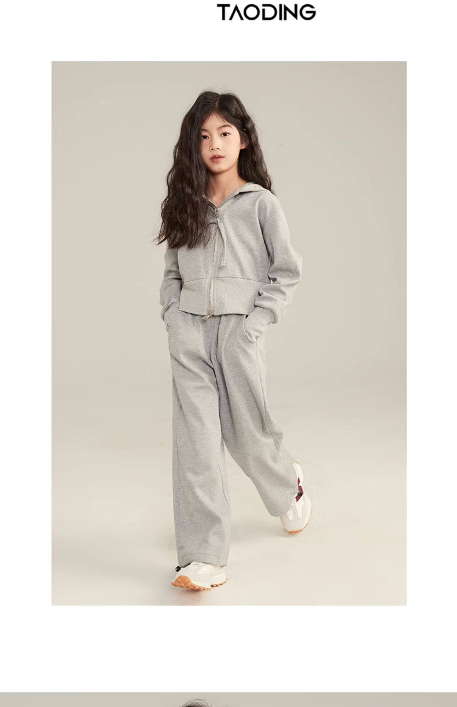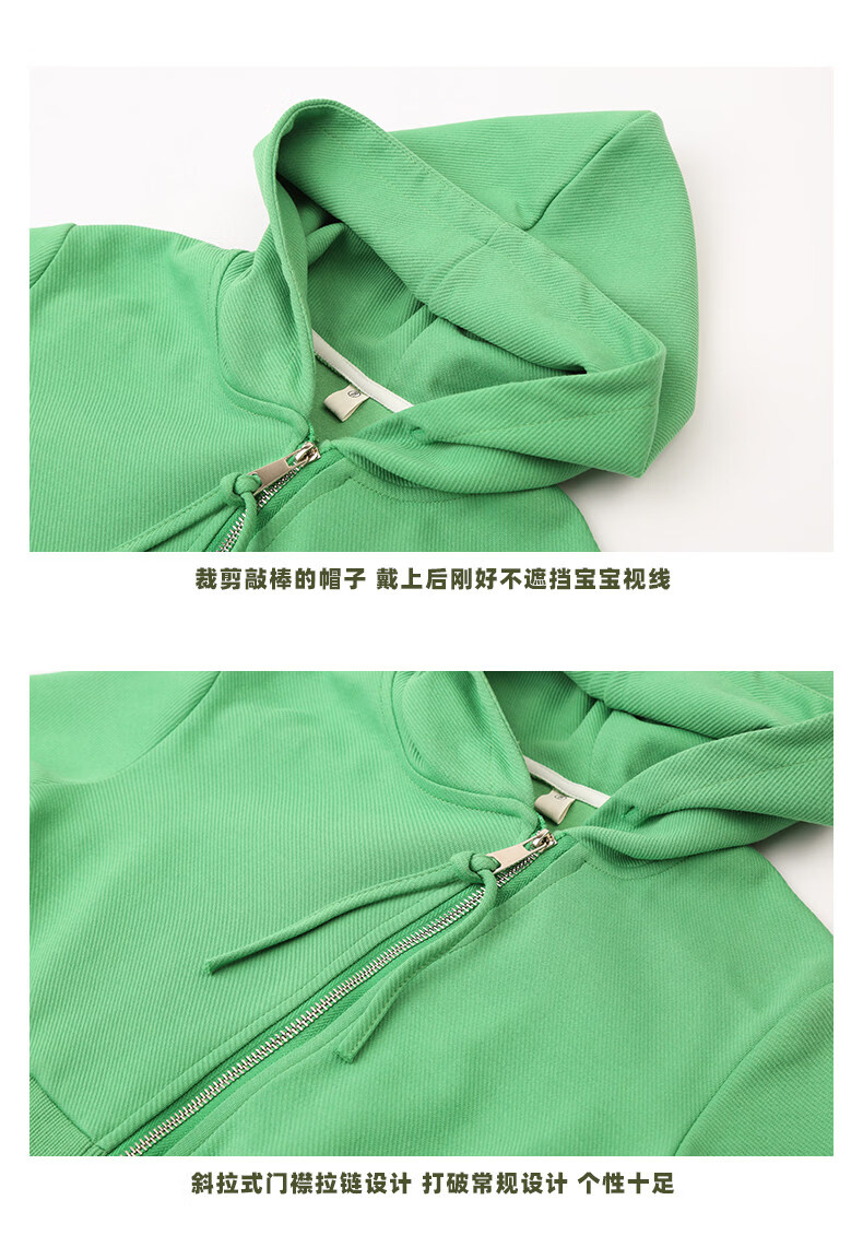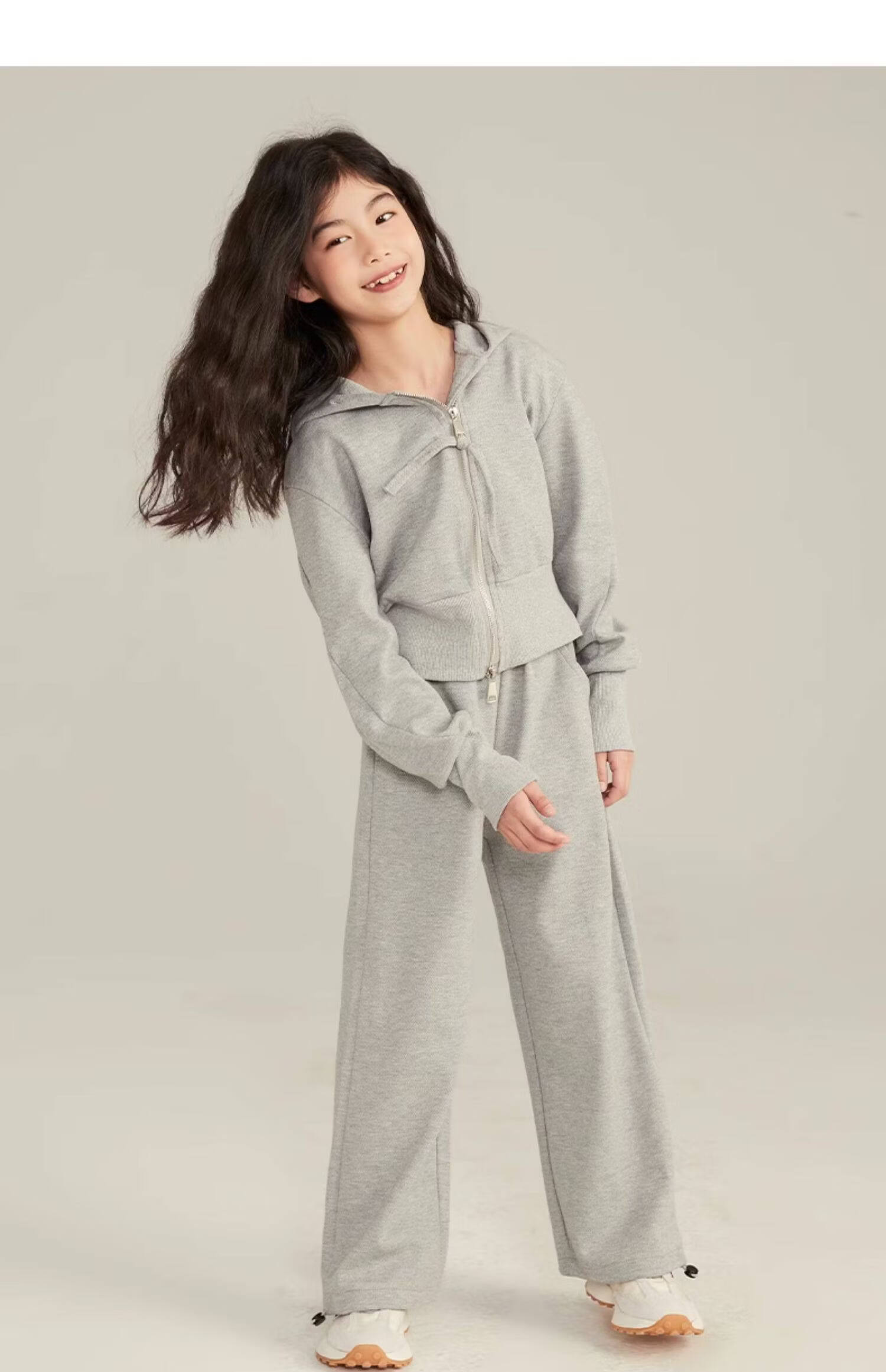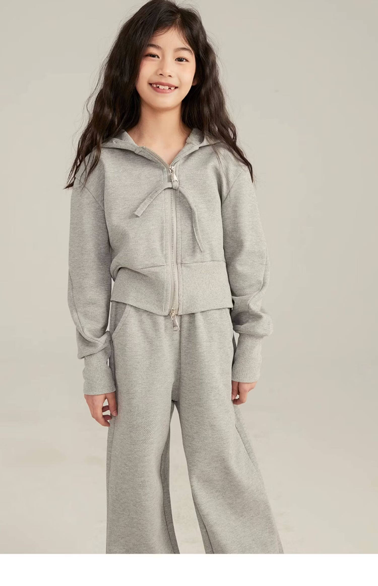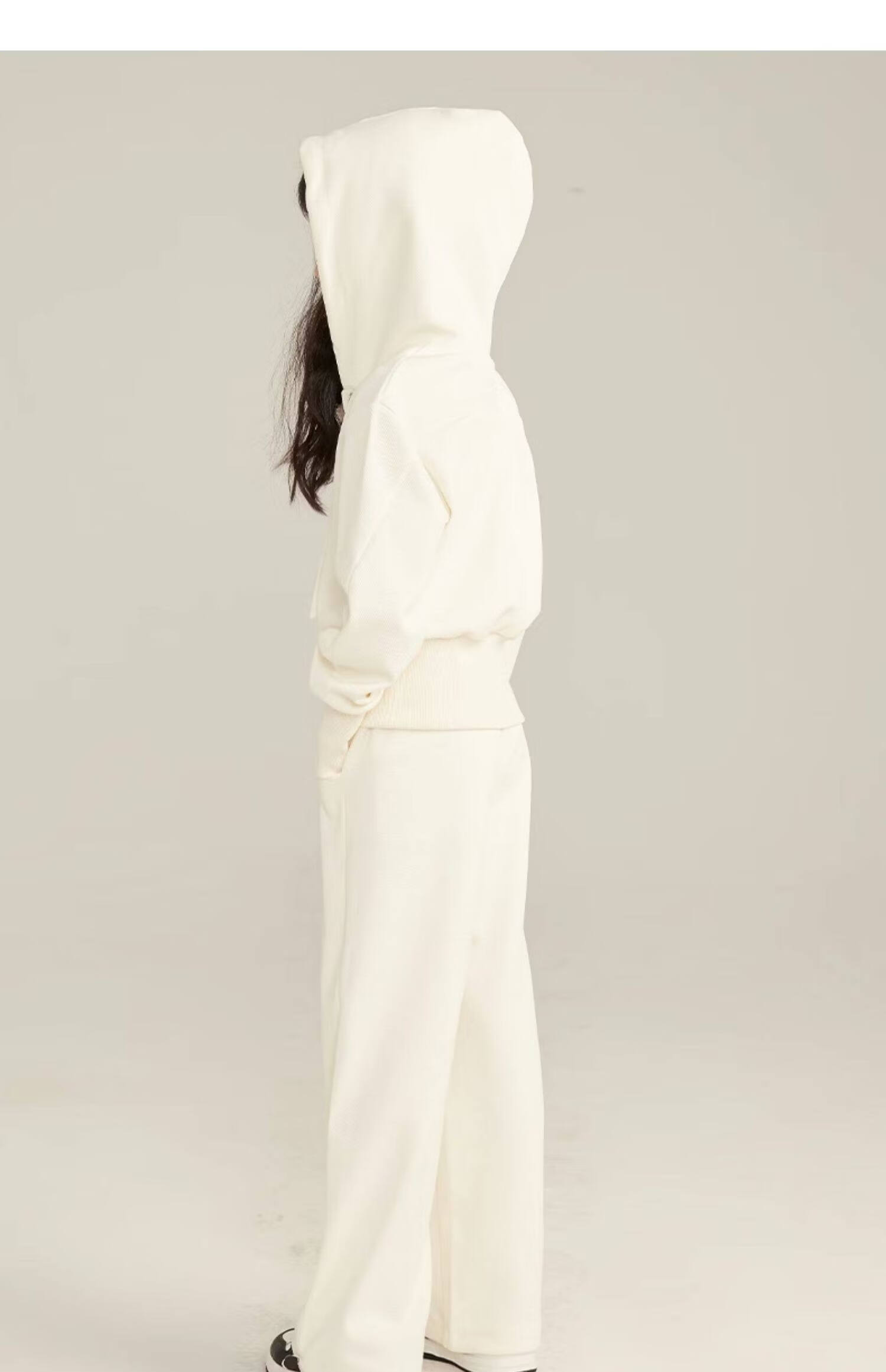 淘町女童套装春秋装新款中大童休闲纯色美式拉链儿童运动连帽两件套 米白色 斜拉链设计 170