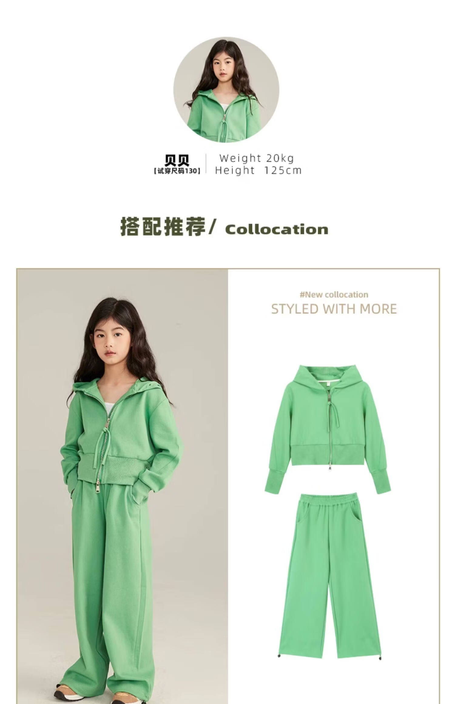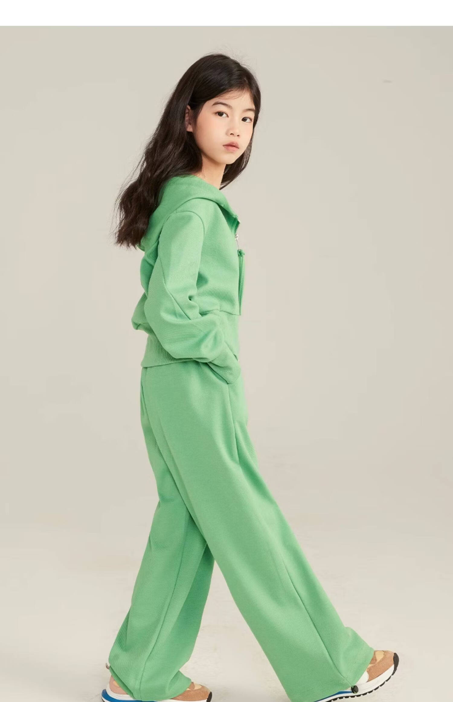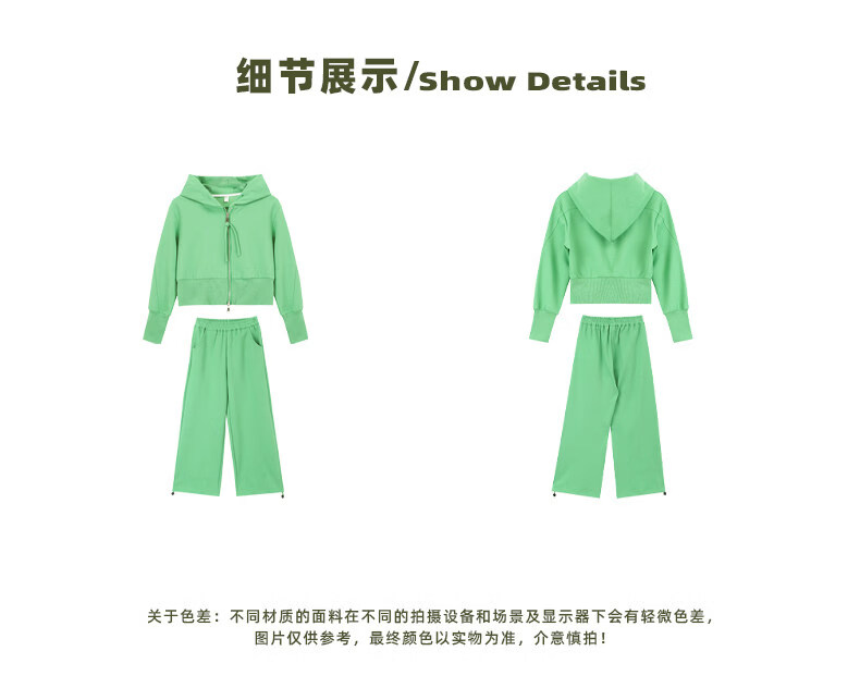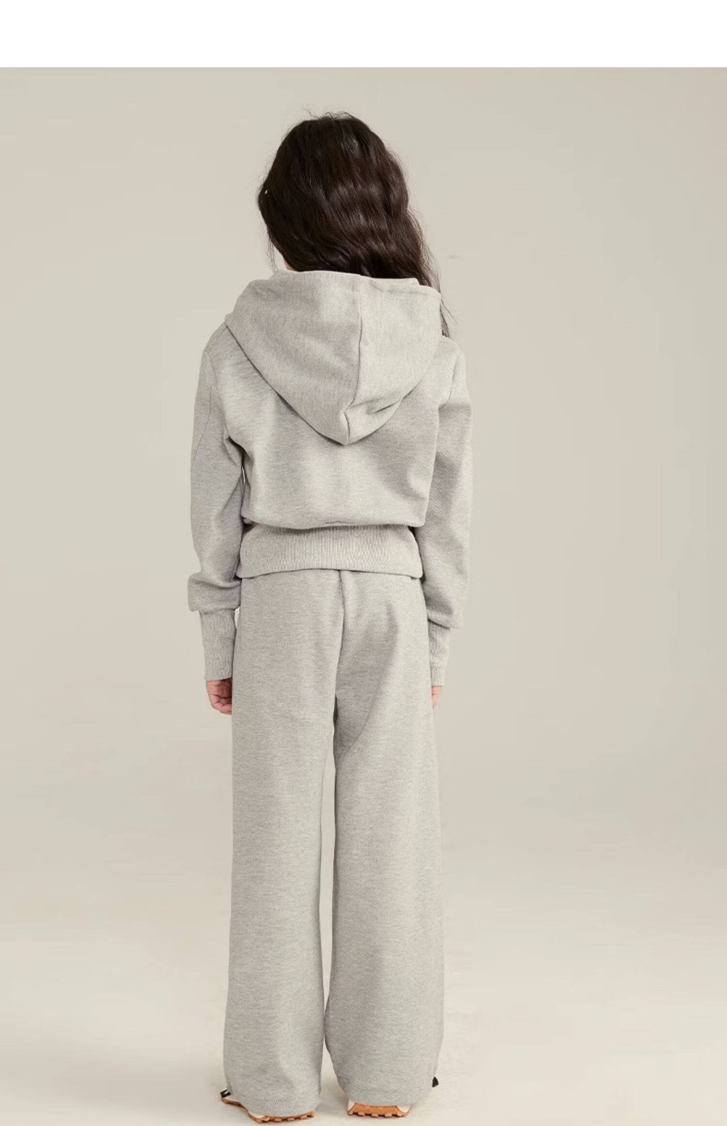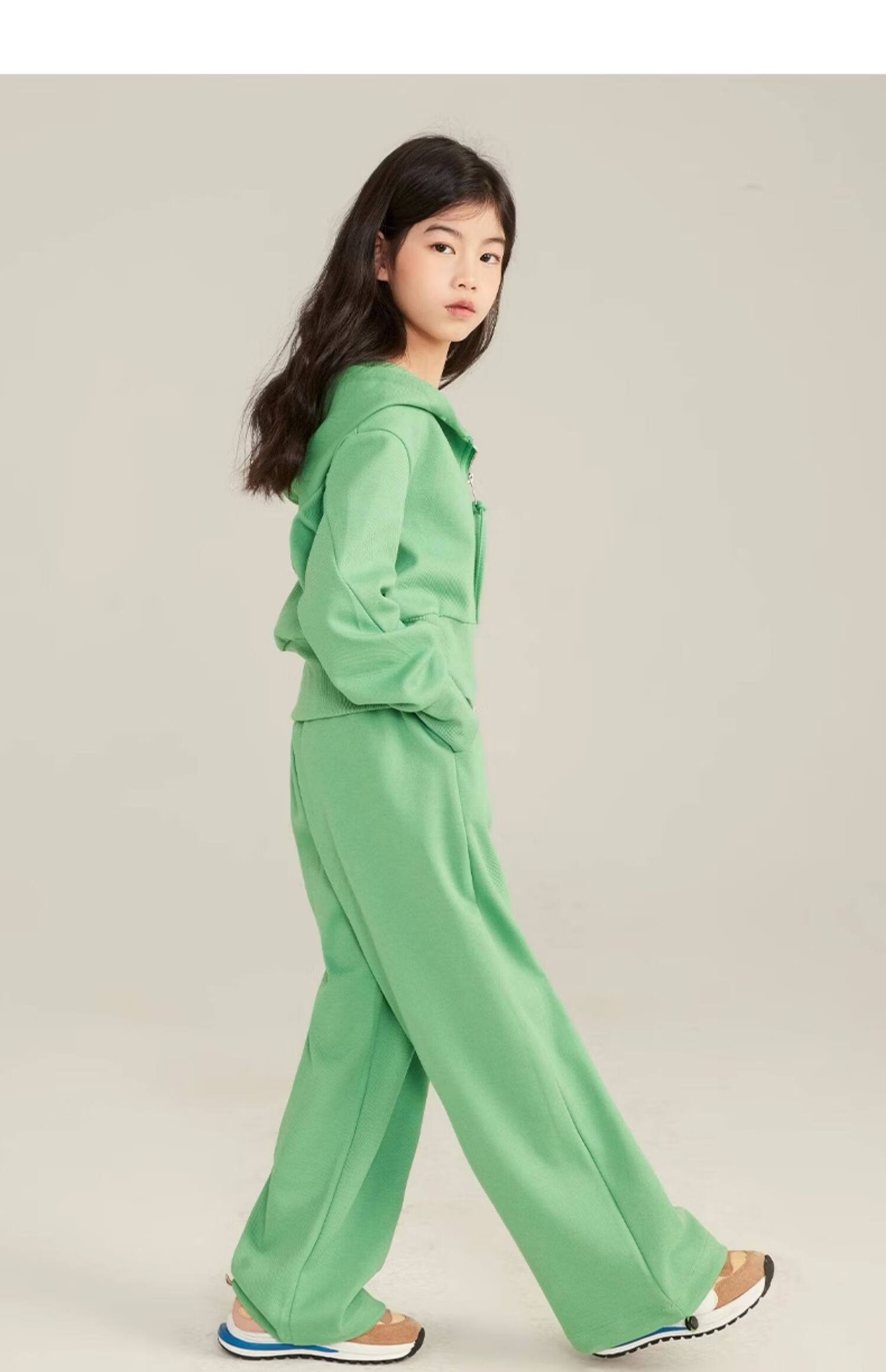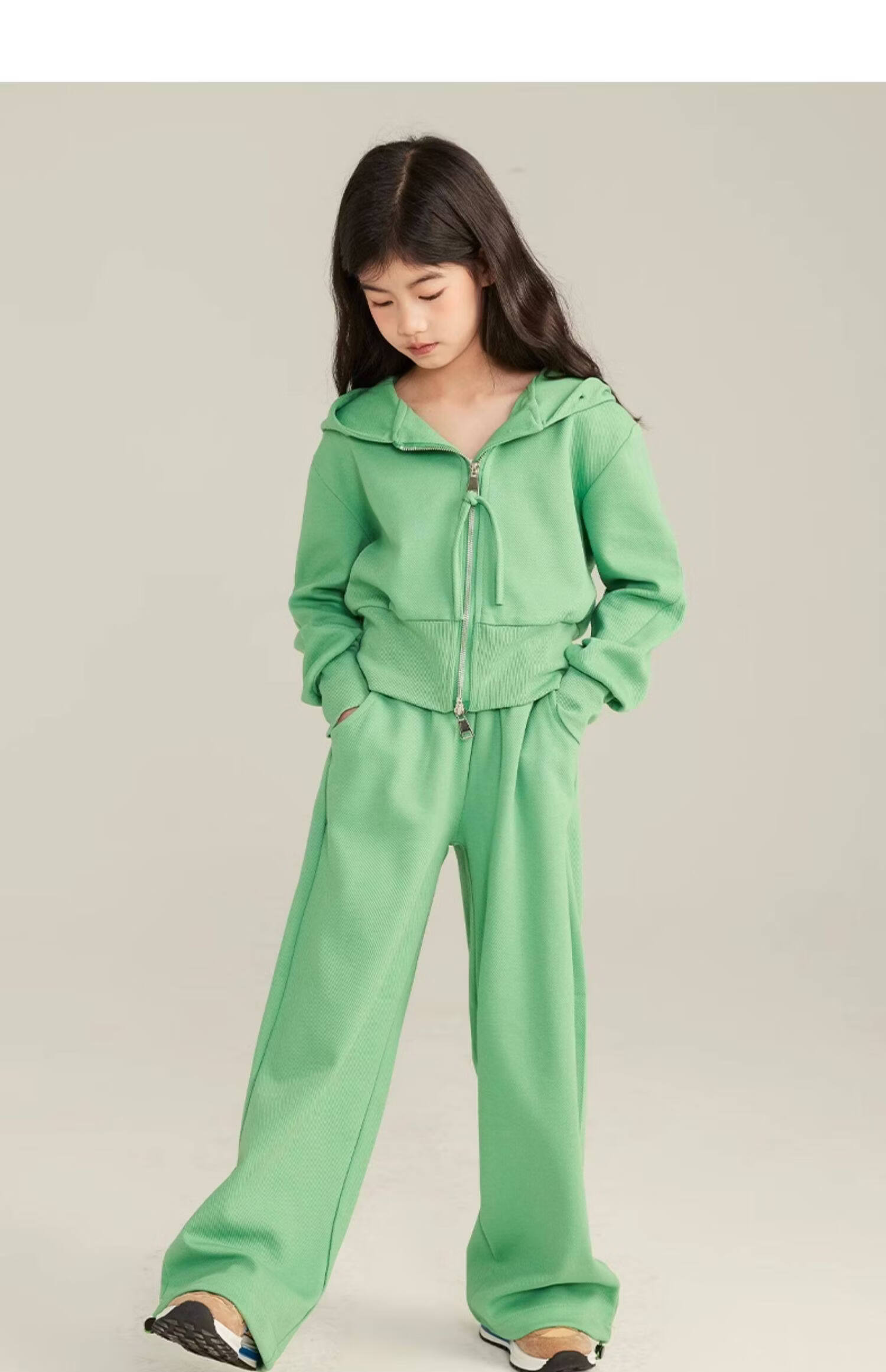 淘町女童套装春秋装新款中大童休闲纯色美式拉链儿童运动连帽两件套 米白色 斜拉链设计 170