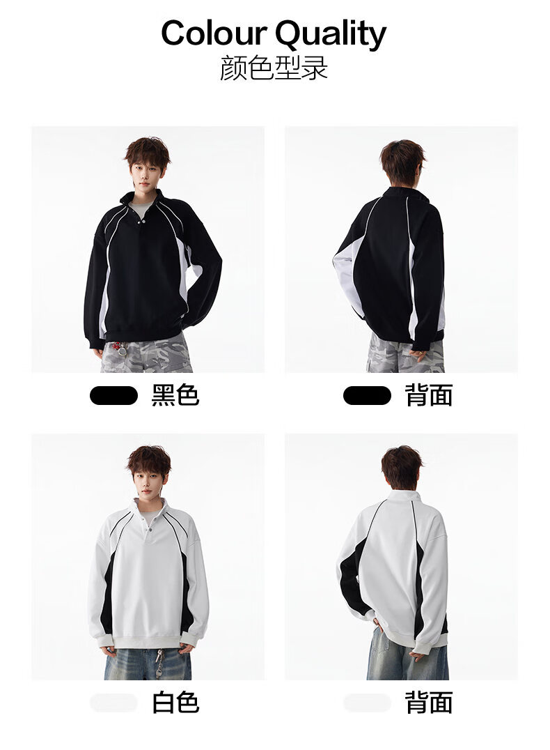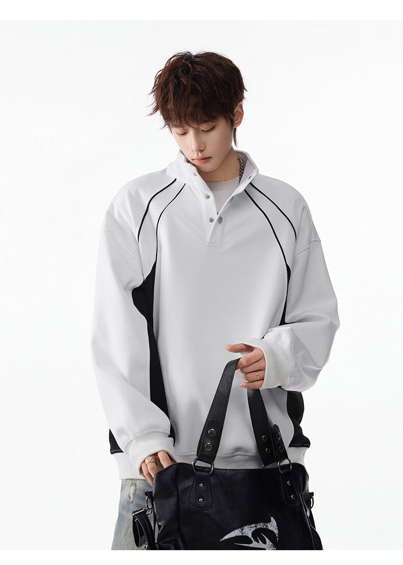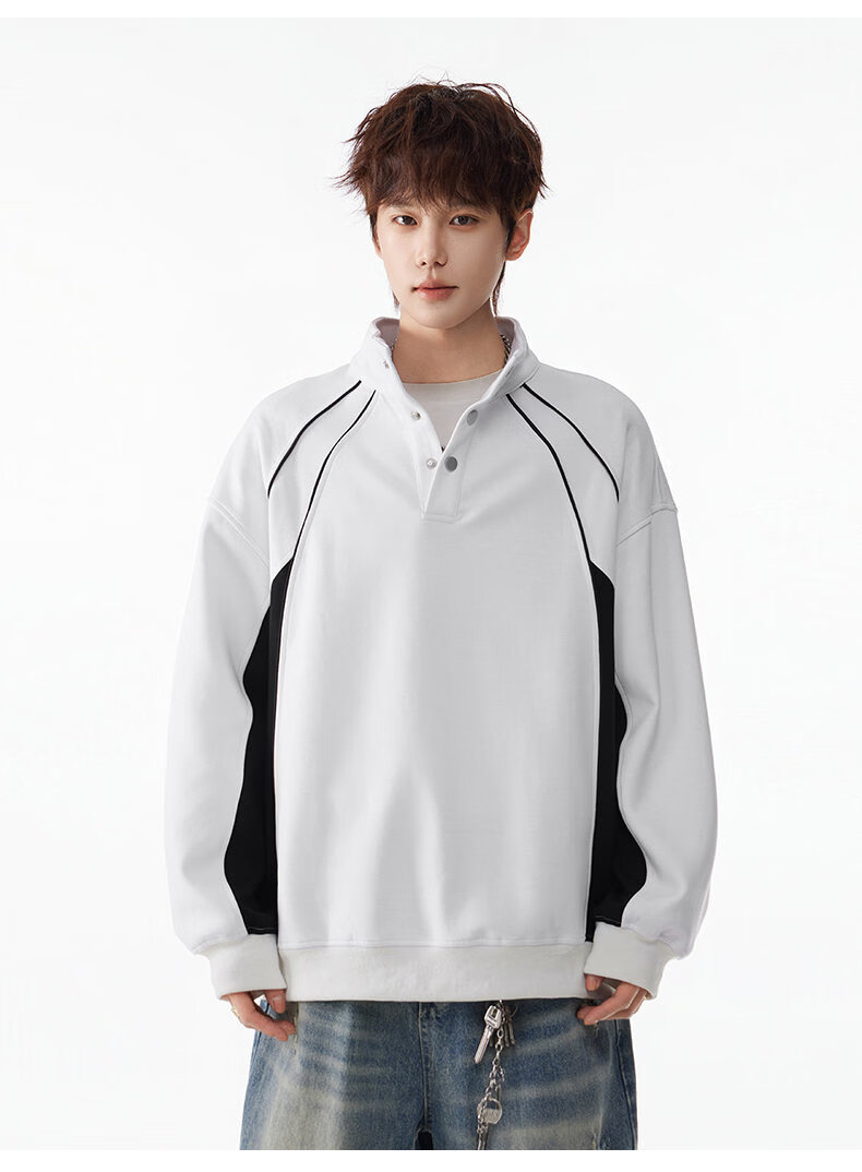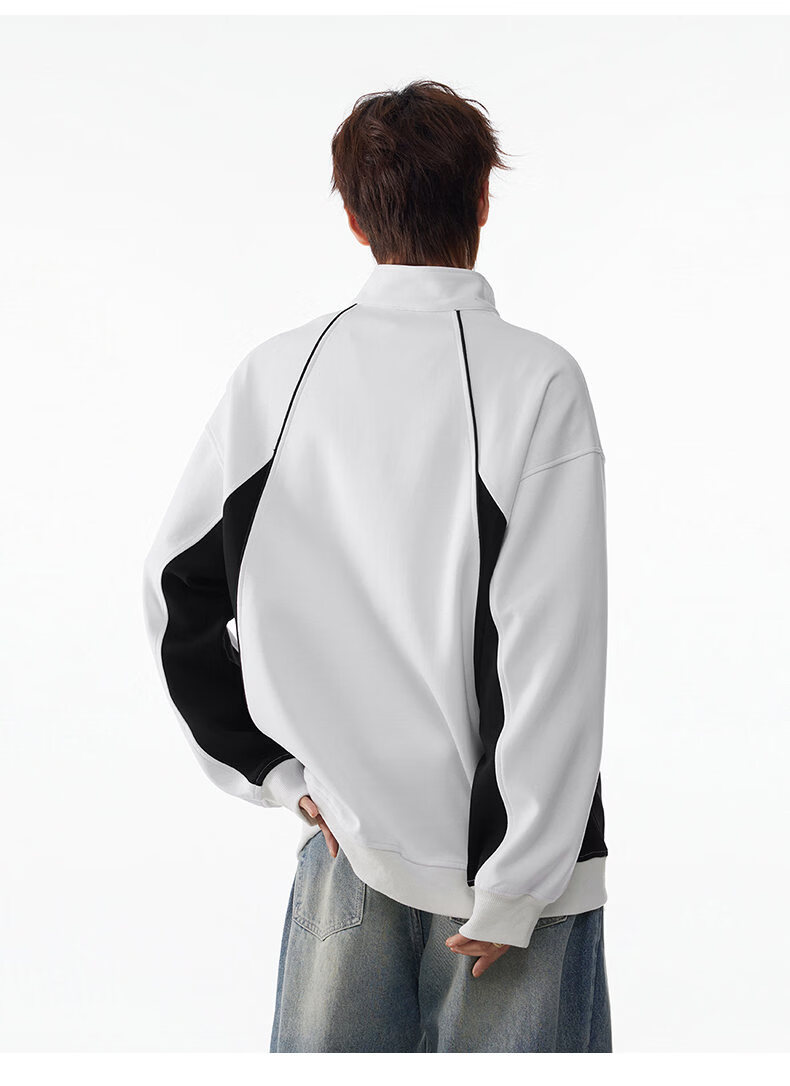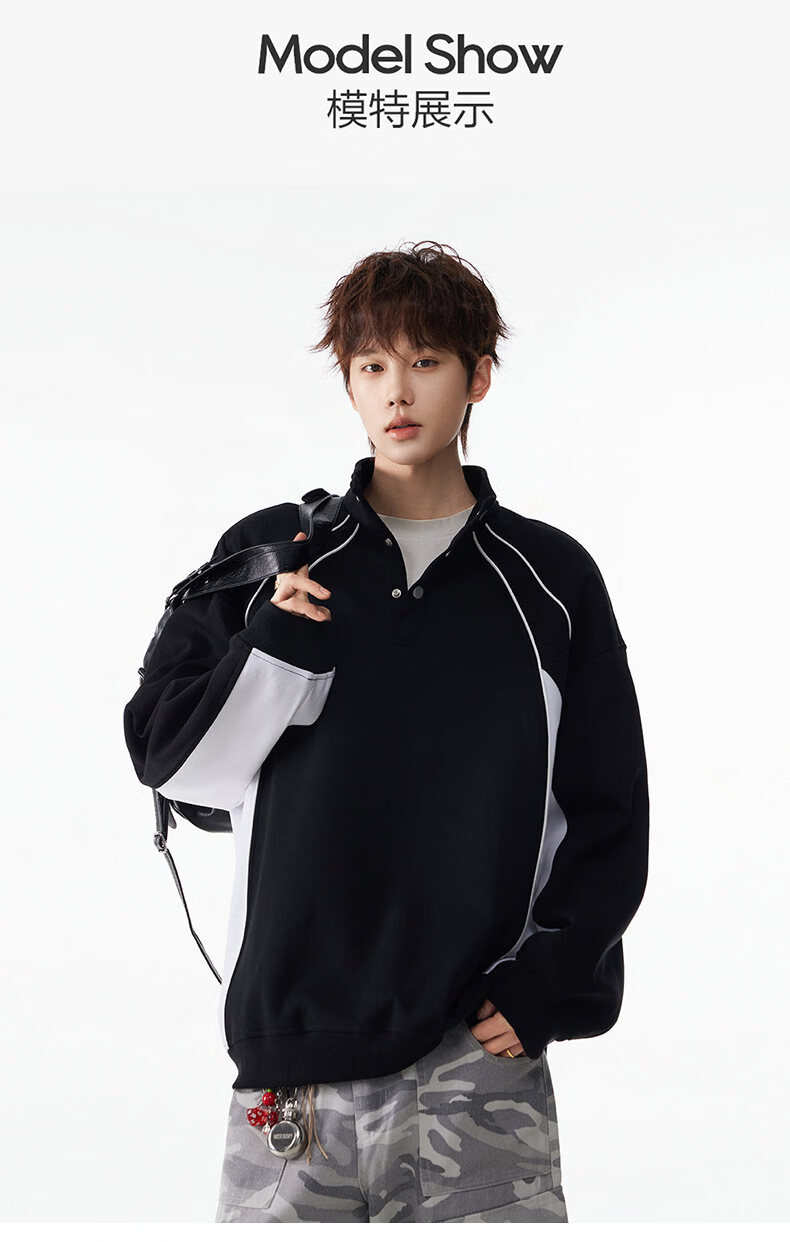 NEW OR MODE美式学院风撞色立领卫衣男春秋潮牌拼接设计感宽松情侣外套上衣服 白色【高品质】 M 【建议90-110斤】
