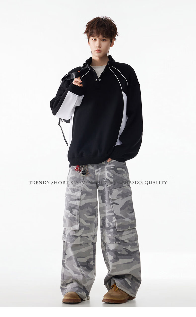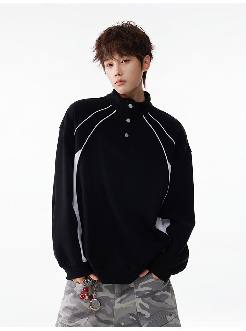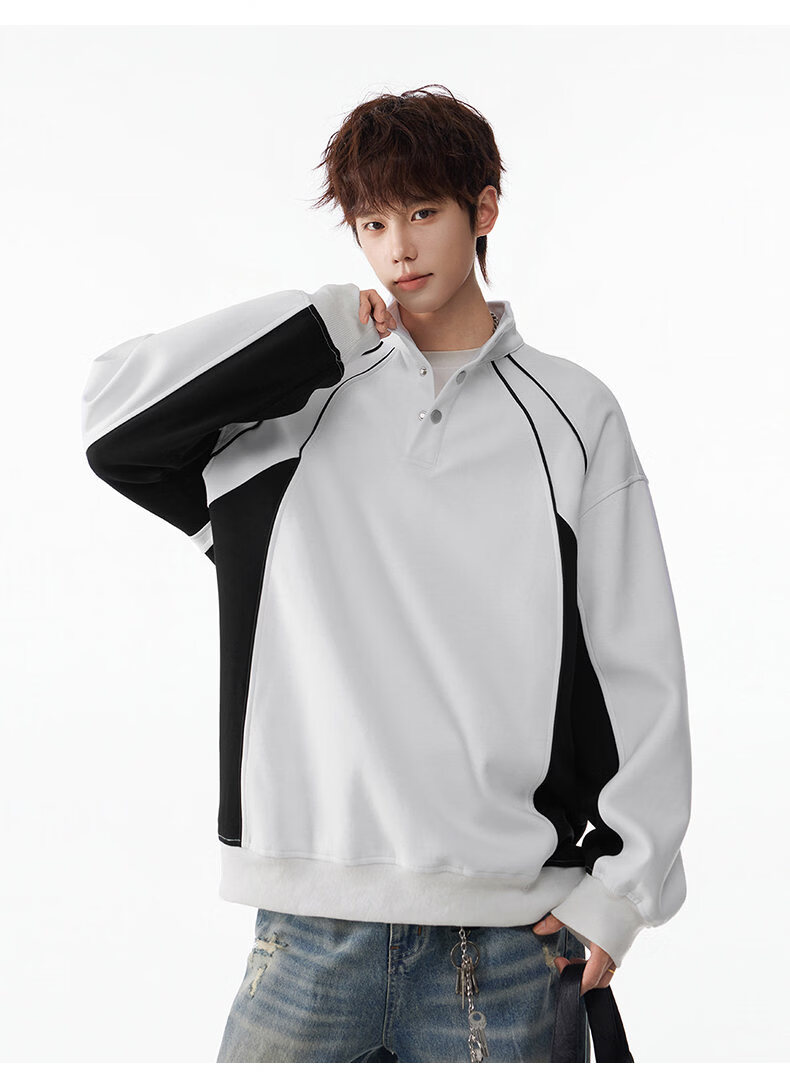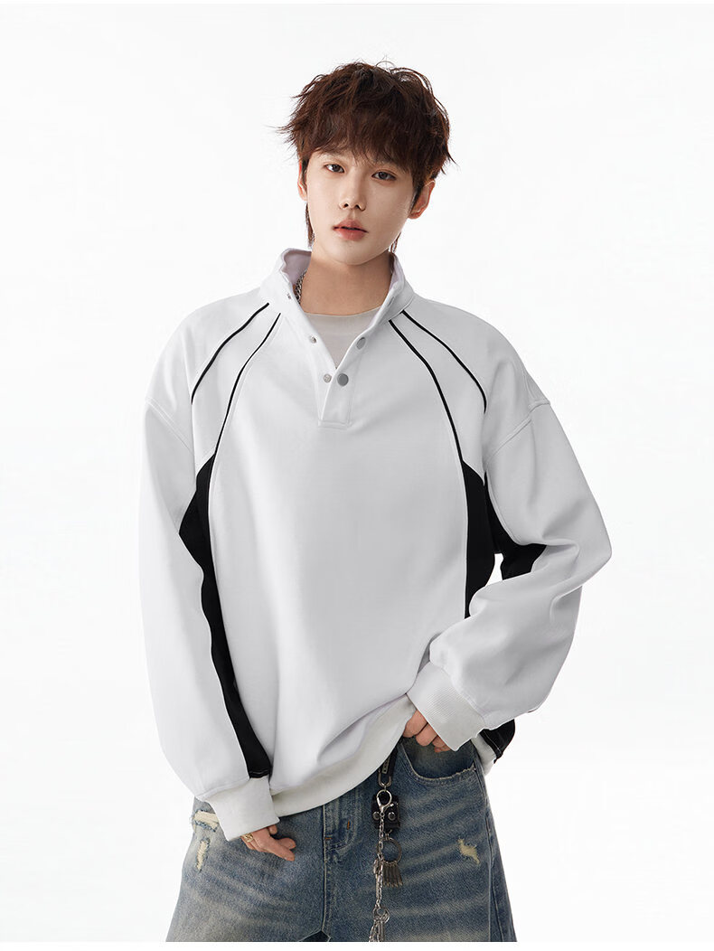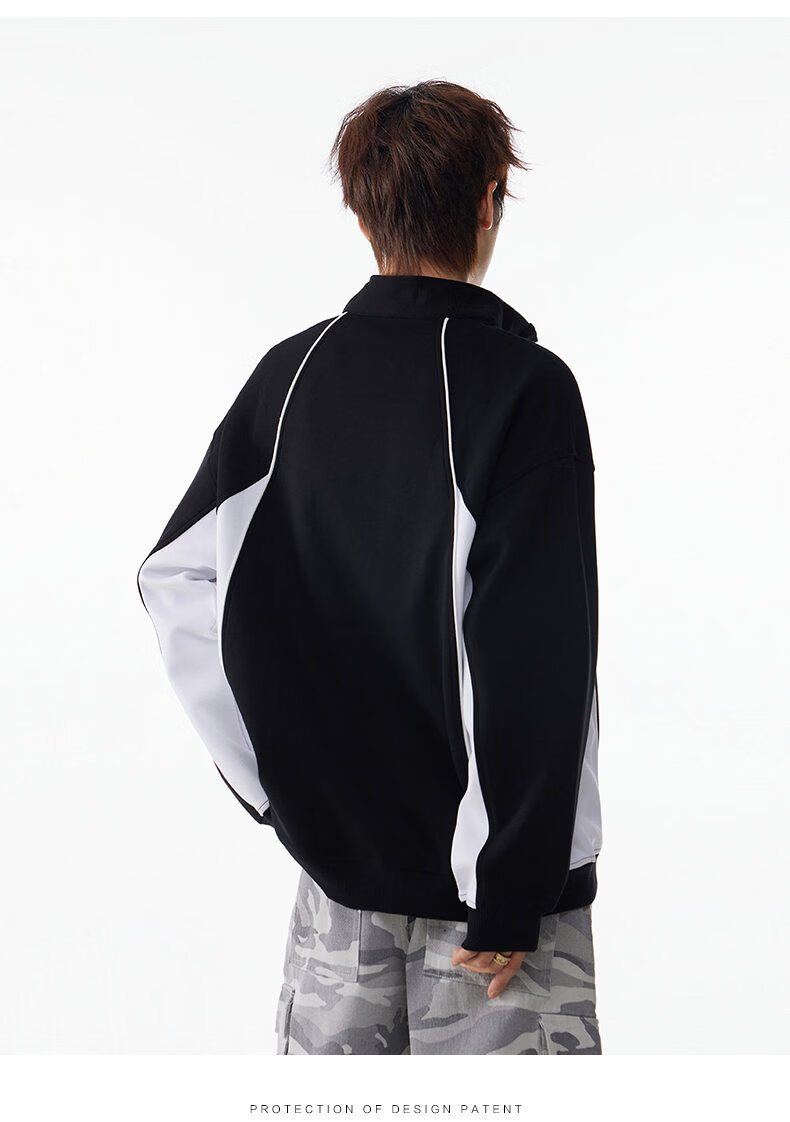 NEW OR MODE美式学院风撞色立领卫衣男春秋潮牌拼接设计感宽松情侣外套上衣服 白色【高品质】 M 【建议90-110斤】