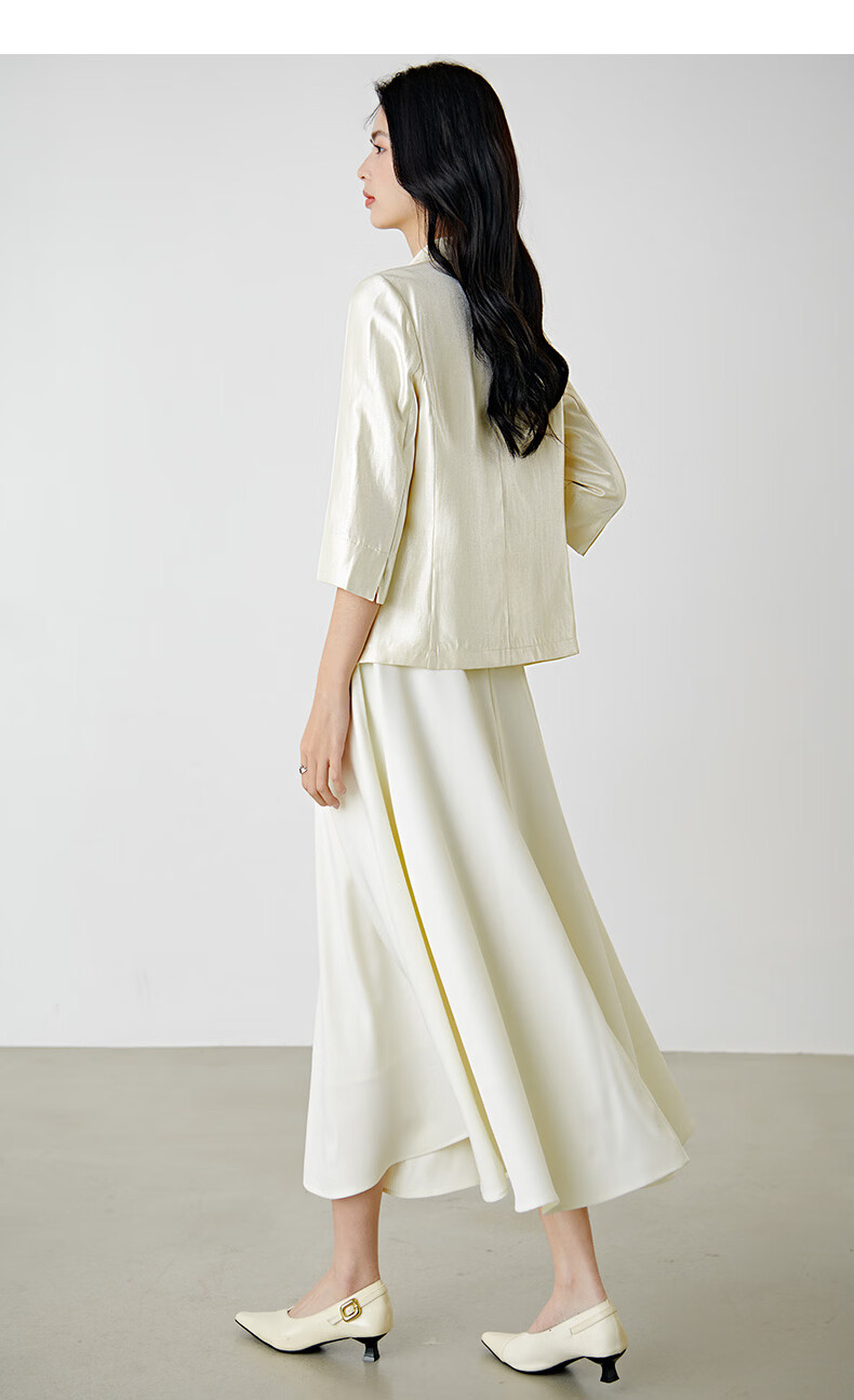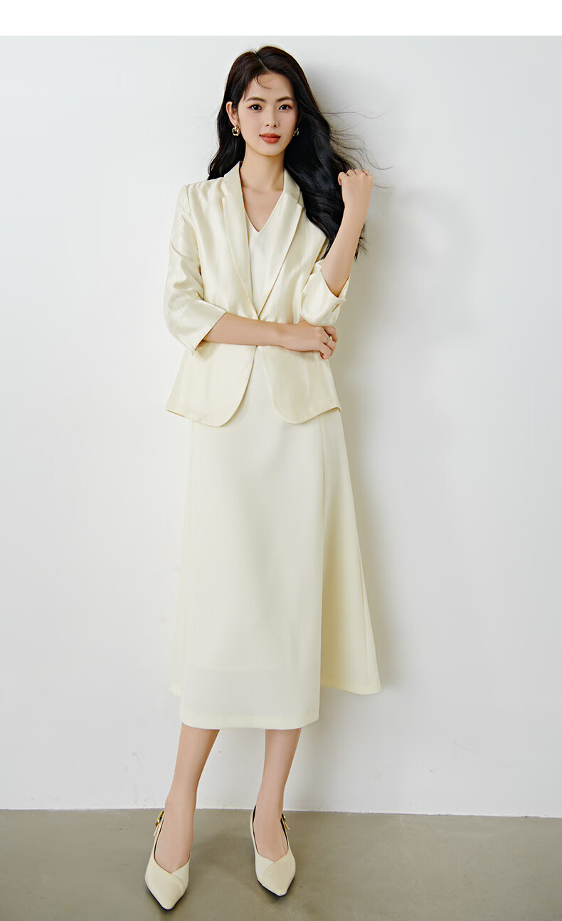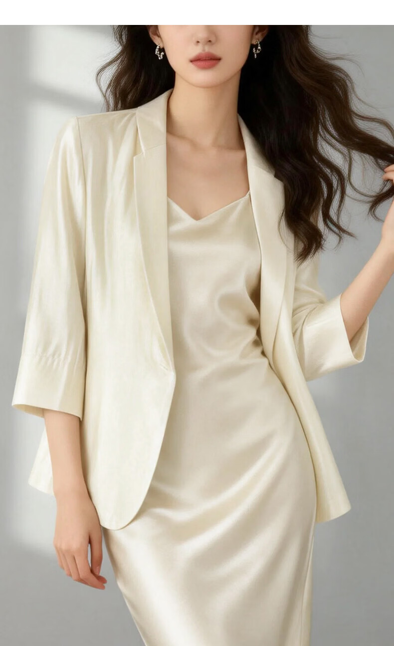 晚白2026春款气质琉璃缎感一粒扣修身显瘦重要场合穿搭减龄西装外套女 杏色 L
