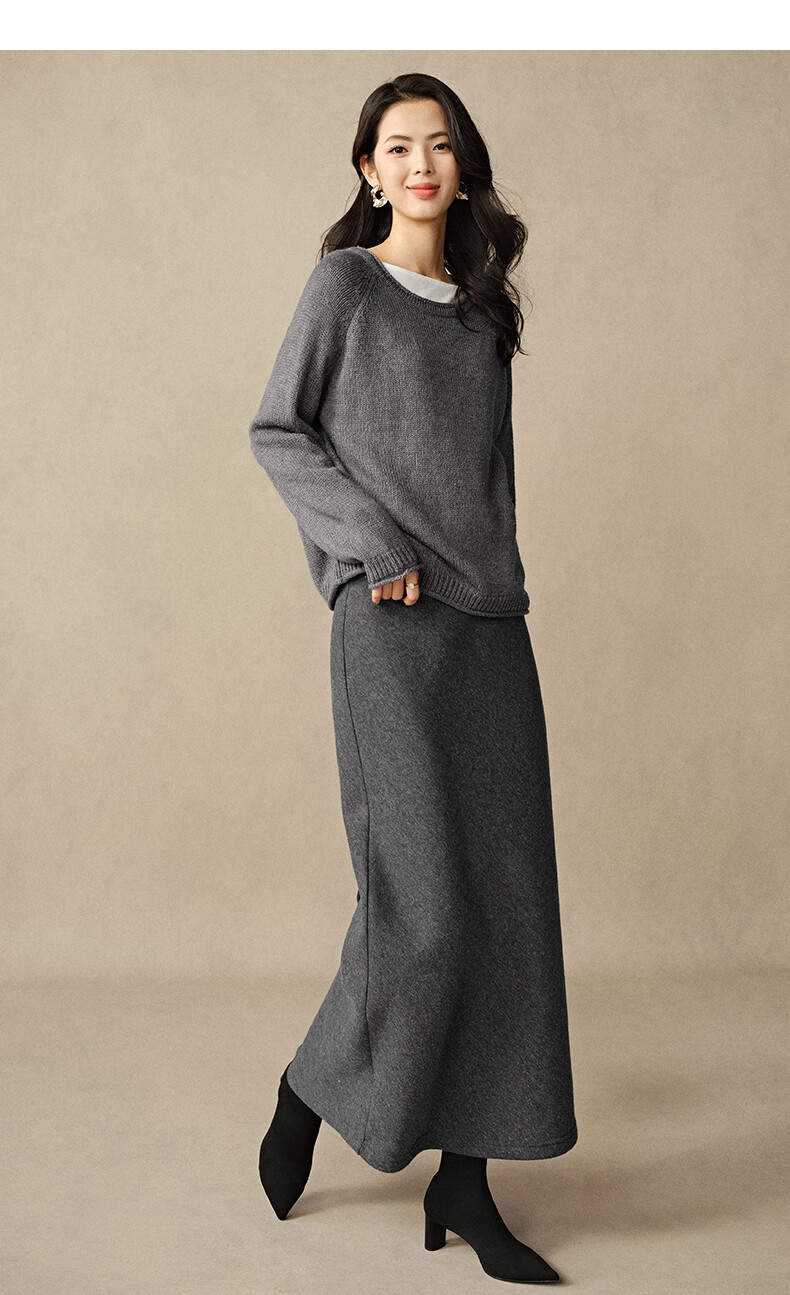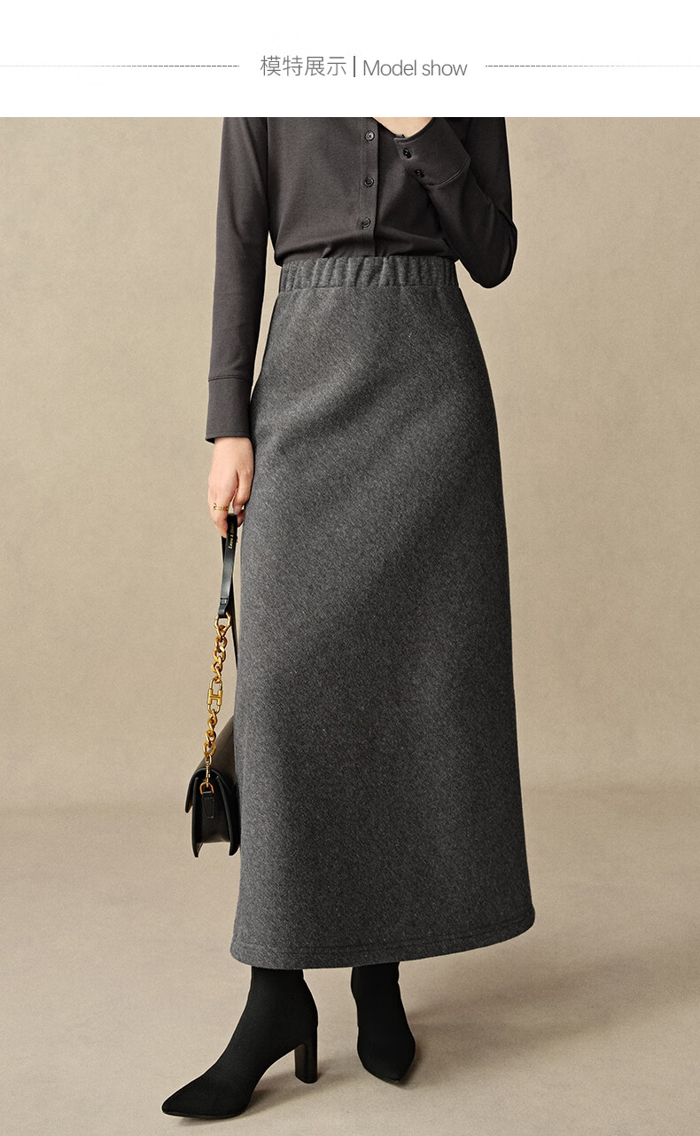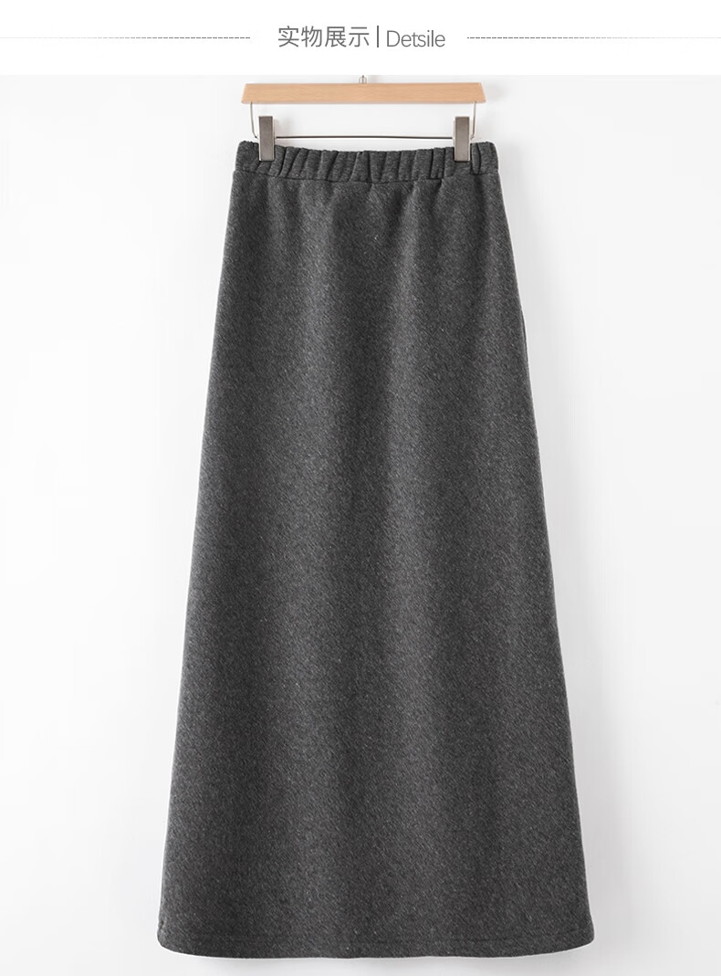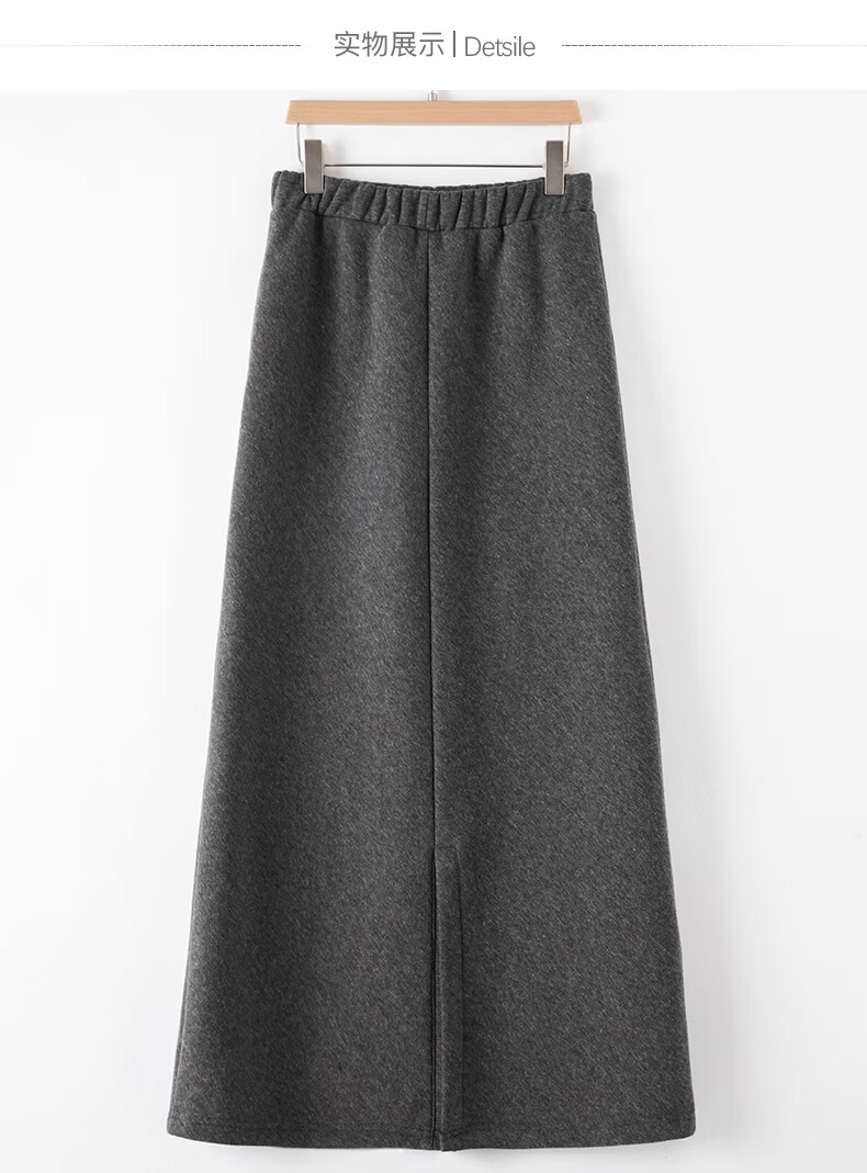 晚白【断码清仓】2026年春款时尚休闲半裙纯色加绒针织后开叉半裙 灰色 S