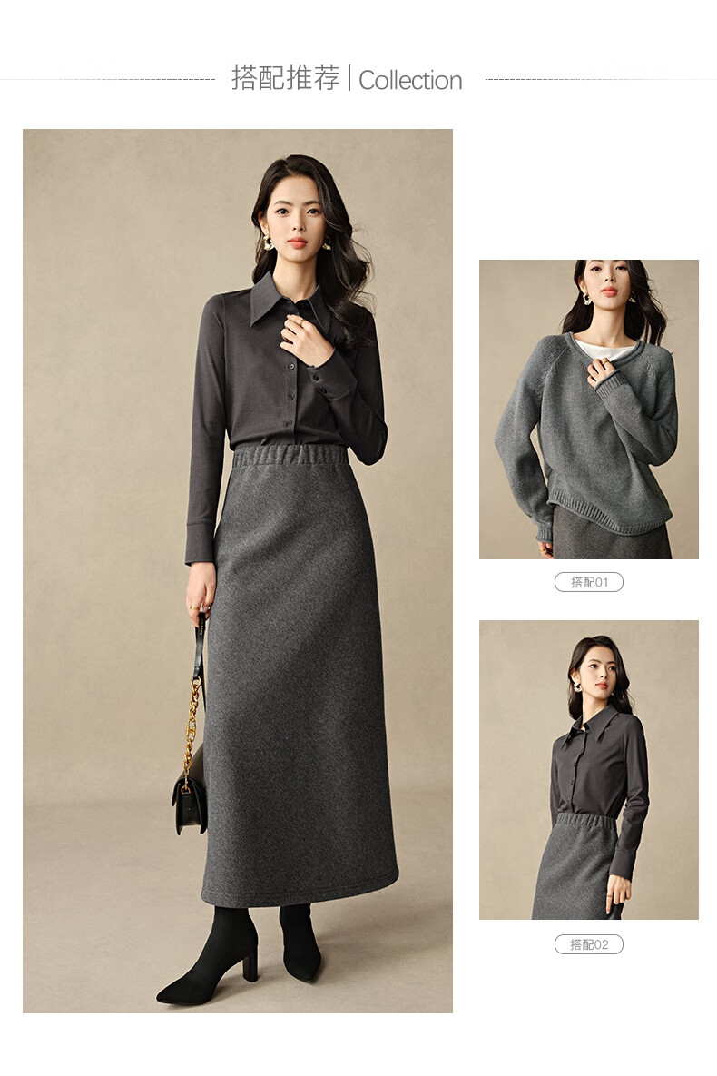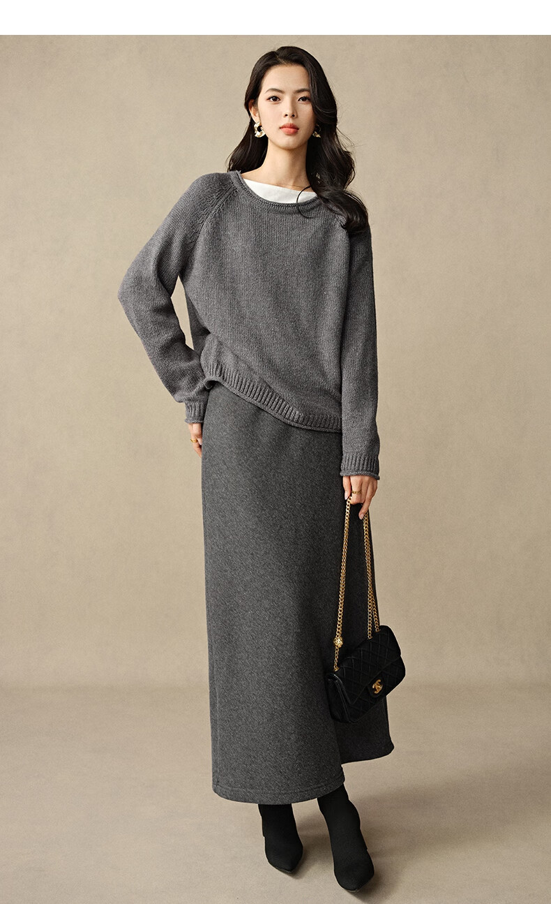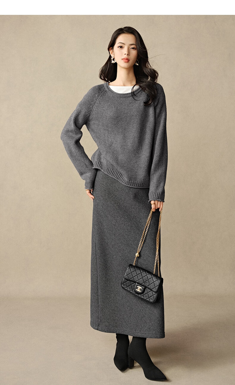 晚白【断码清仓】2026年春款时尚休闲半裙纯色加绒针织后开叉半裙 灰色 S