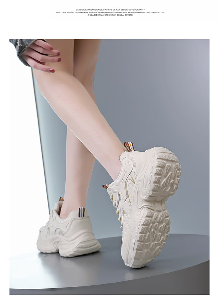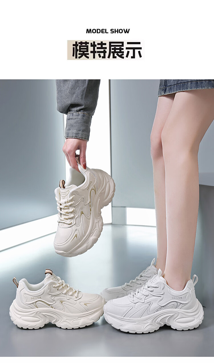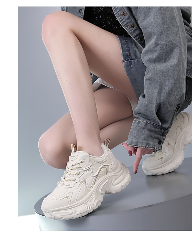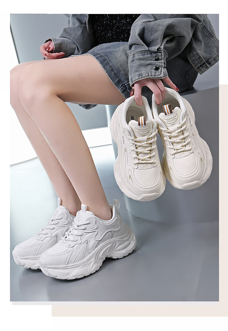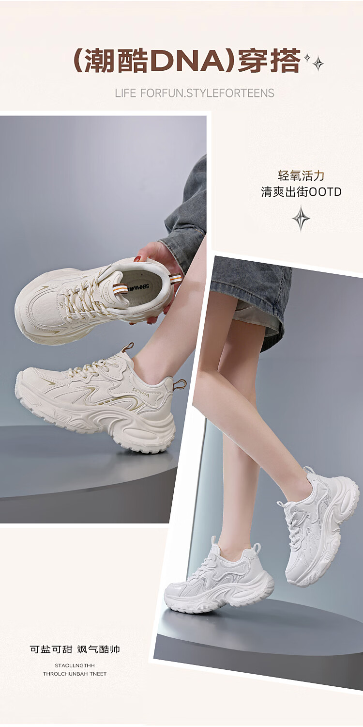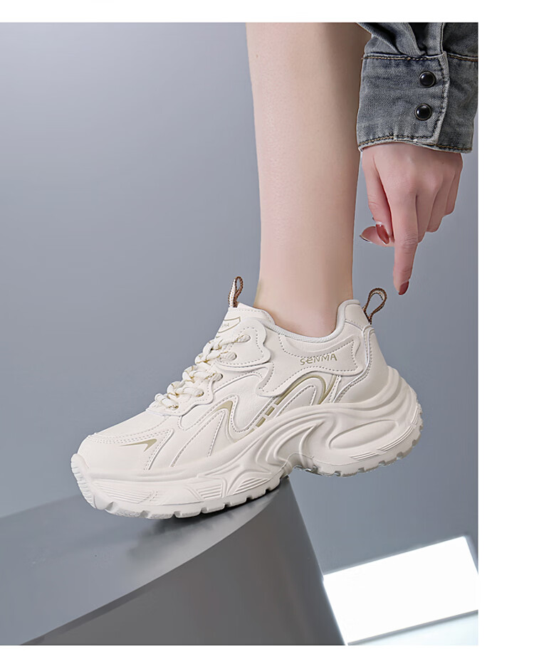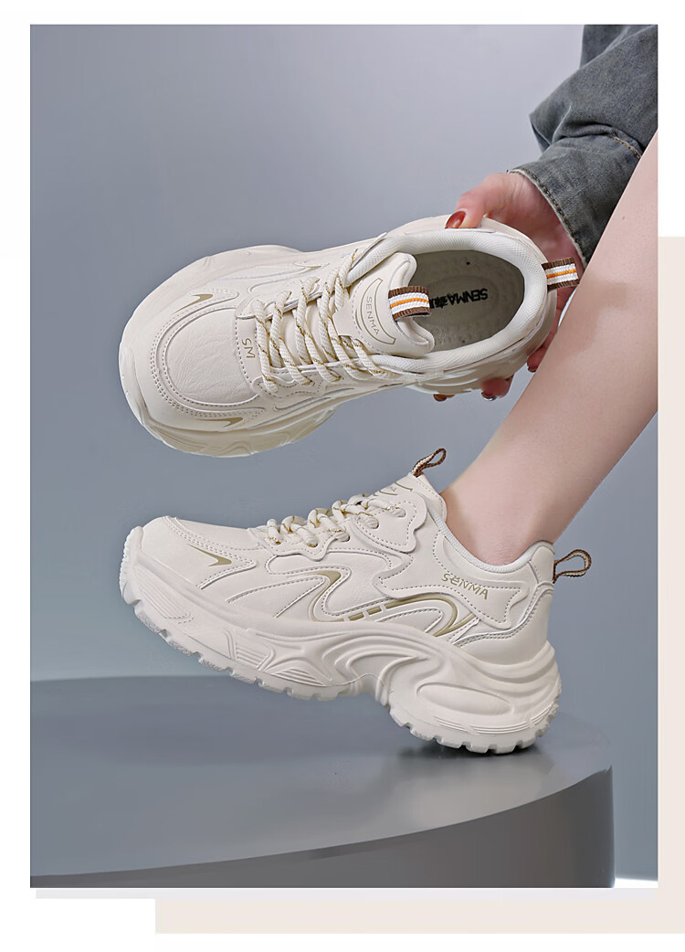 森馬女鞋2026新款春季透气厚底增高老爹鞋子女款显瘦小白鞋休闲运动鞋 米色【升级款】 41 标准码数/现货秒发