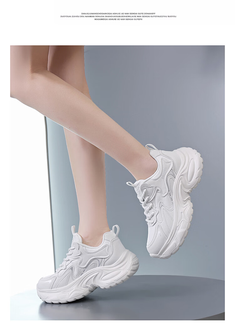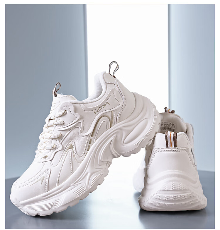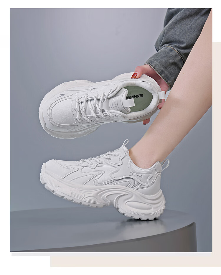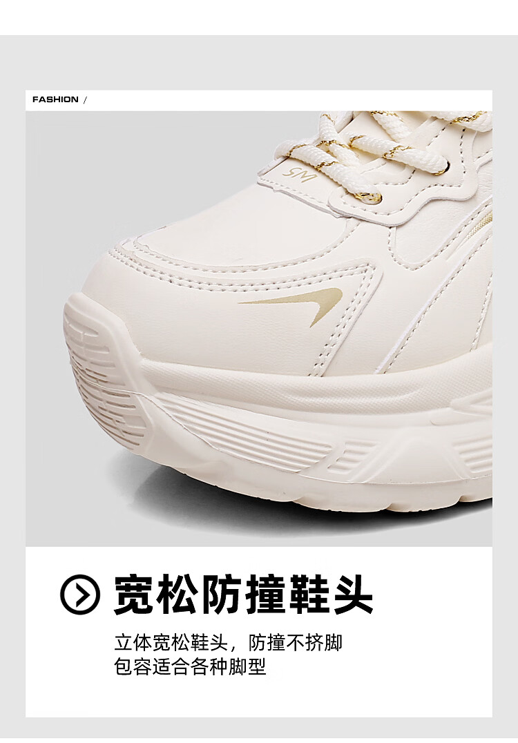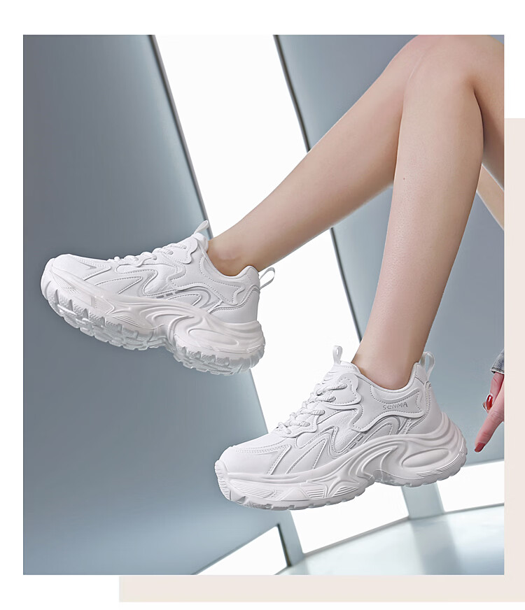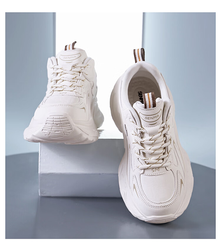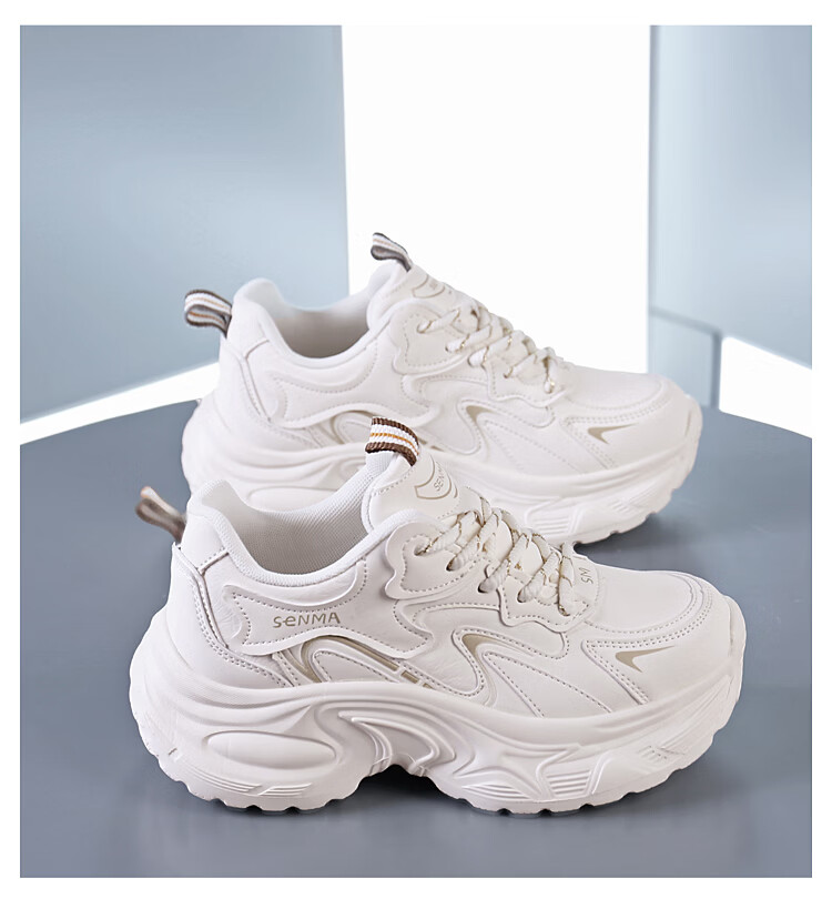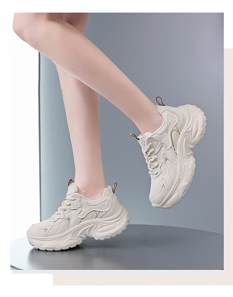 森馬女鞋2026新款春季透气厚底增高老爹鞋子女款显瘦小白鞋休闲运动鞋 米色【升级款】 41 标准码数/现货秒发