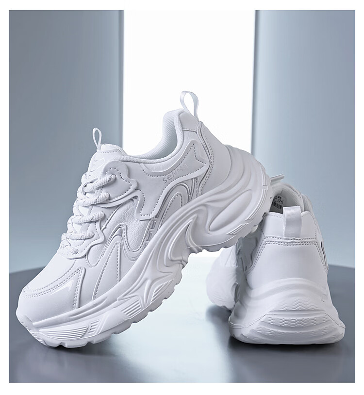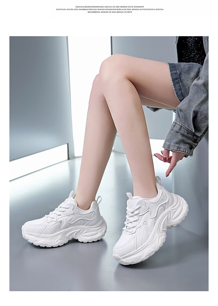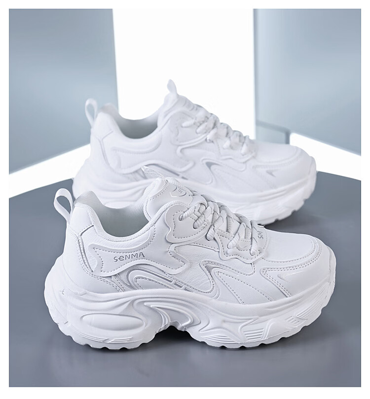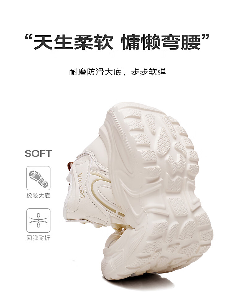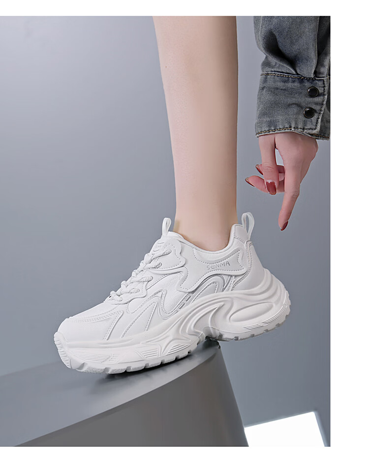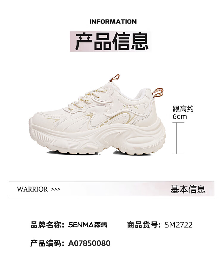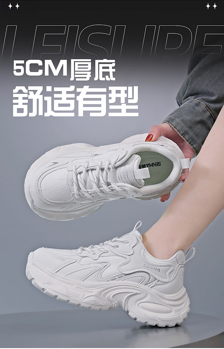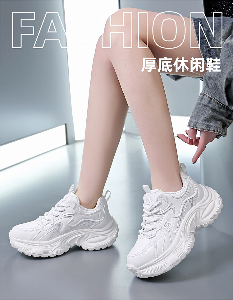 森馬女鞋2026新款春季透气厚底增高老爹鞋子女款显瘦小白鞋休闲运动鞋 米色【升级款】 41 标准码数/现货秒发