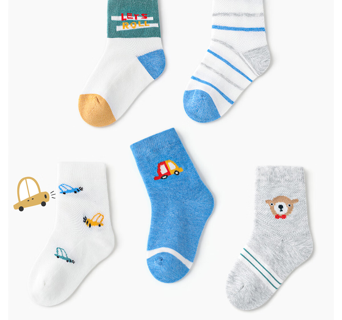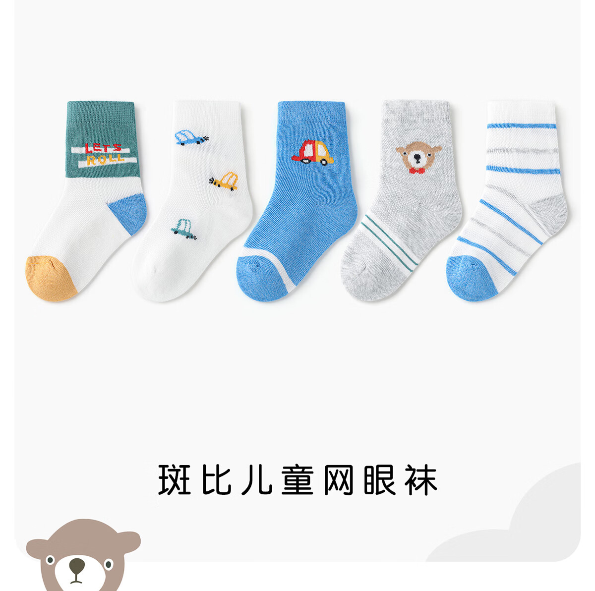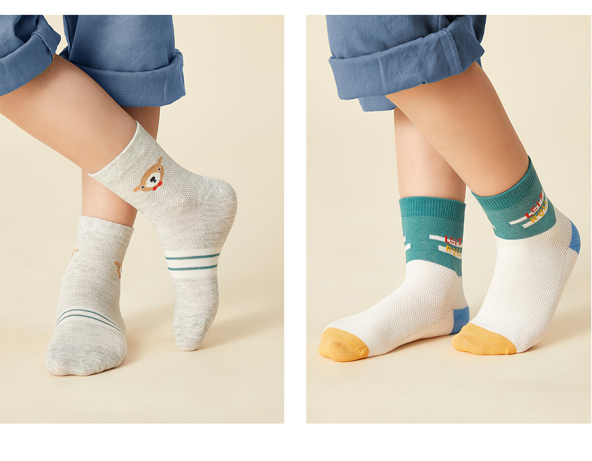 斑比儿童袜子男孩夏季网眼透气薄款中小童春秋无骨中筒棉袜 BB2201 春夏款儿童网眼袜 5双 0-1岁 建议脚码16码以内【12-14】
