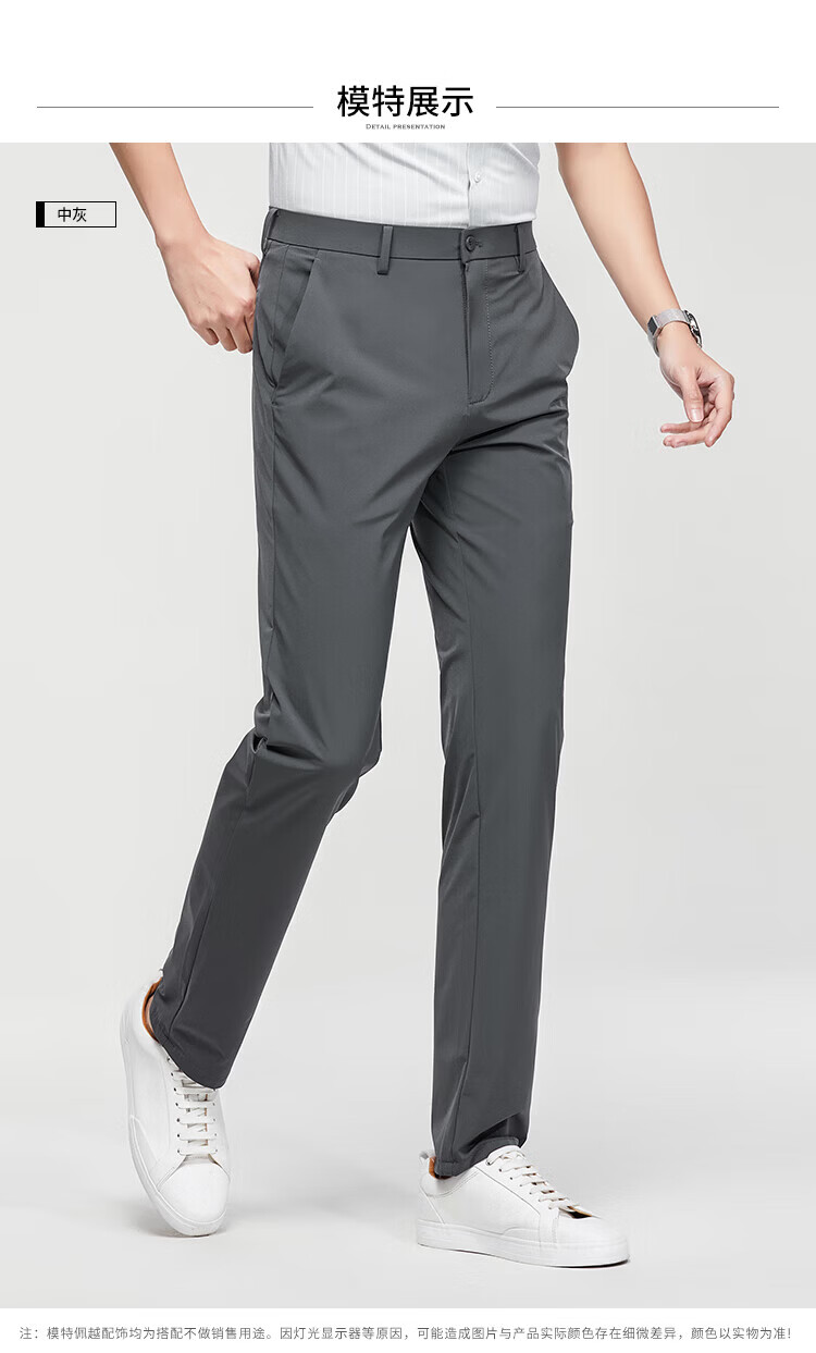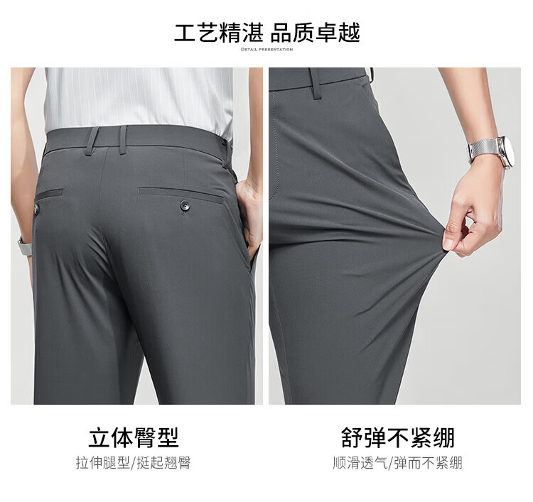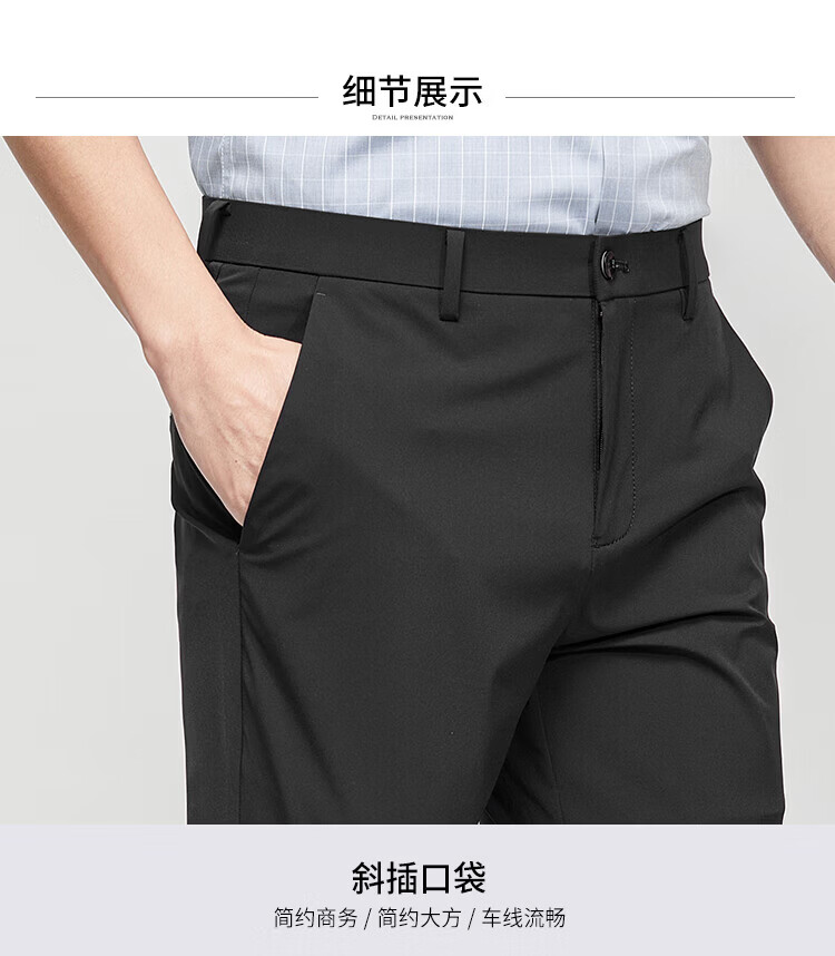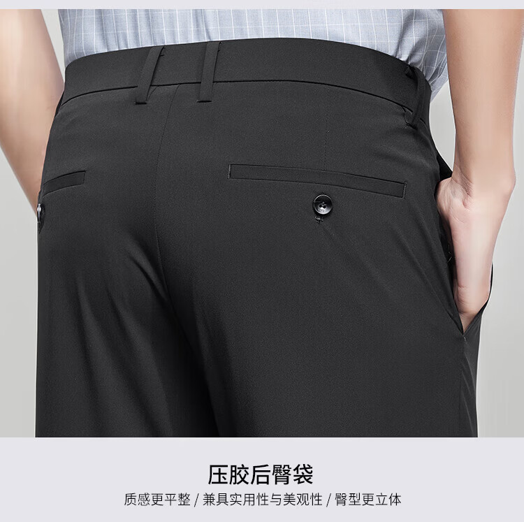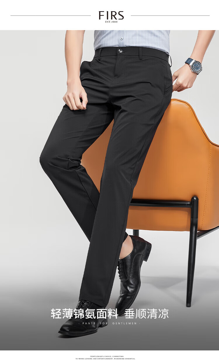 杉杉(FIRS)【锦氨弹力】休闲裤男吸湿透气轻薄合体直筒裤垂顺抗皱修身长裤男 黑色 L 175/84A(33)