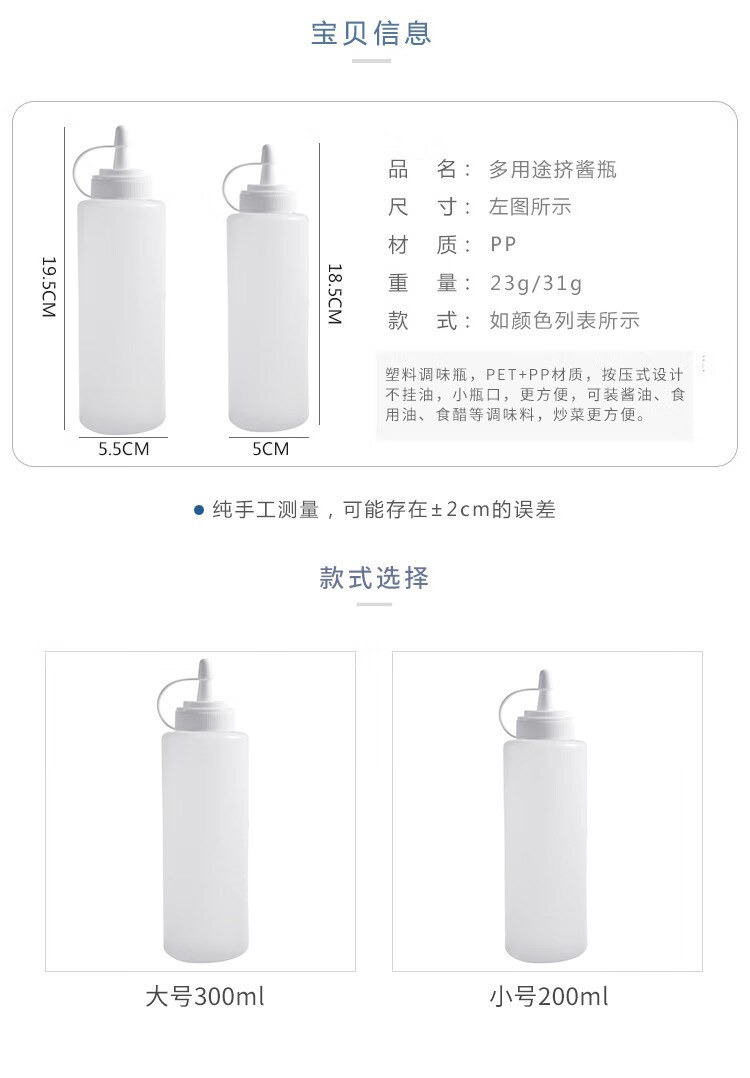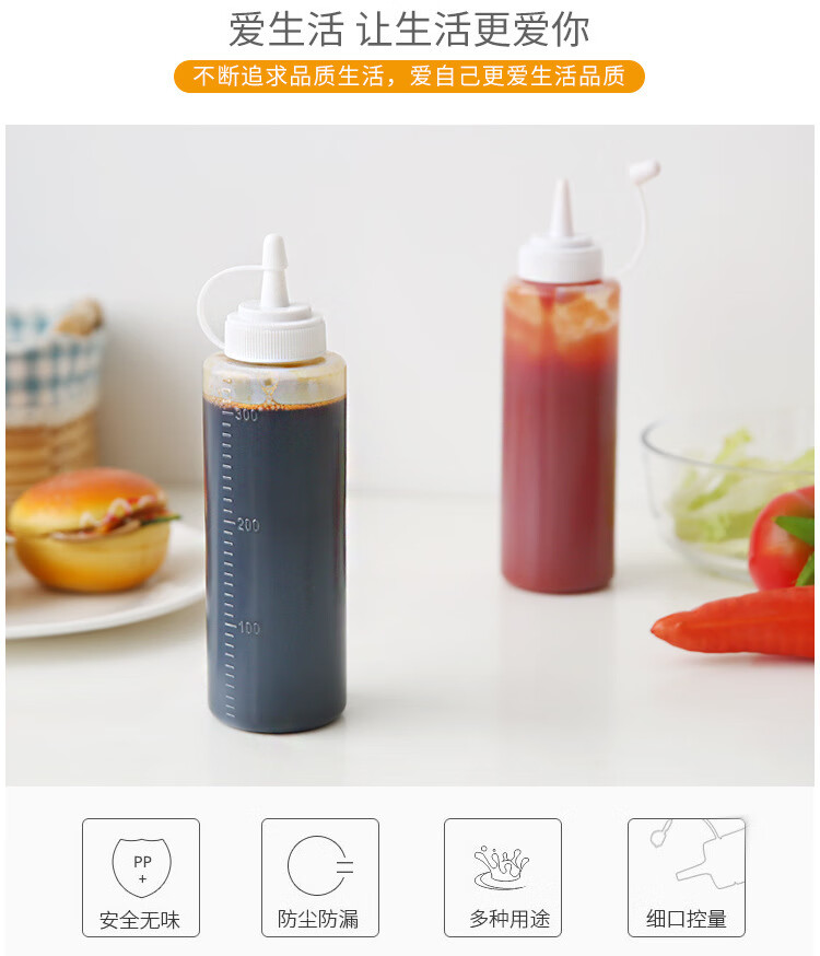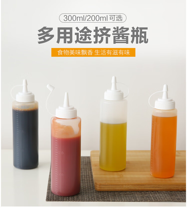 【精选】塑料挤酱瓶商用挤压瓶番茄酱果酱沙拉酱料瓶厨房油壶酱油 小号 单件装 200ml