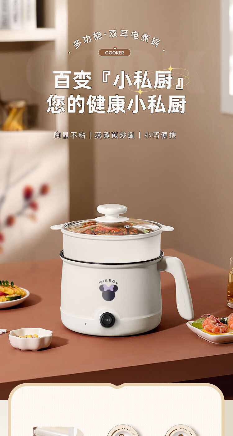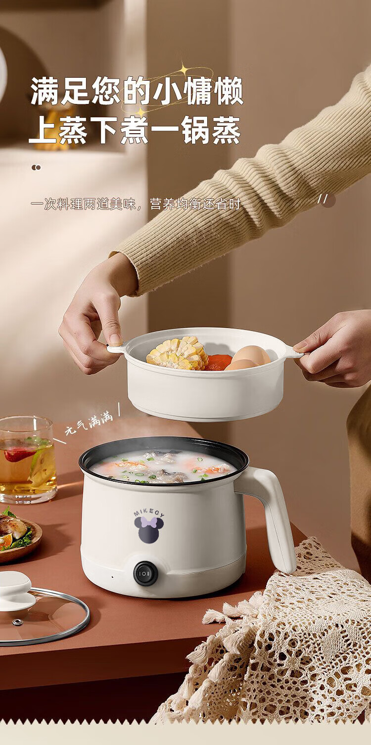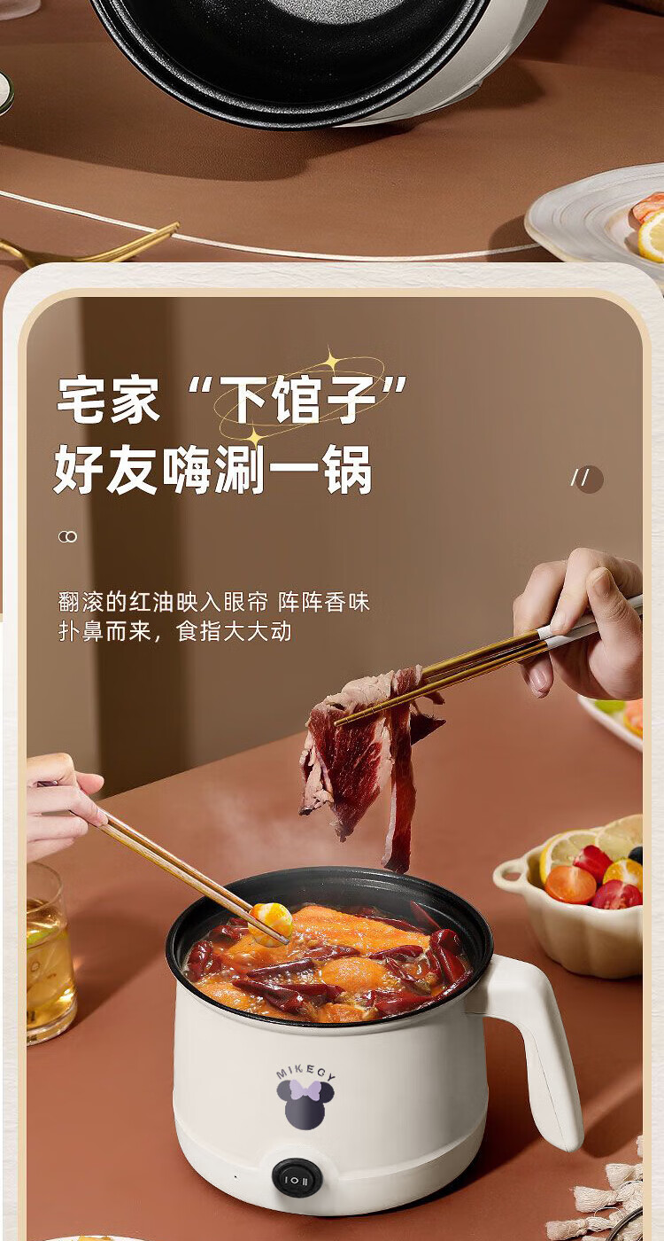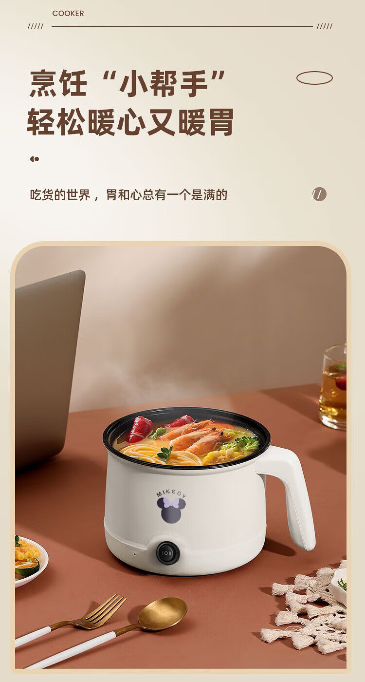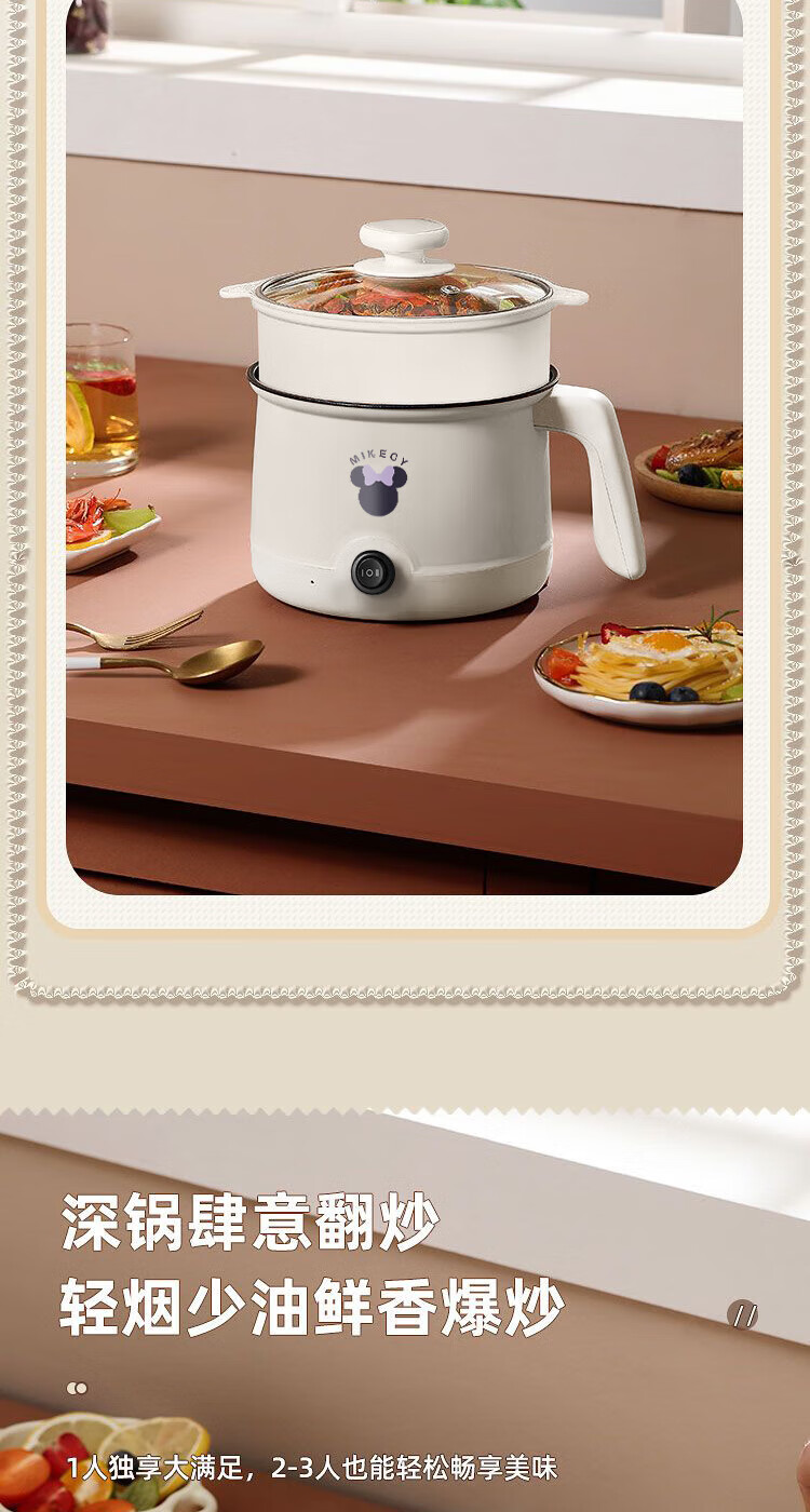 电煮锅小电锅电锅一体多功能锅宿舍用1-2人煮面锅 不锈钢内胆单锅1.4L【0.65m电源线】