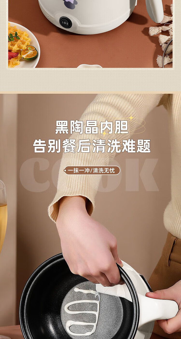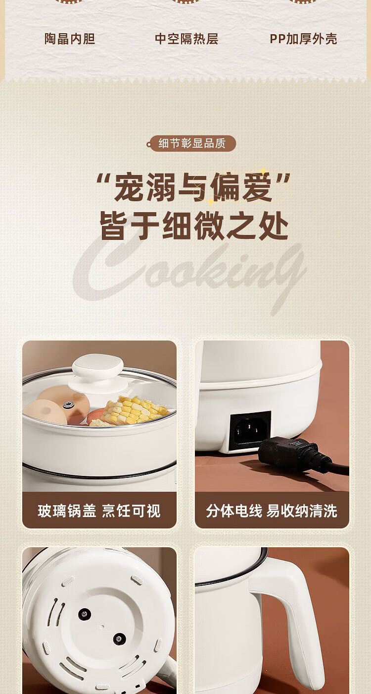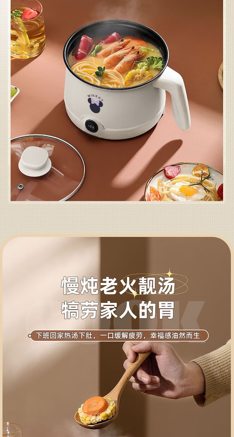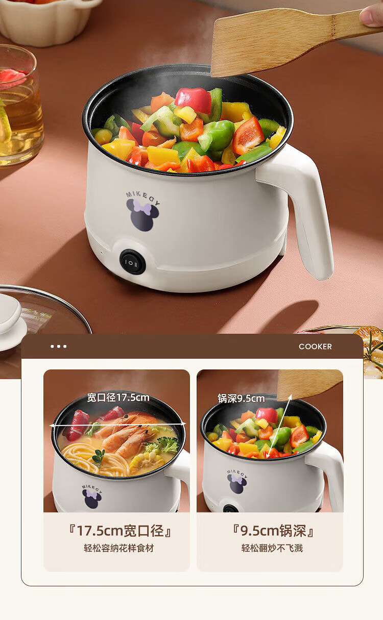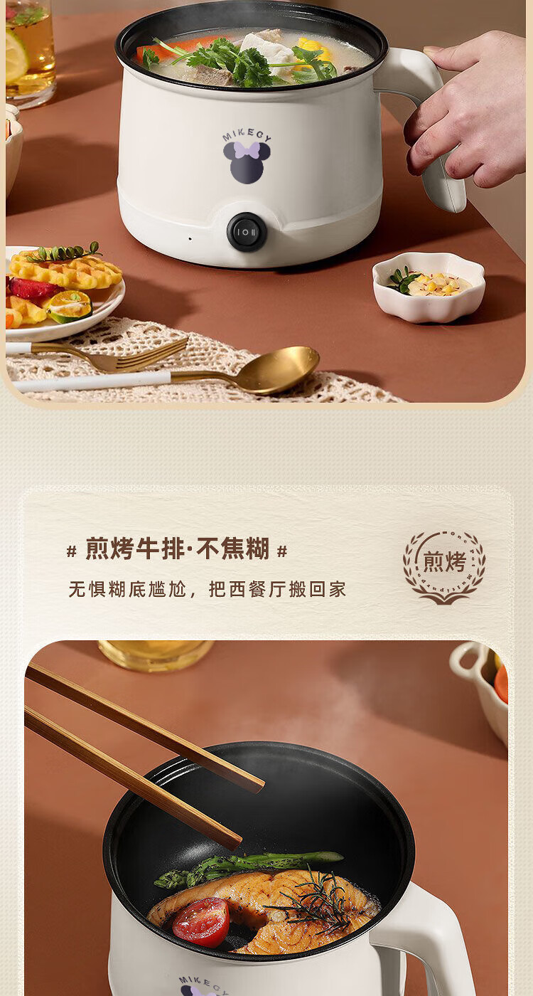 电煮锅小电锅电锅一体多功能锅宿舍用1-2人煮面锅 不锈钢内胆单锅1.4L【0.65m电源线】