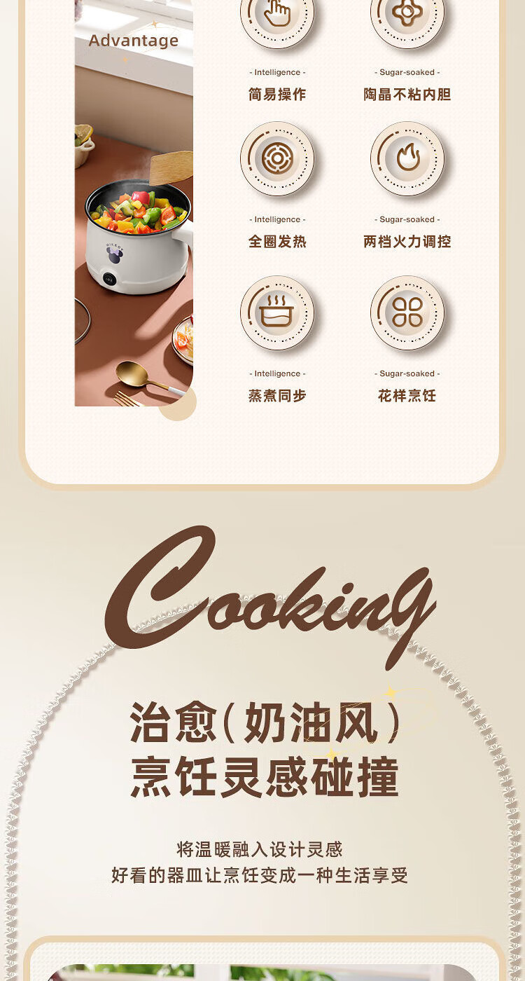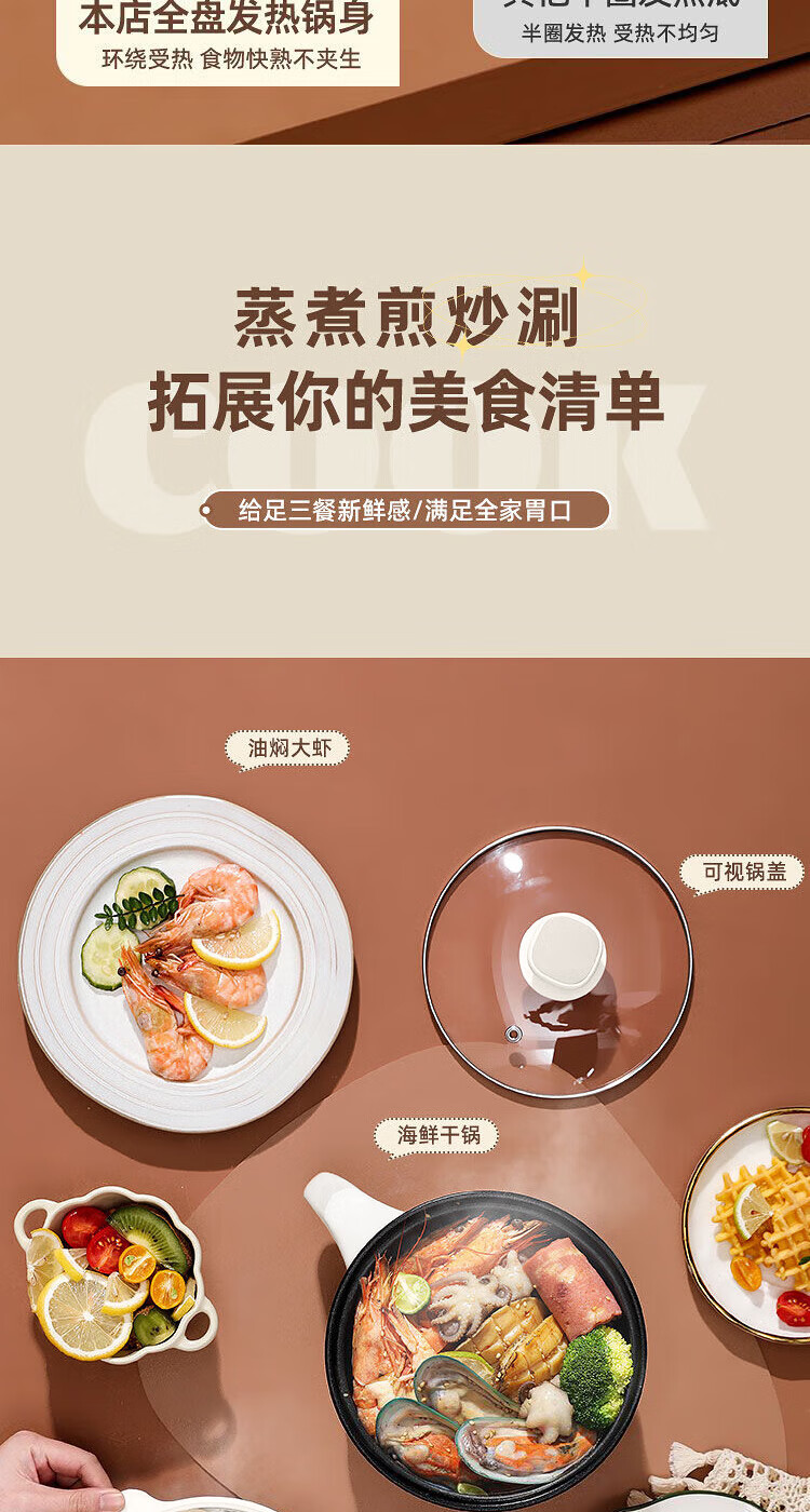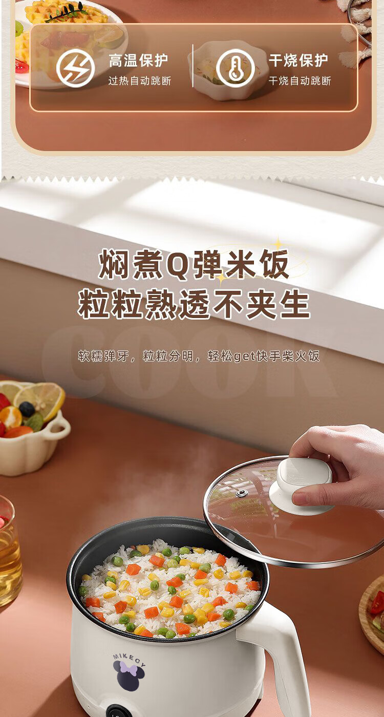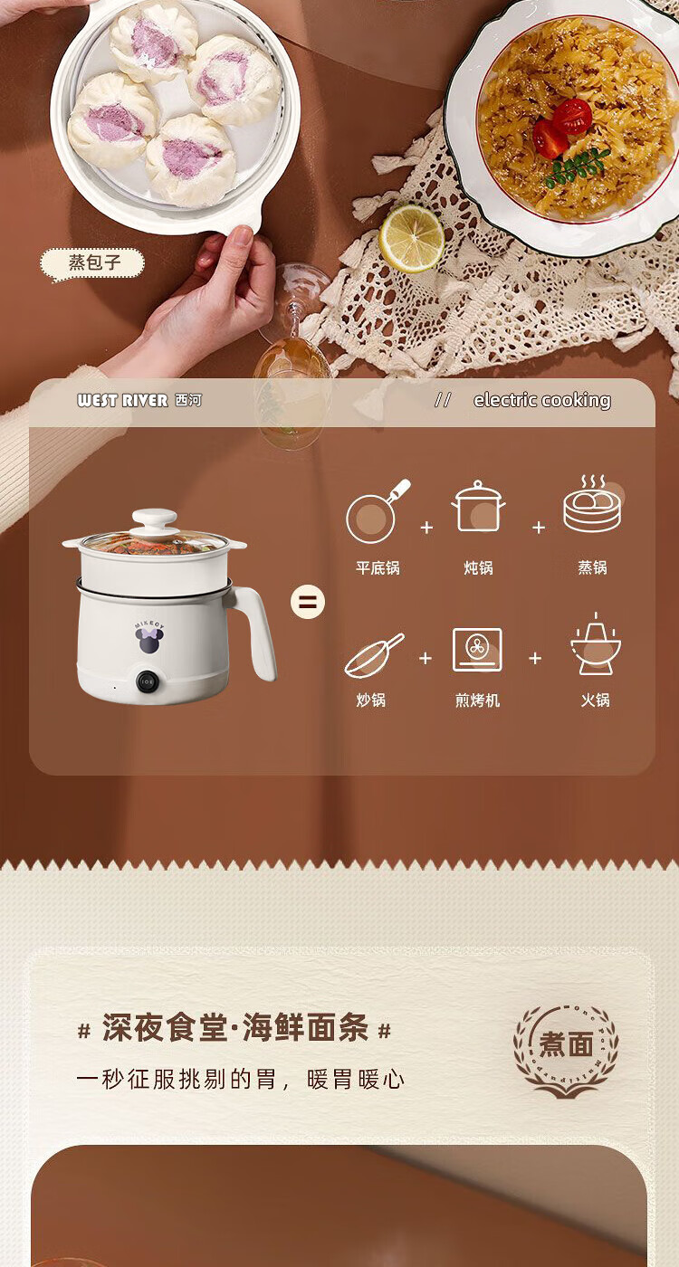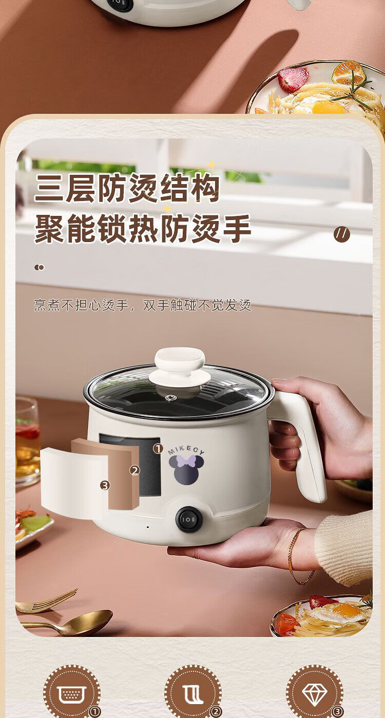 电煮锅小电锅电锅一体多功能锅宿舍用1-2人煮面锅 不锈钢内胆单锅1.4L【0.65m电源线】