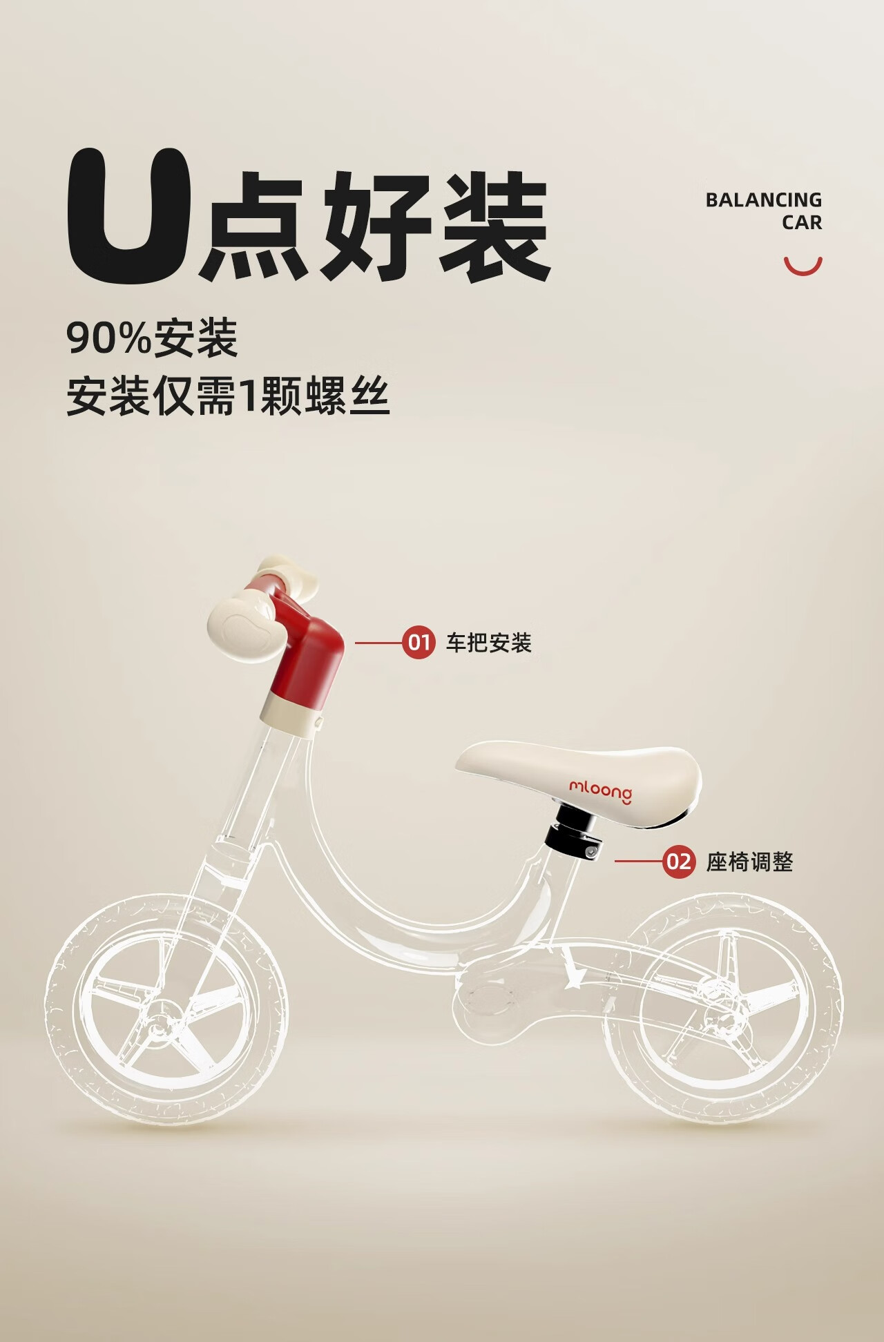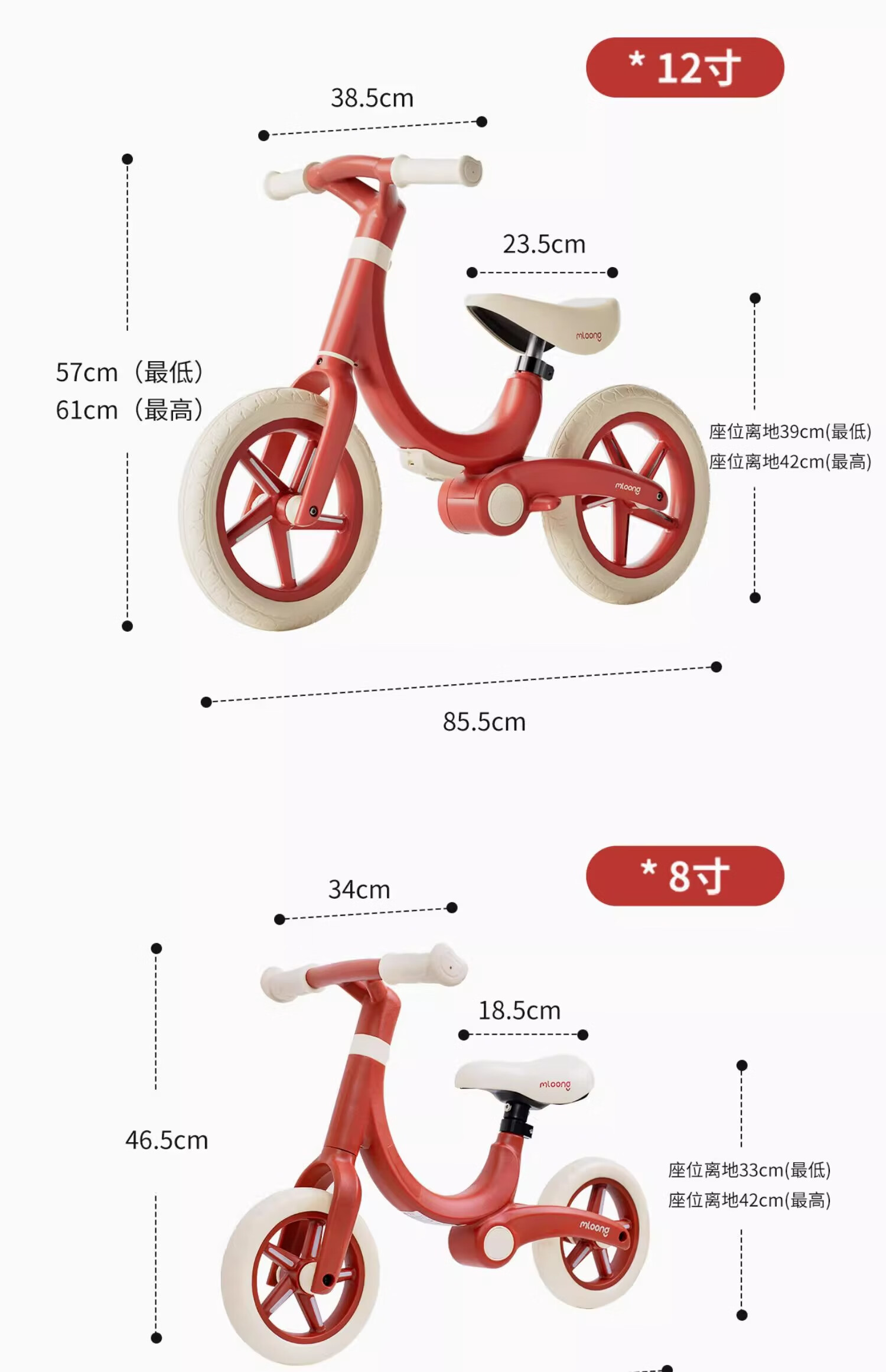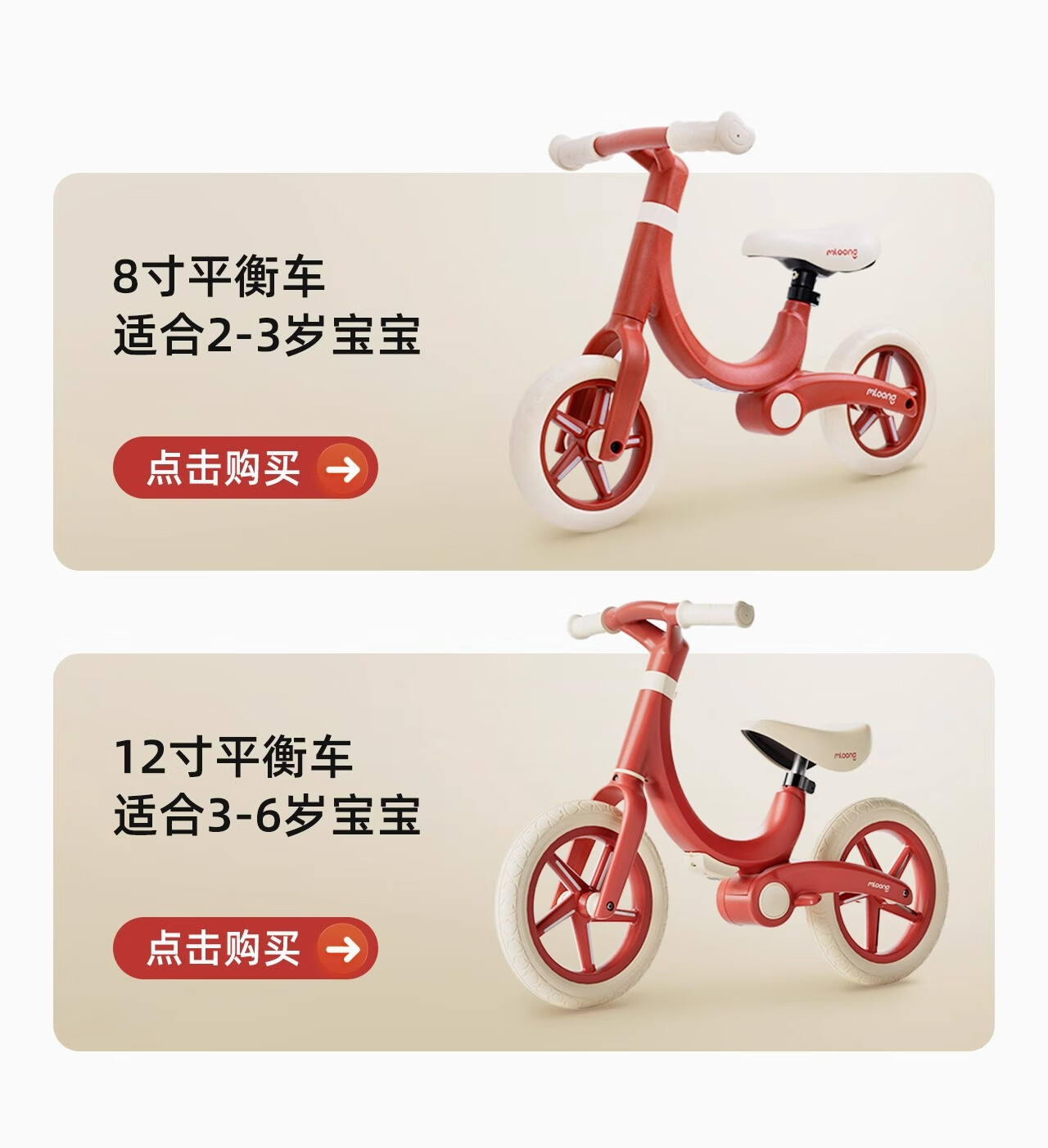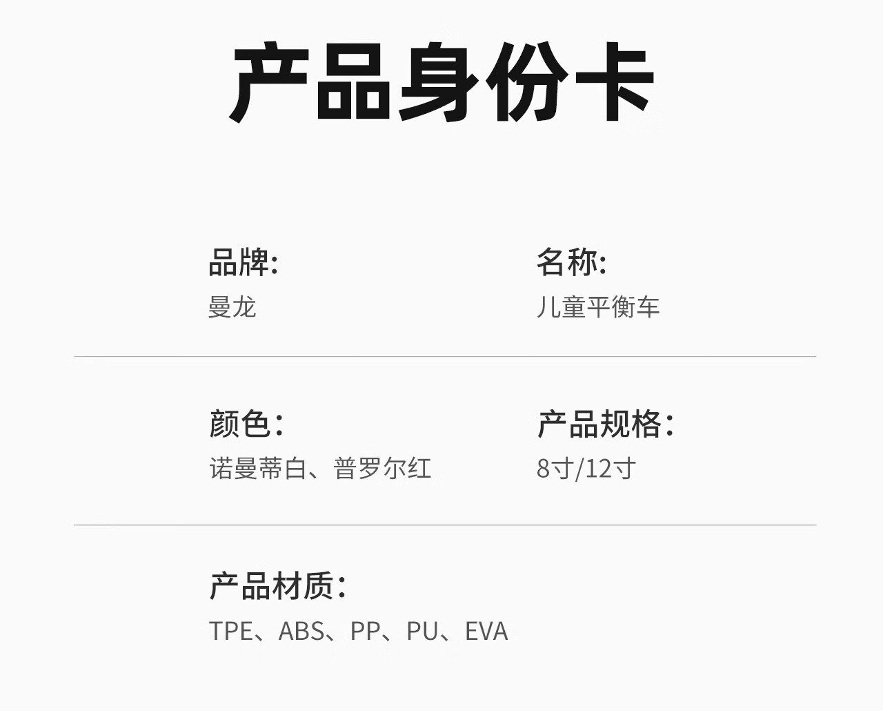 曼龙儿童平衡车儿童车无脚踏自行车1-3岁男女孩宝宝入门滑行滑步车 8寸 红色