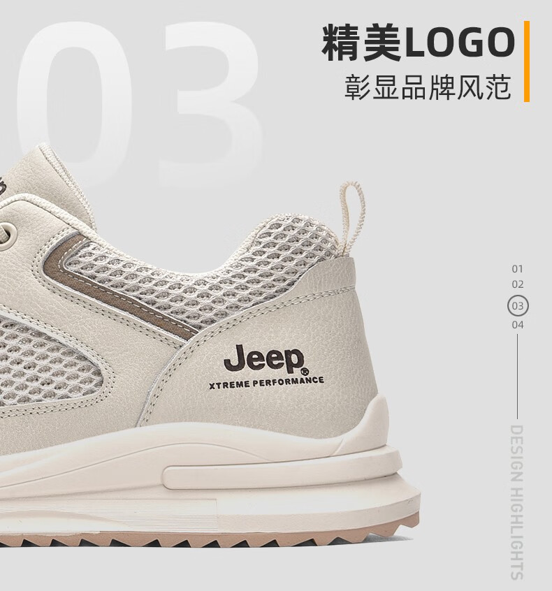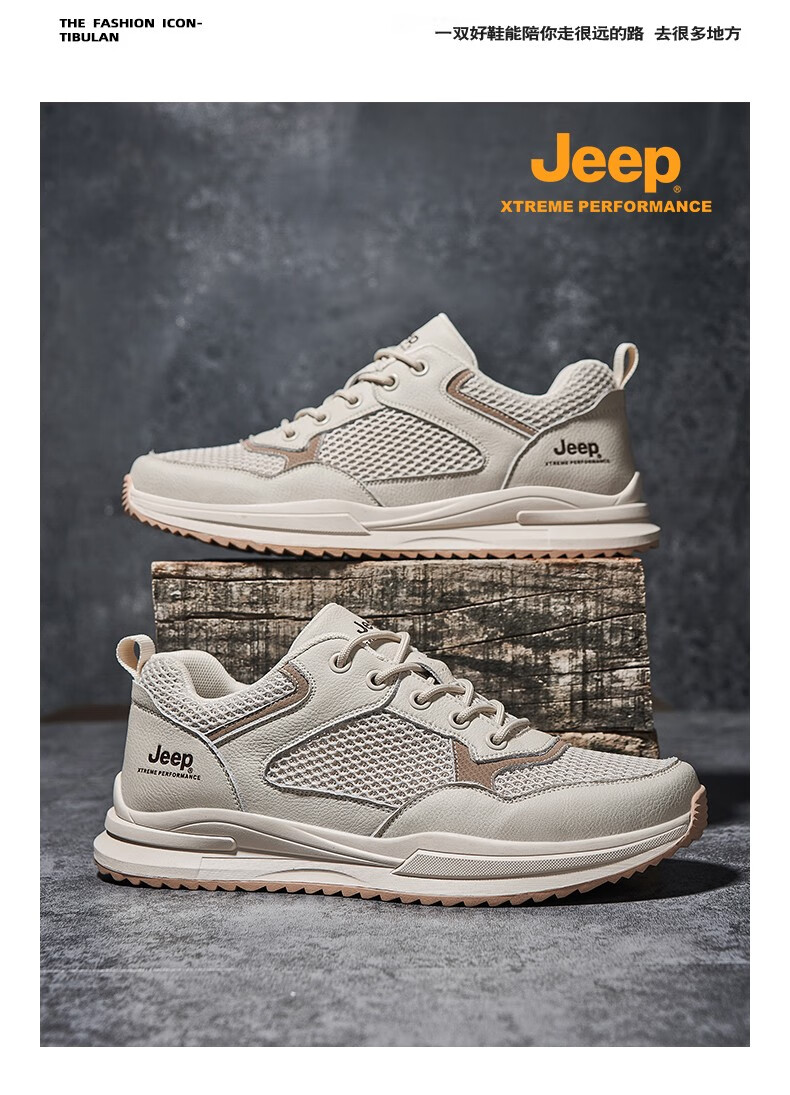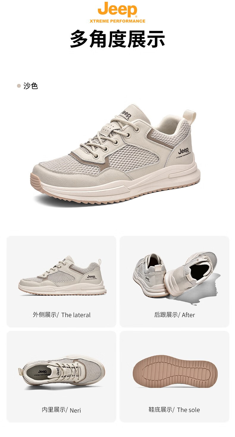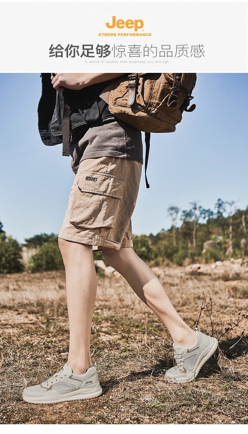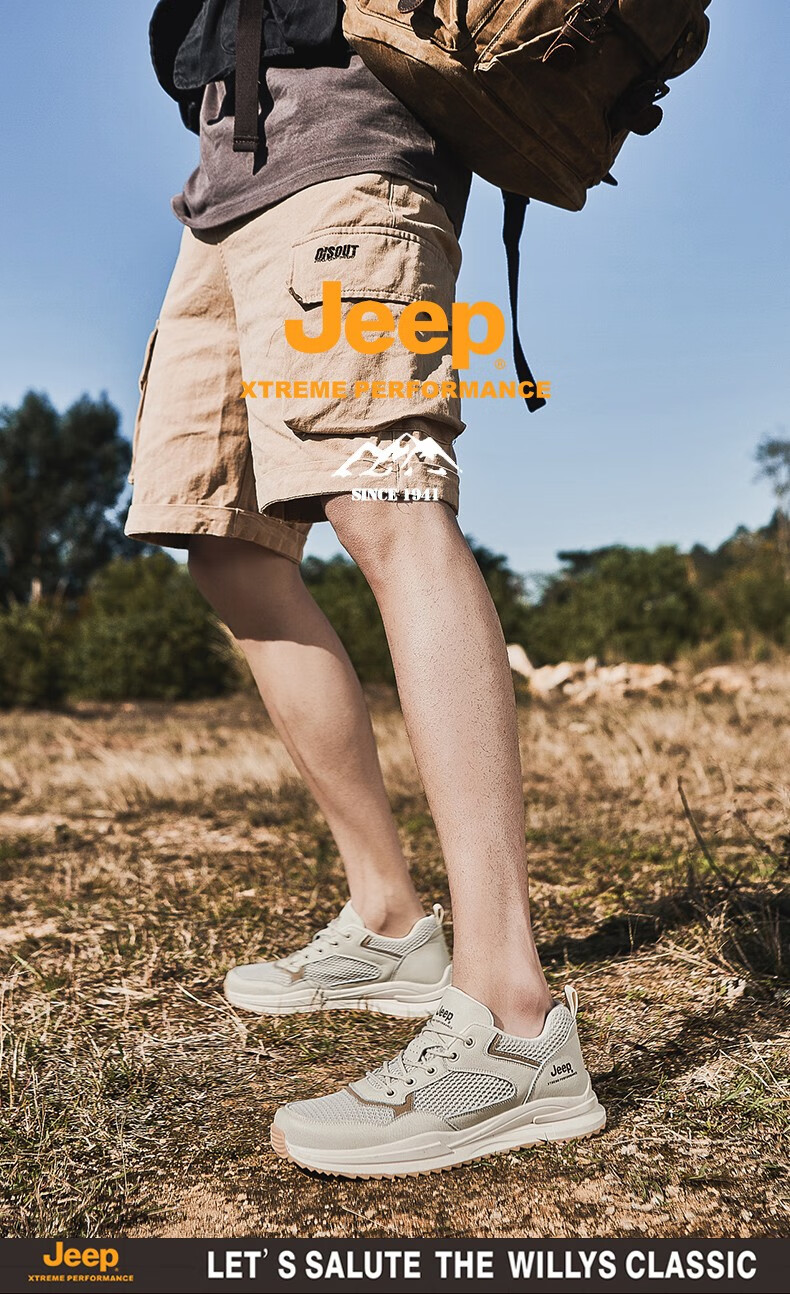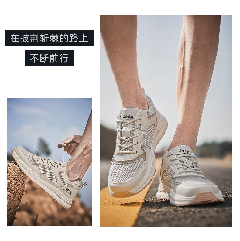 Jeep吉普男鞋运动鞋男夏季休闲鞋男士户外透气网面鞋轻便防滑软底鞋 沙色 41