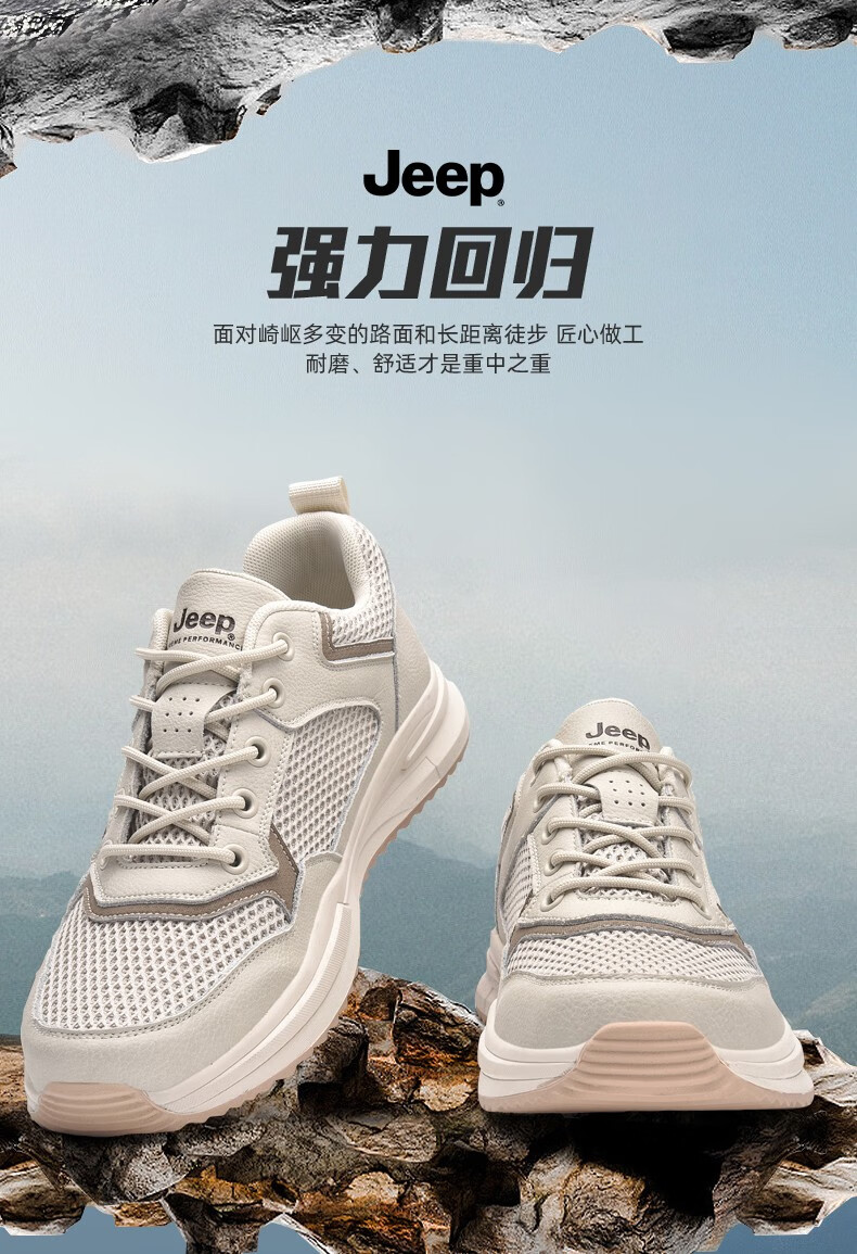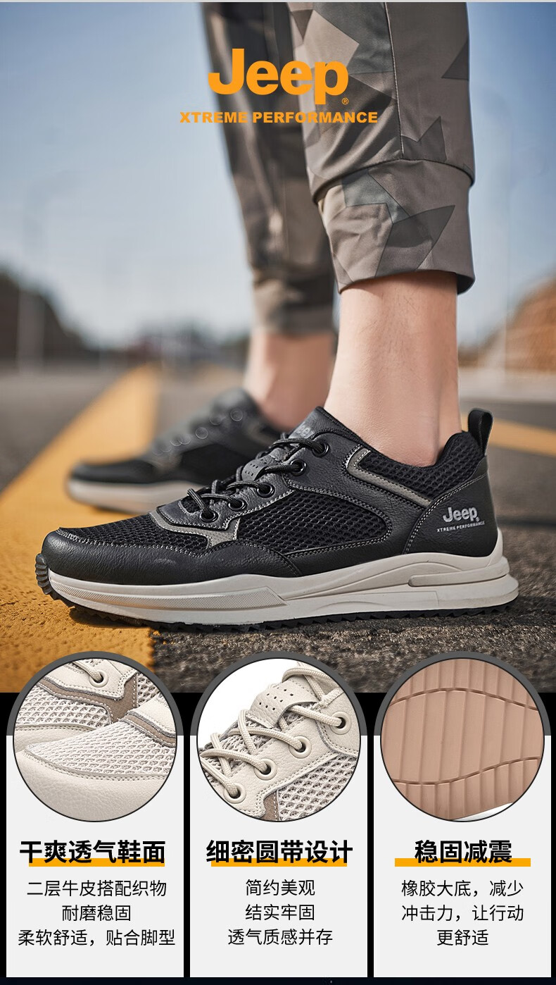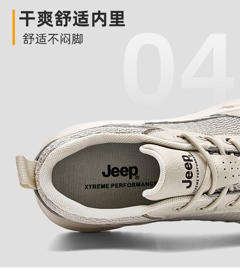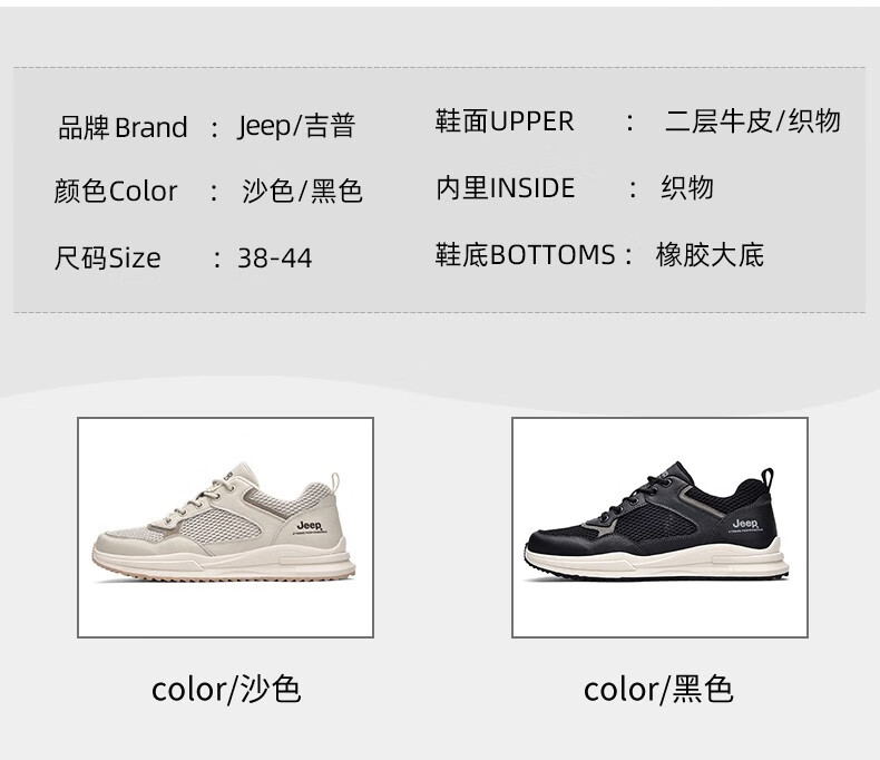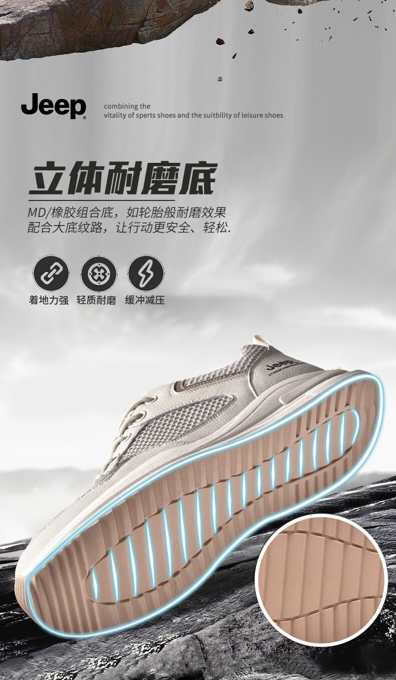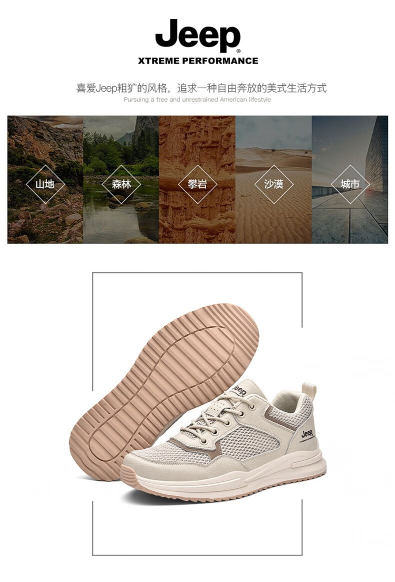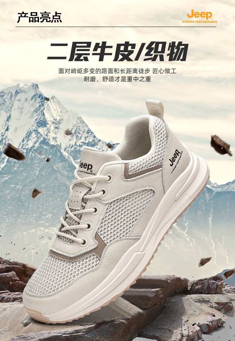 Jeep吉普男鞋运动鞋男夏季休闲鞋男士户外透气网面鞋轻便防滑软底鞋 沙色 41