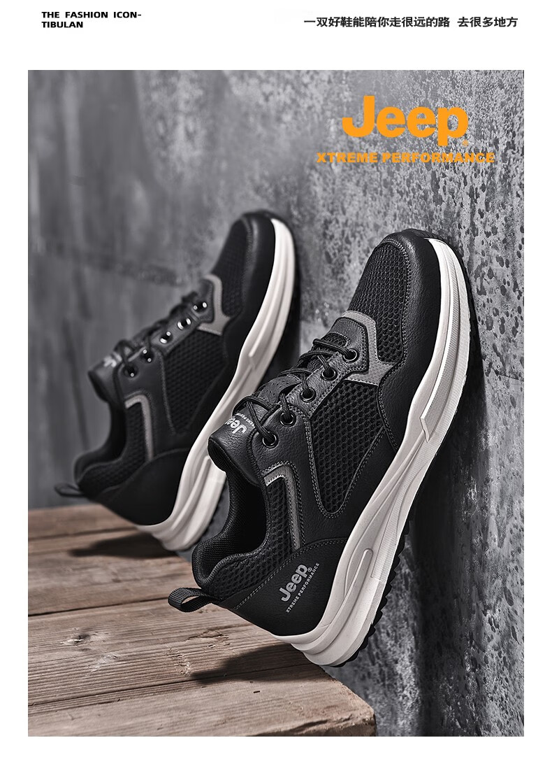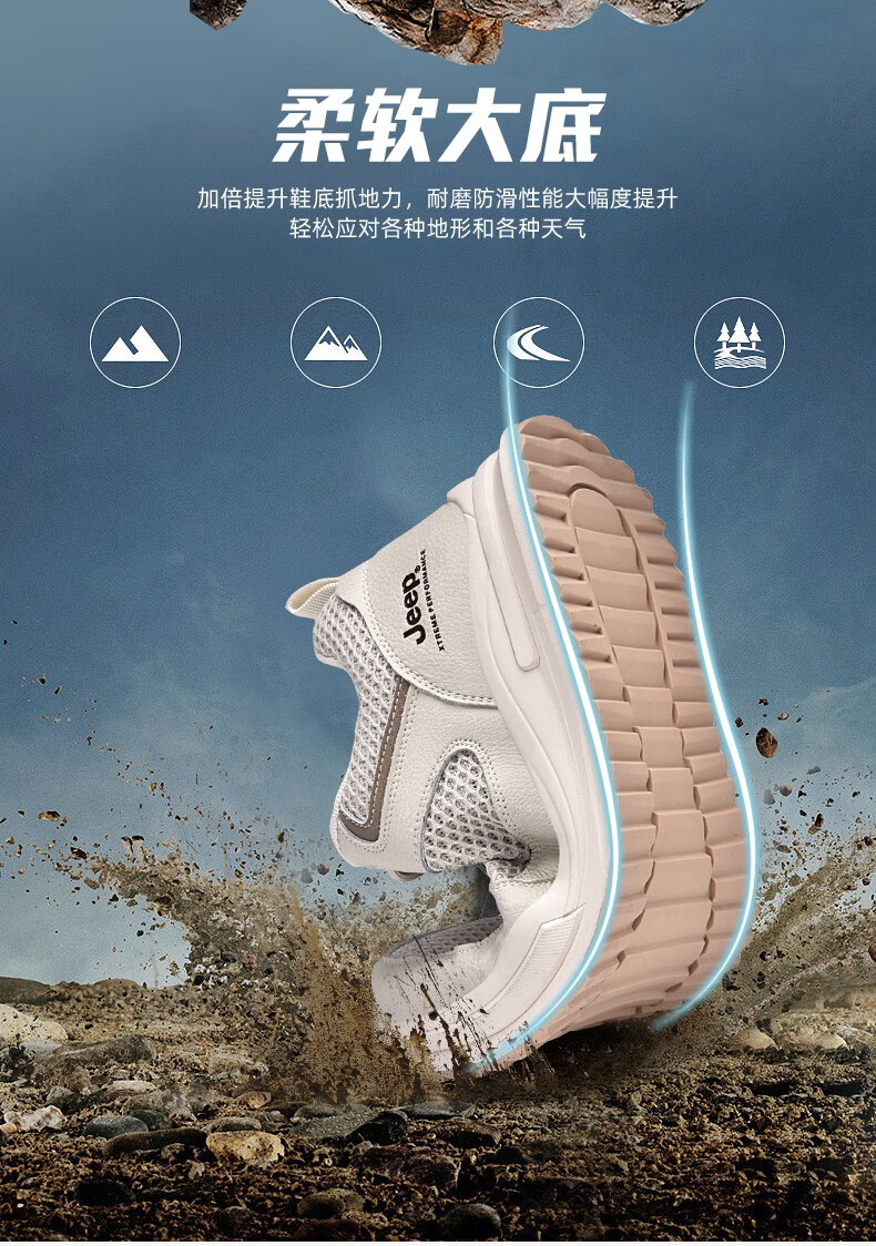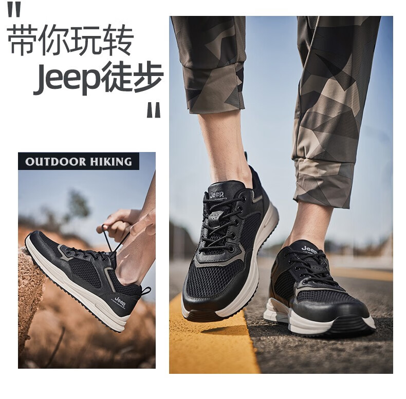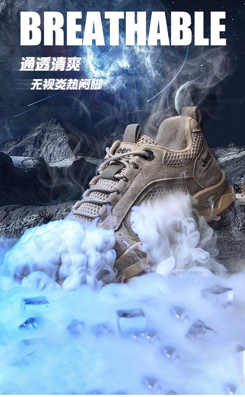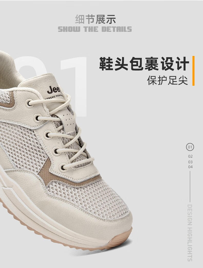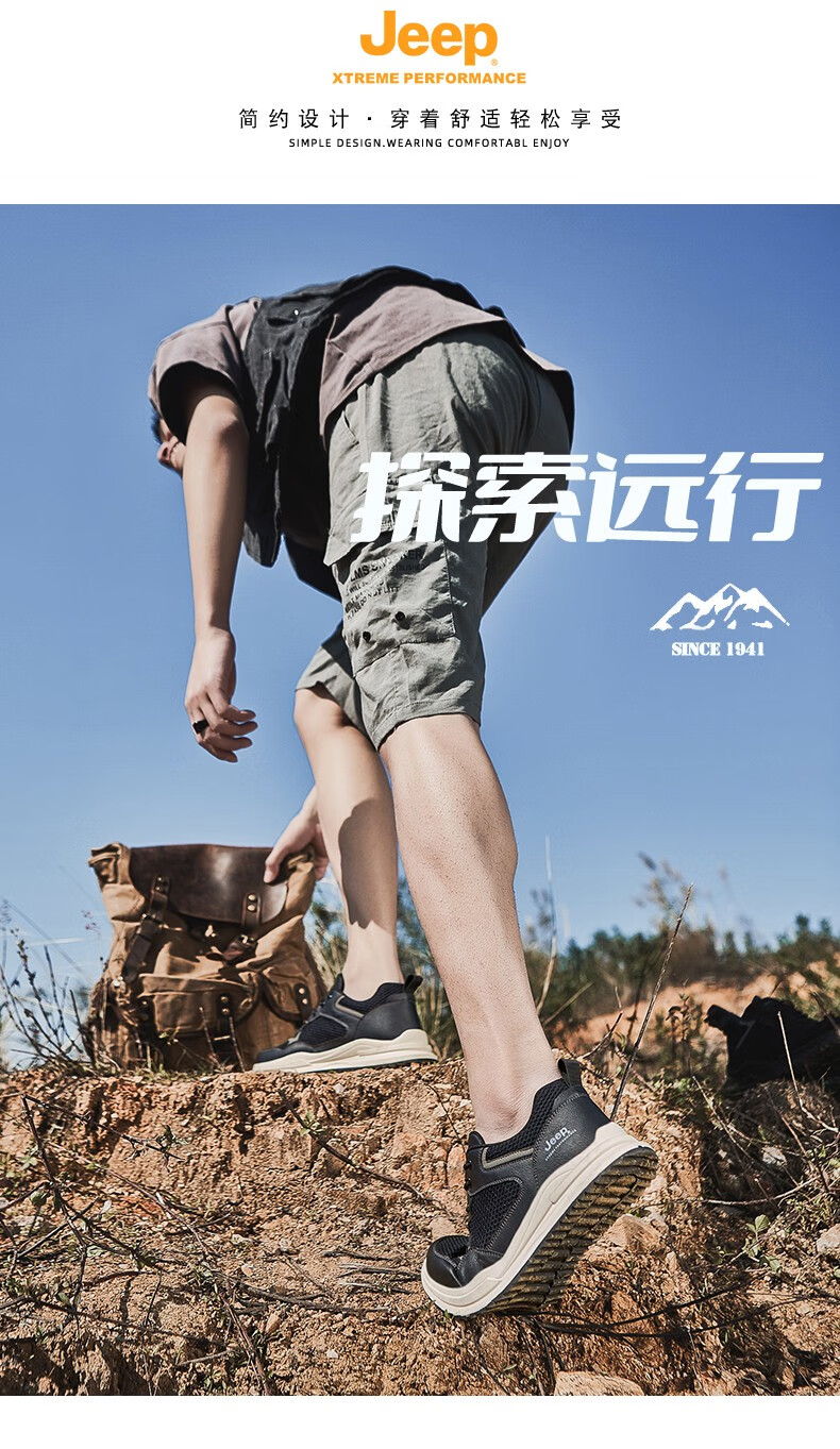 Jeep吉普男鞋运动鞋男夏季休闲鞋男士户外透气网面鞋轻便防滑软底鞋 沙色 41
