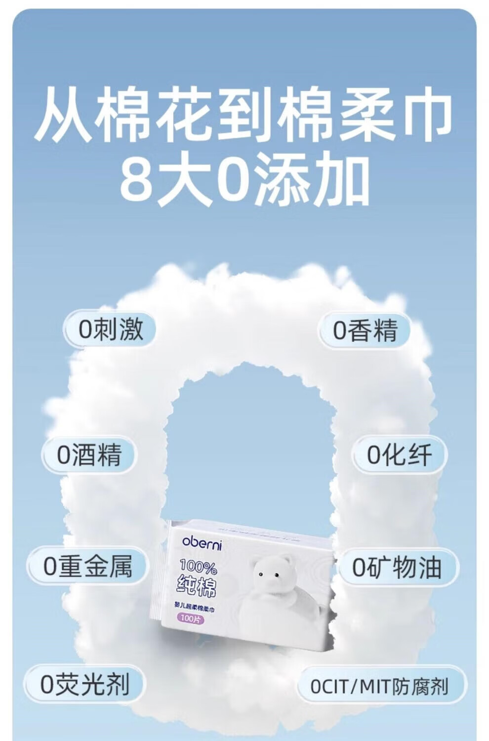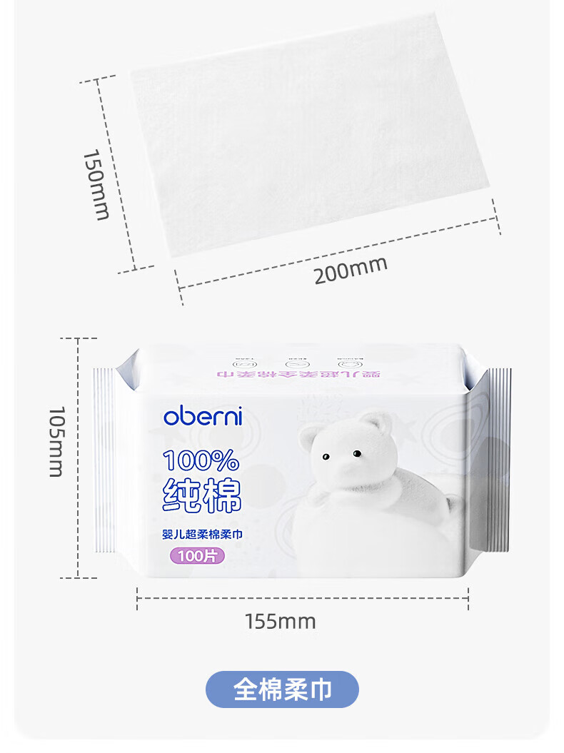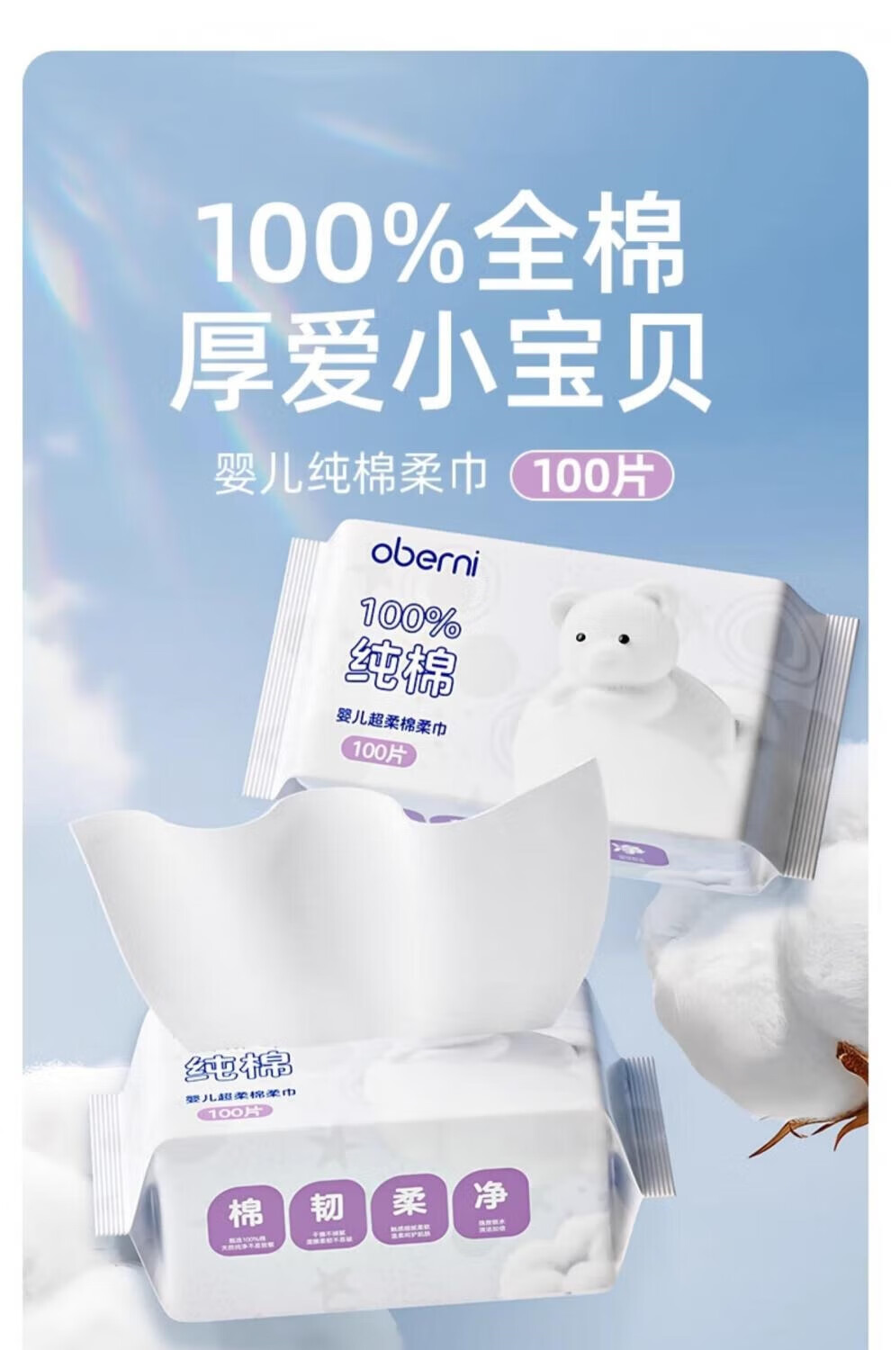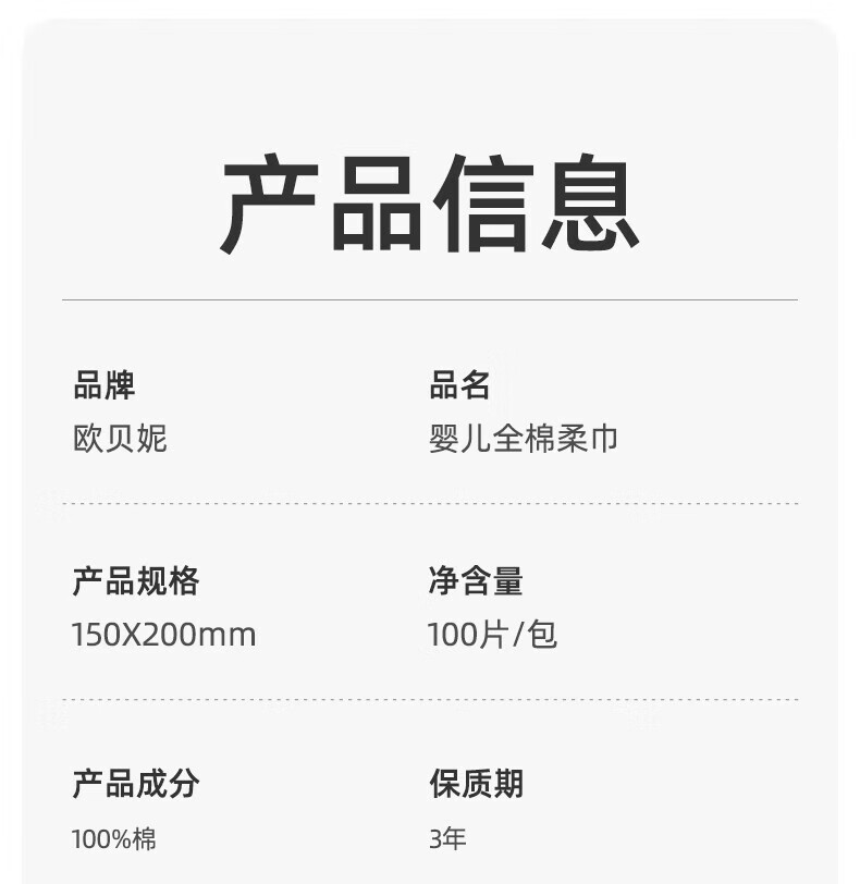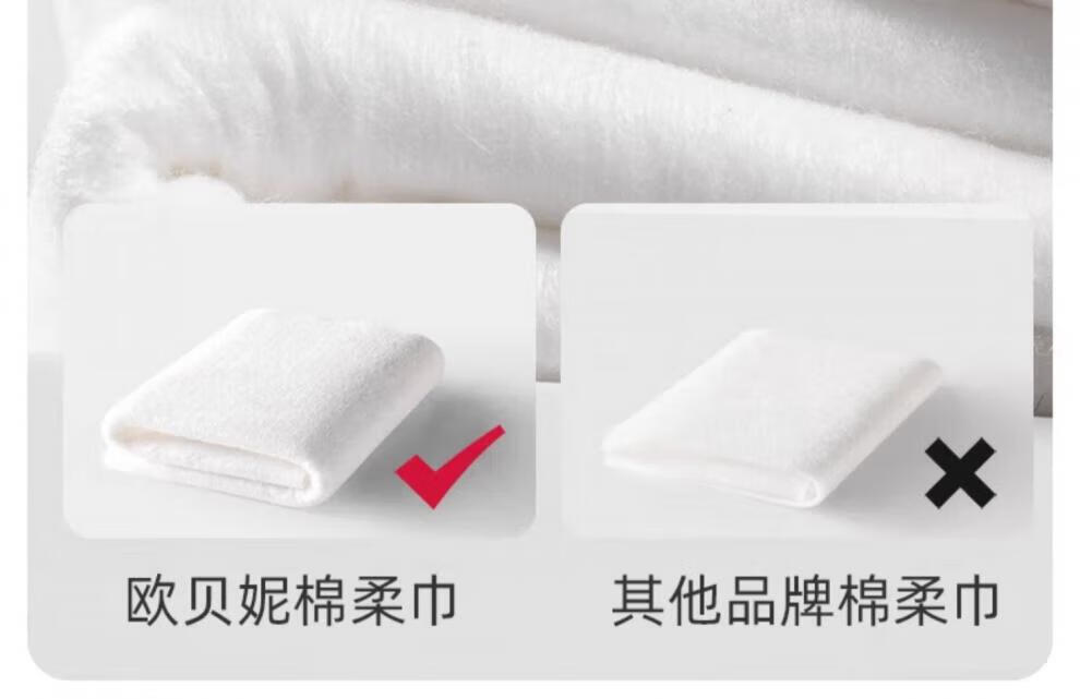 欧贝妮新生婴儿棉柔巾100抽纯棉专用手口擦脸洗屁屁干湿两用 (纯棉/尝新优选)100抽*1大包 1组