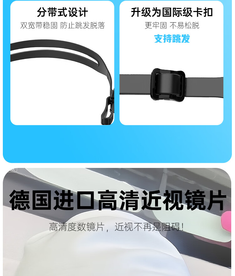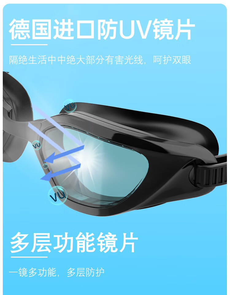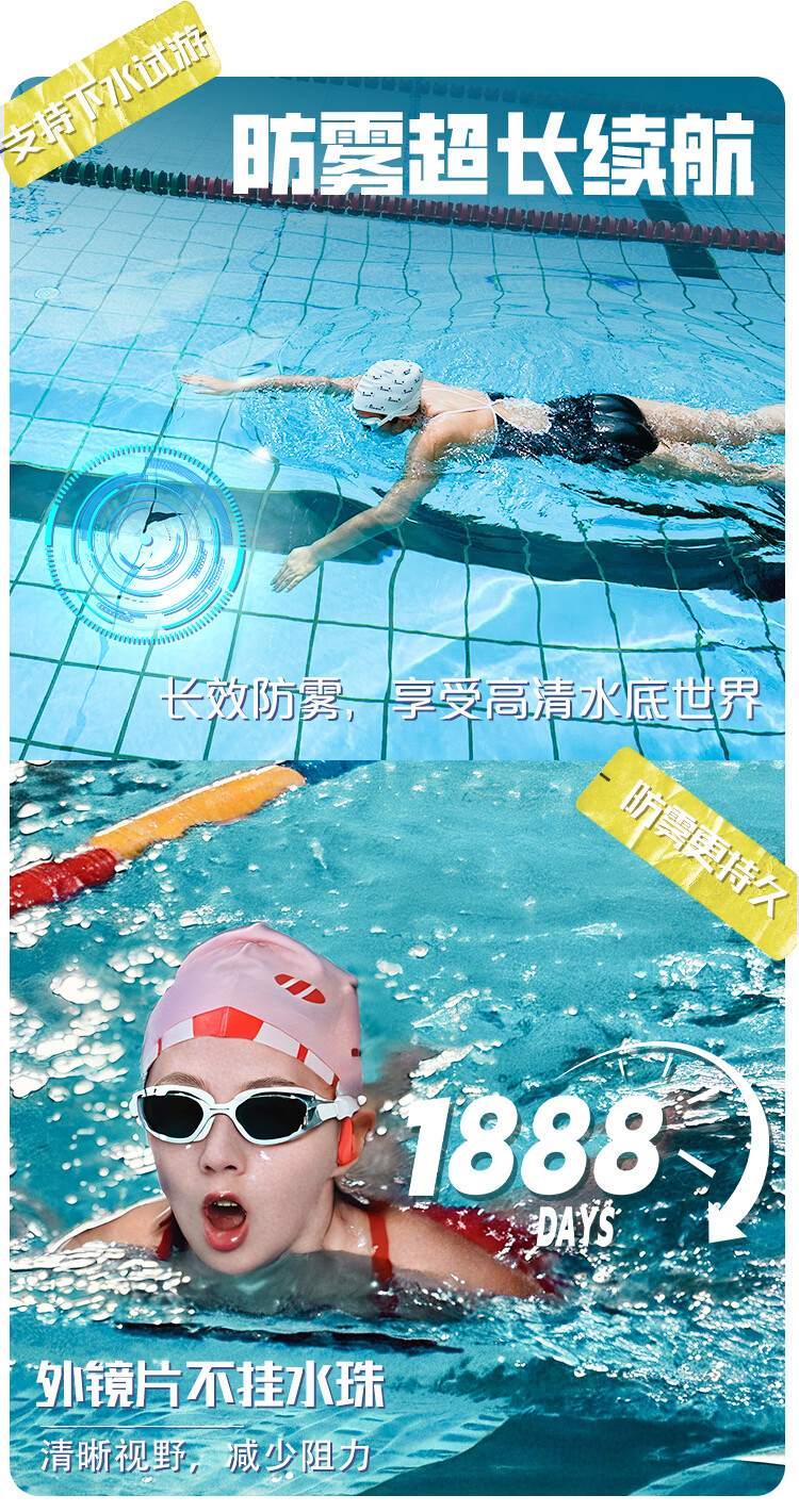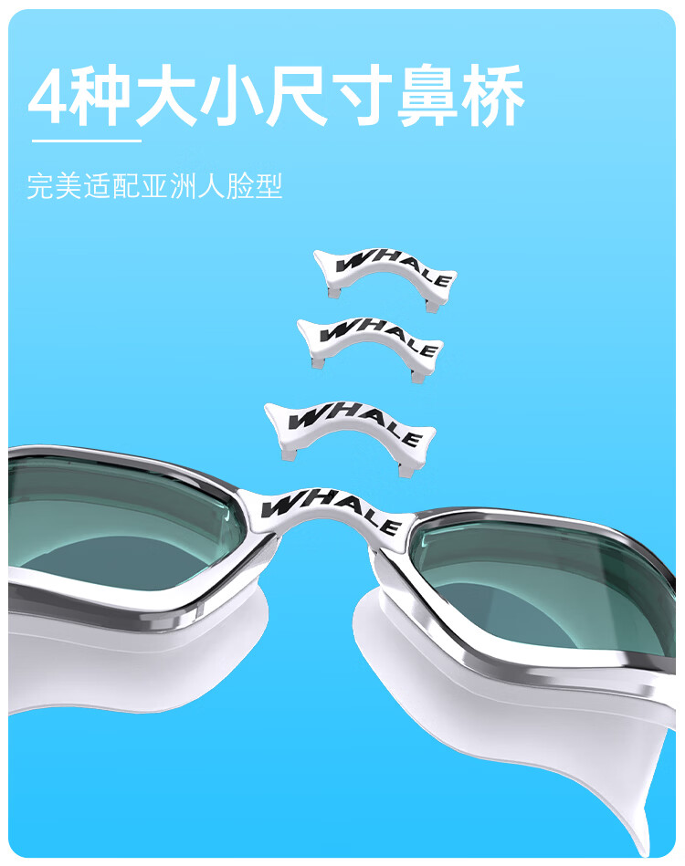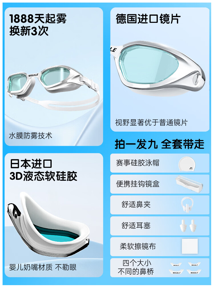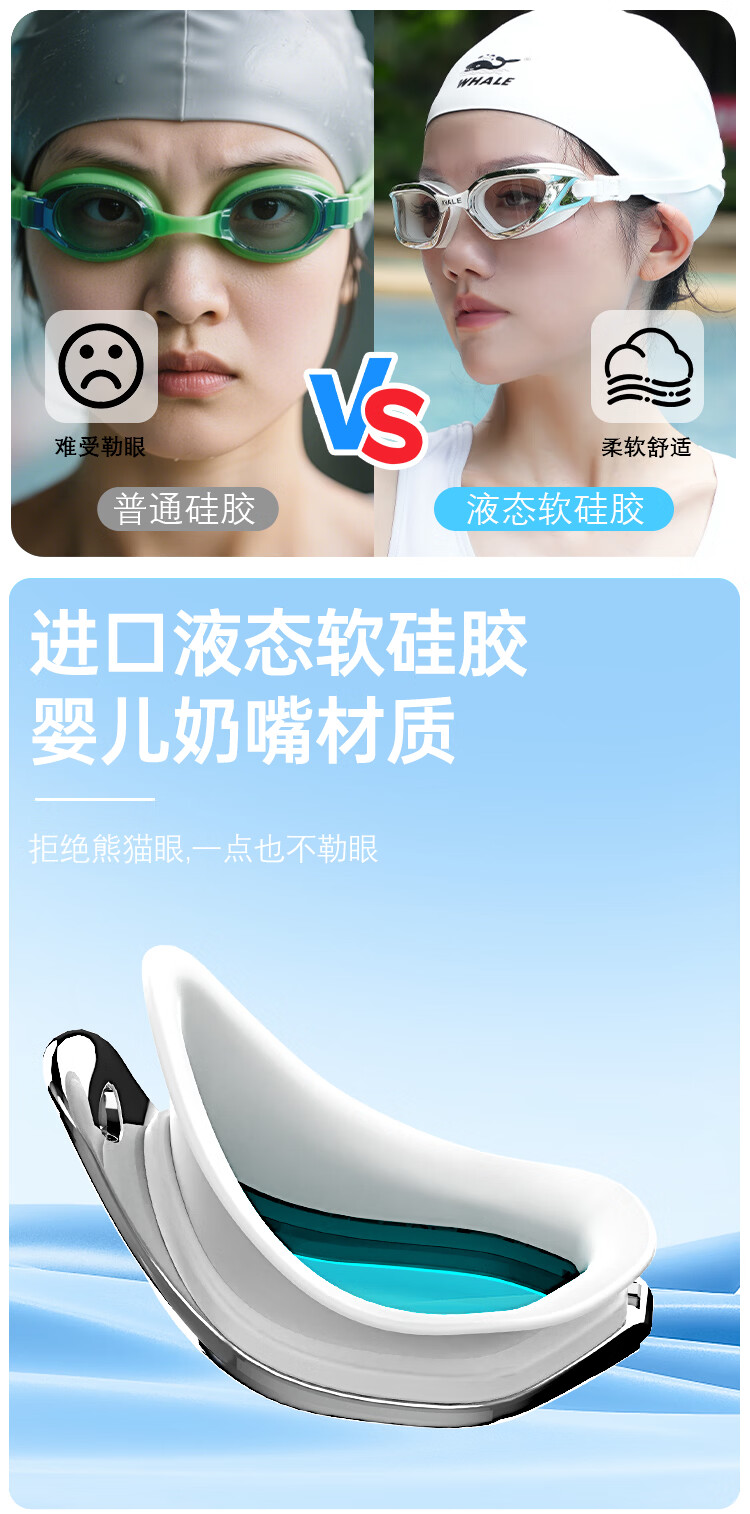鲸鱼S1防雾泳镜近视带度数成人男士女士防水游泳眼镜近视游泳镜泳帽 【纳米近视款】暗夜黑透明镜片-800度