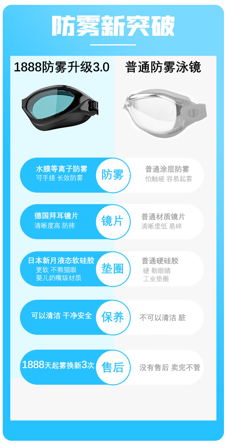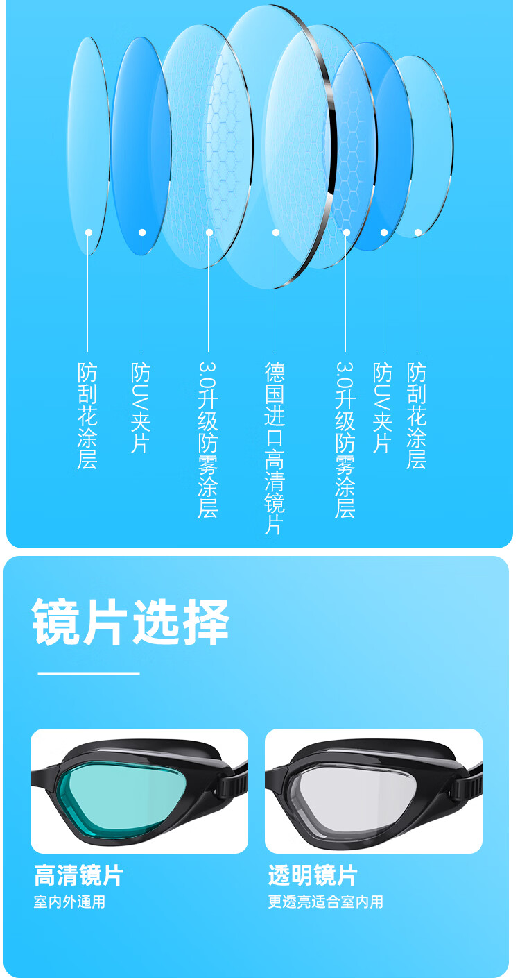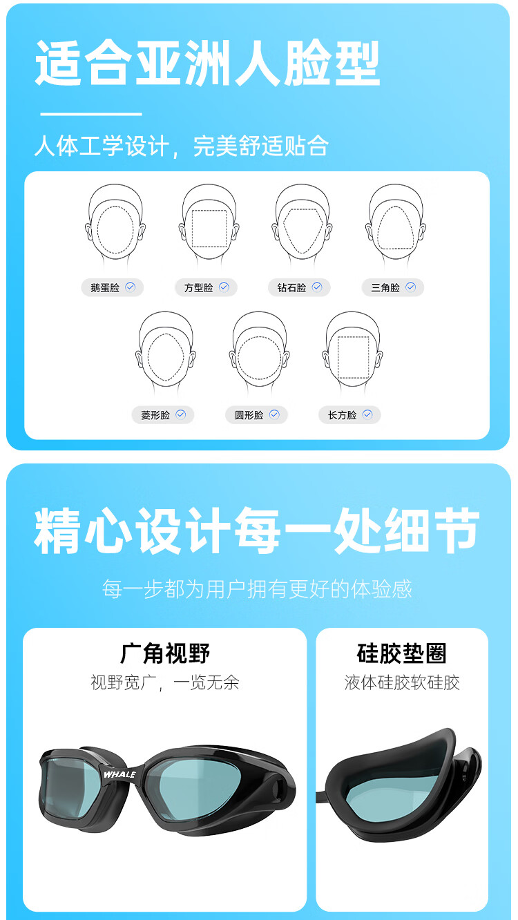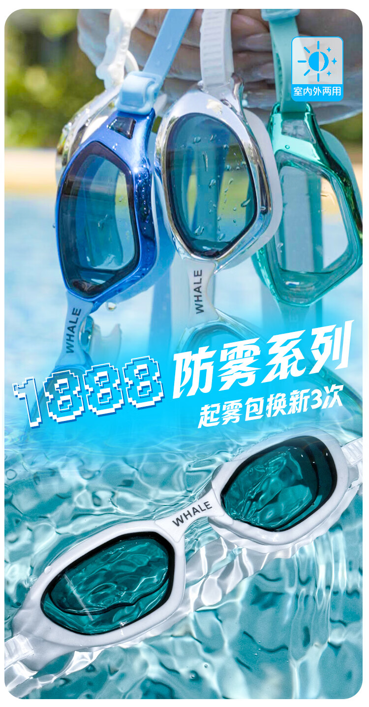 鲸鱼S1防雾泳镜近视带度数成人男士女士防水游泳眼镜近视游泳镜泳帽 【纳米近视款】暗夜黑透明镜片-800度