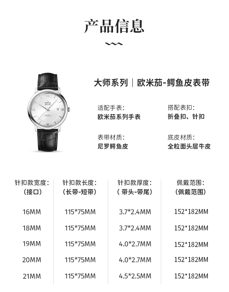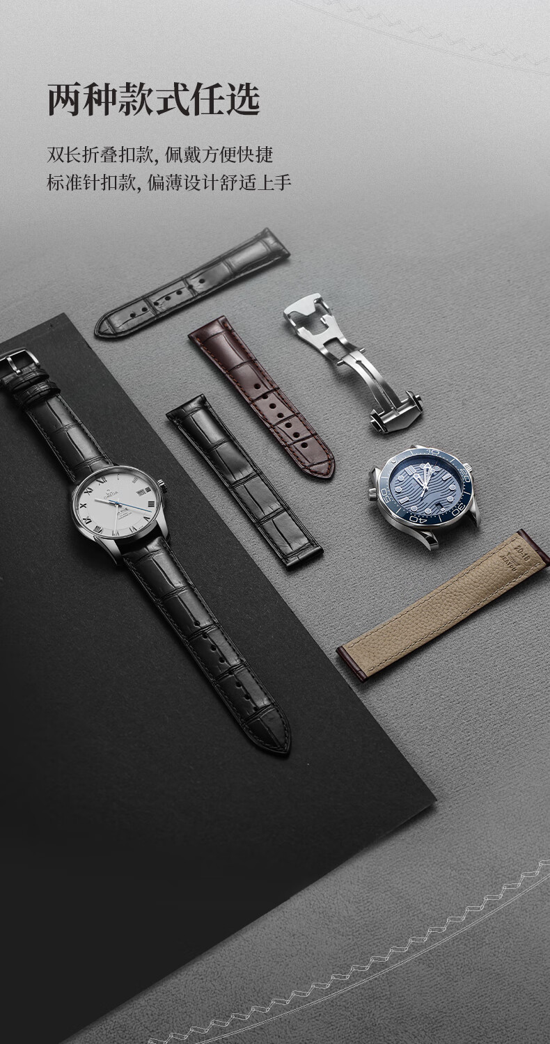 积优(JEAYOU)欧米茄表带蝶飞优原装鳄鱼皮手表带真皮优原厂男士适用海马300超霸海马150新碟飞欧米伽女款omega 黑色【针扣款】 20mm 银色针扣