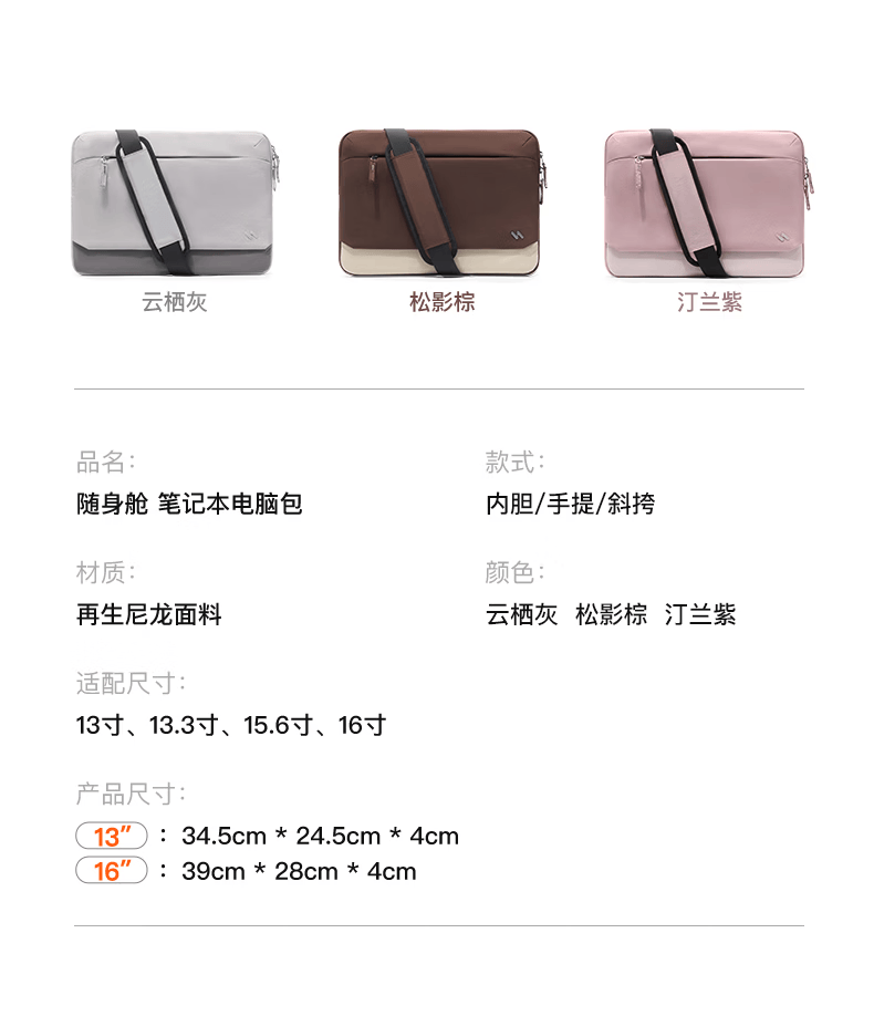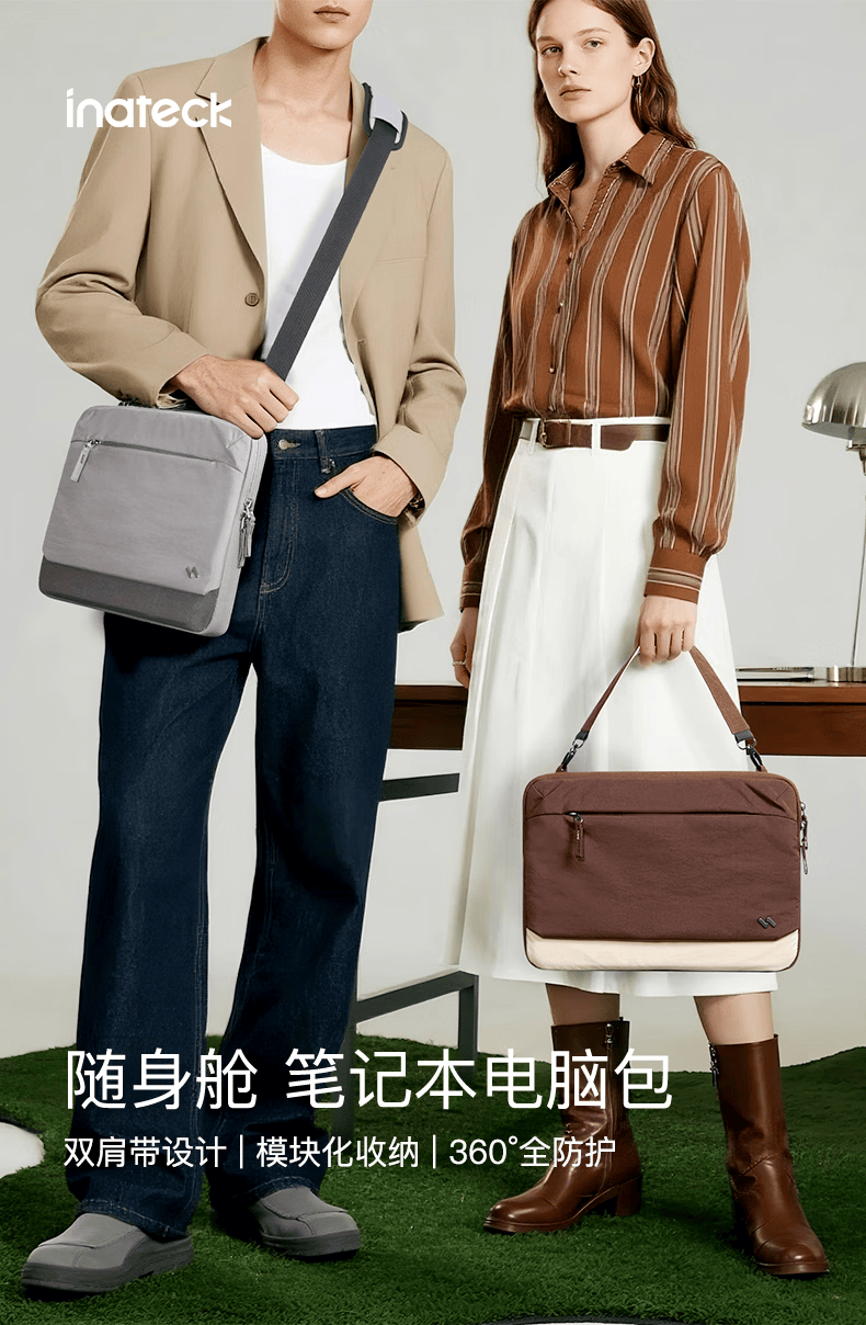 inateck随身舱笔记本电脑包14/16英寸手提公文包高颜值单肩电脑包 星夜黑|无肩带 13英寸【适配13-14寸电脑】