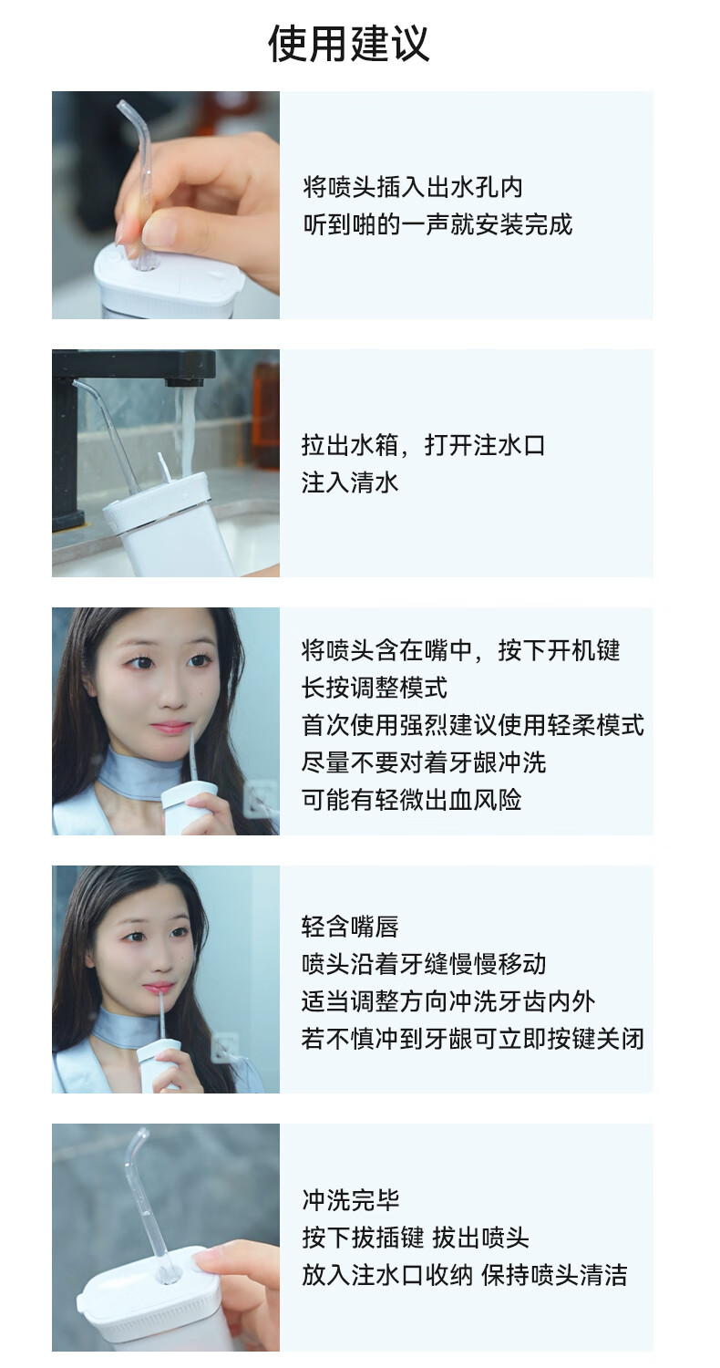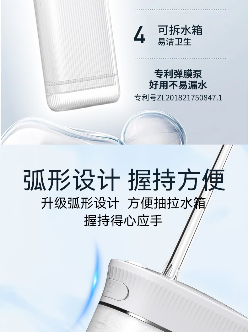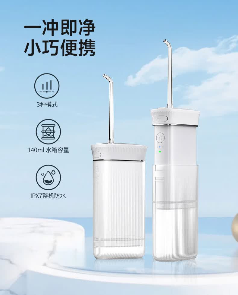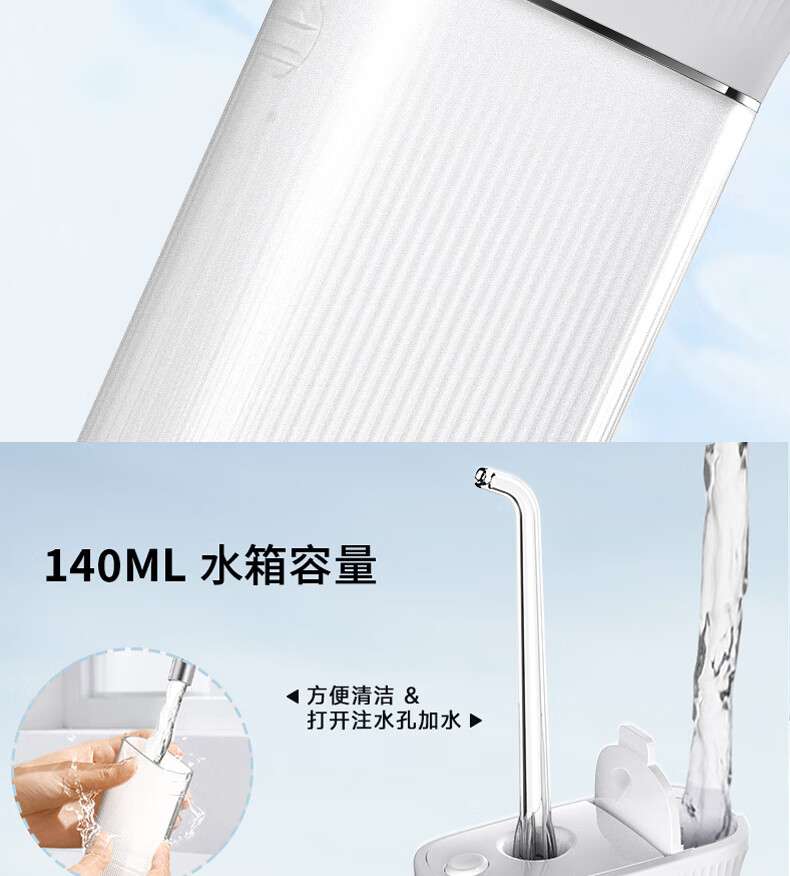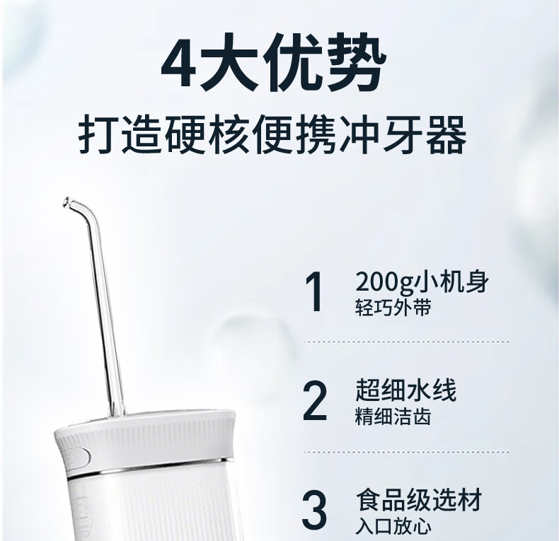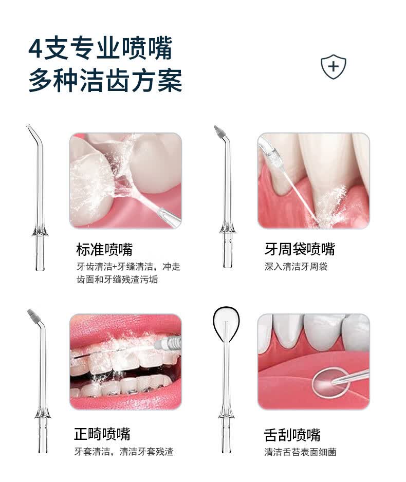 宜笑 ERSMILER冲牙器便携式洗牙器智齿牙齿冲洗器牙缝洁牙器正畸专用青少年儿童学生家用电动水牙线抽拉牙套可用 白色 4支喷头 (365天只换不修)