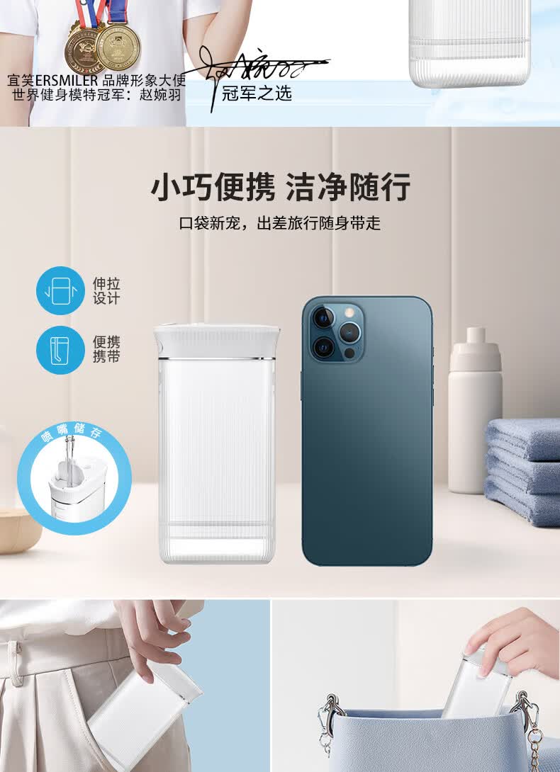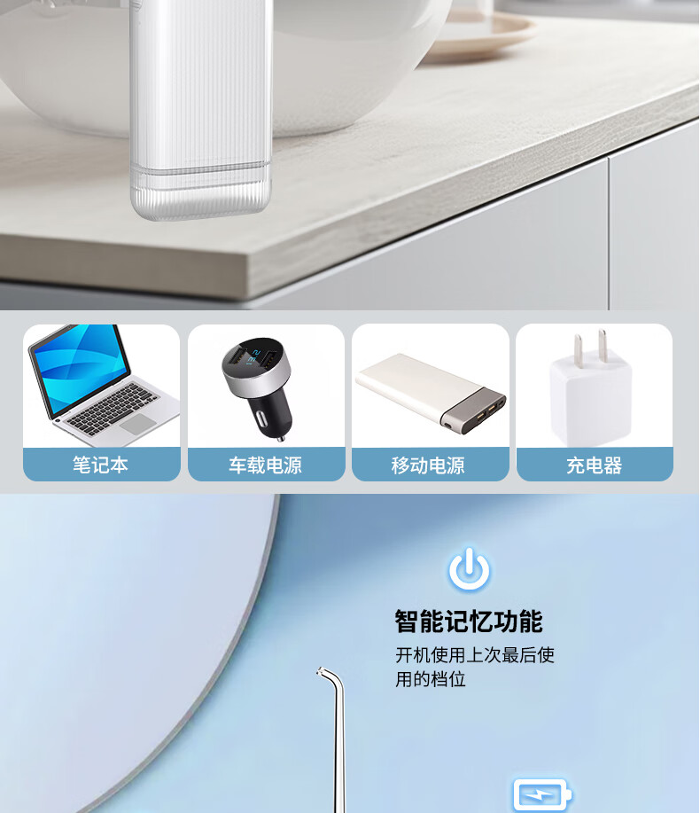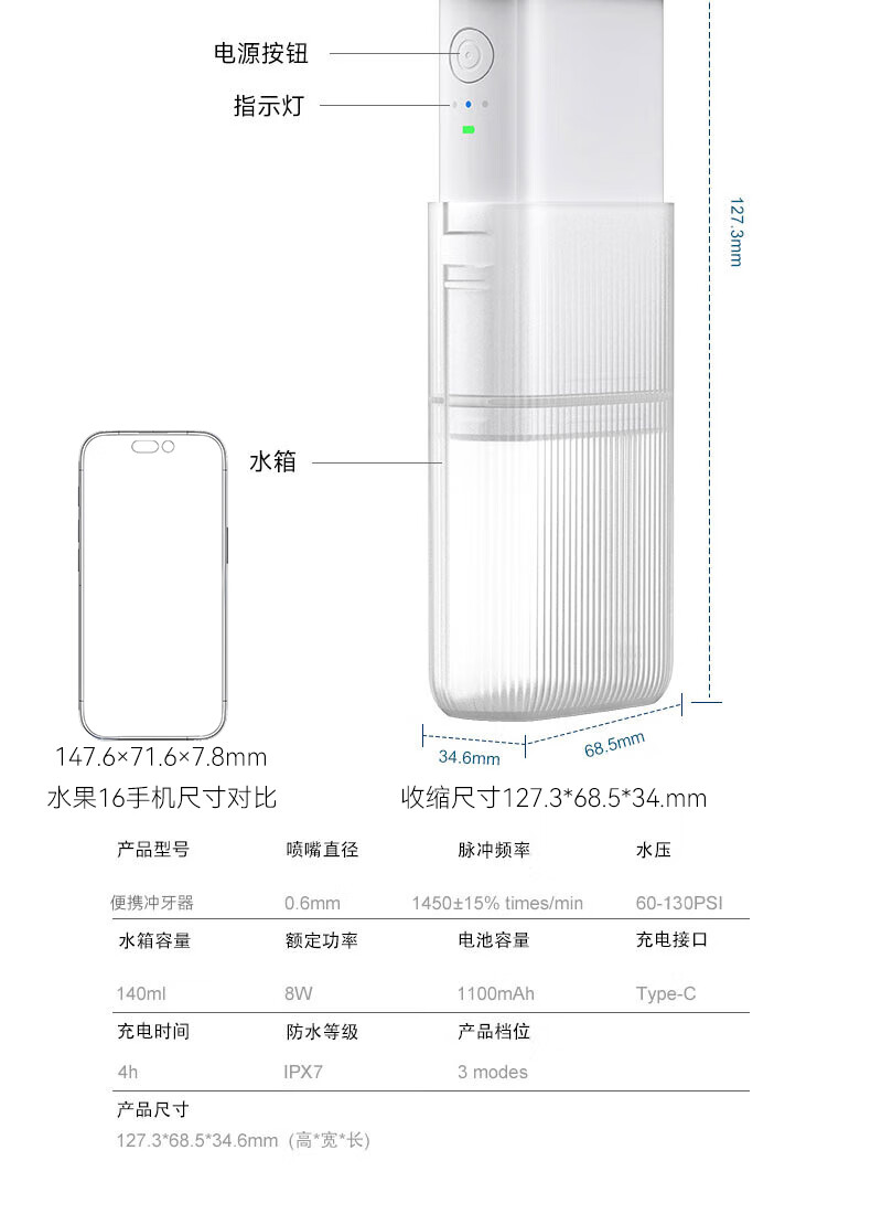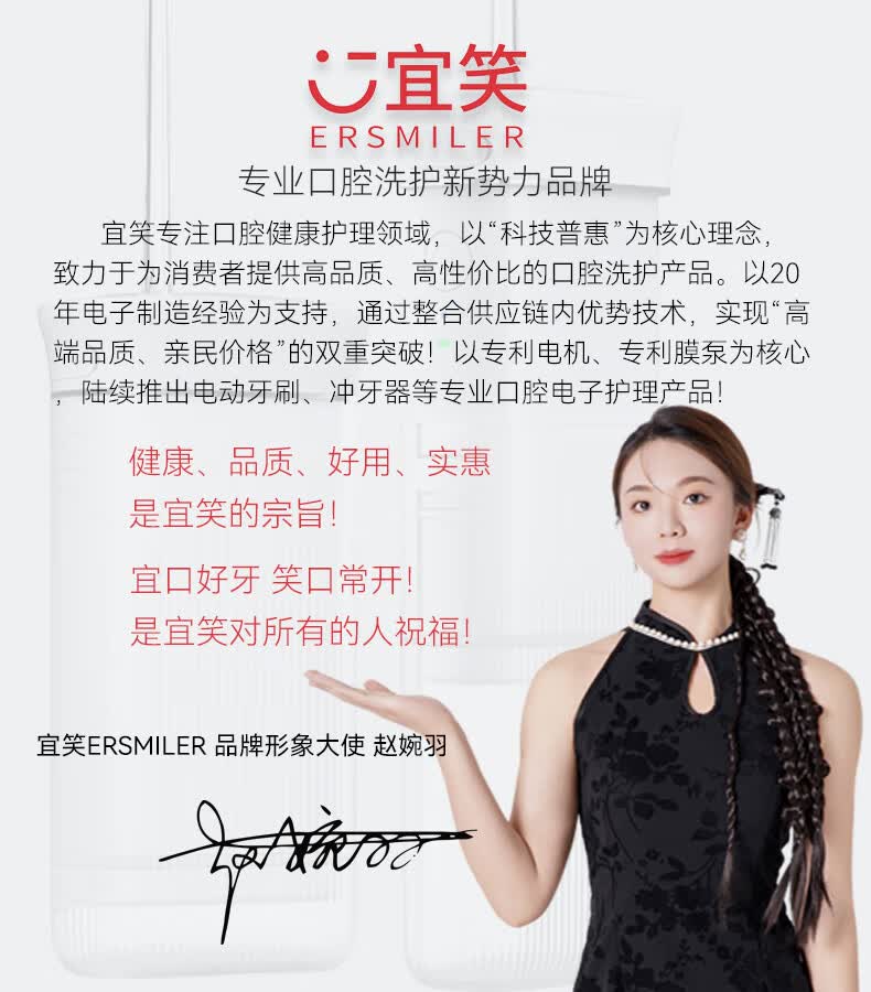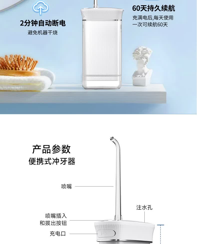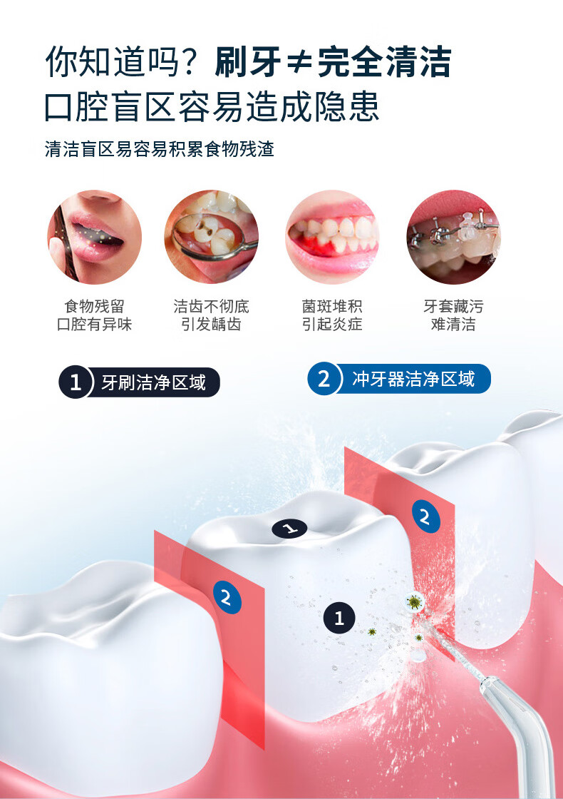 宜笑 ERSMILER冲牙器便携式洗牙器智齿牙齿冲洗器牙缝洁牙器正畸专用青少年儿童学生家用电动水牙线抽拉牙套可用 白色 4支喷头 (365天只换不修)