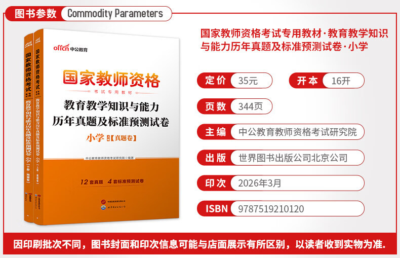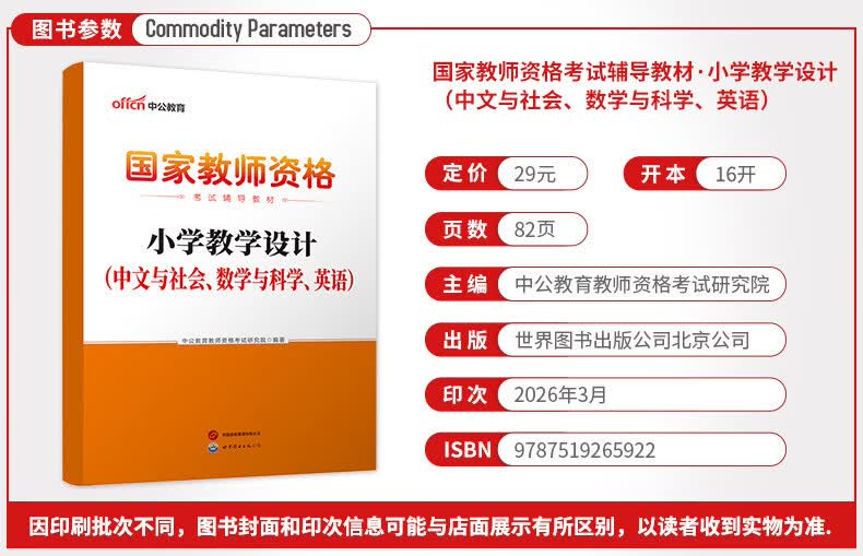 中公教育教资考试资料2026下半年小学教师资格证考试教材真题用书:教材+历年真题试卷及预测语文数学英语音乐体育美术适用 综合素质教育教学知识与能力小学教资考试资料2025 热销 小学教资【语数英】(教
