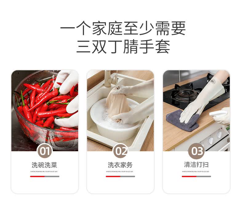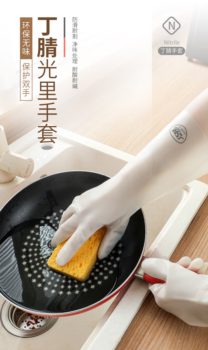 巧姨丁腈家务加厚手套劳保工作耐磨耐用防水洗衣服洗碗无味厨房 丁腈手套(3双装) M(中码)