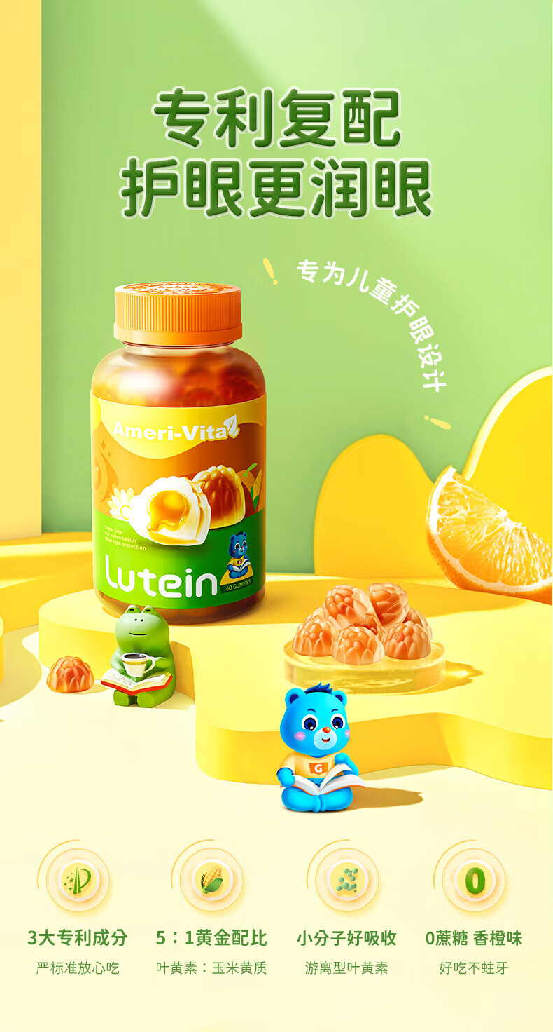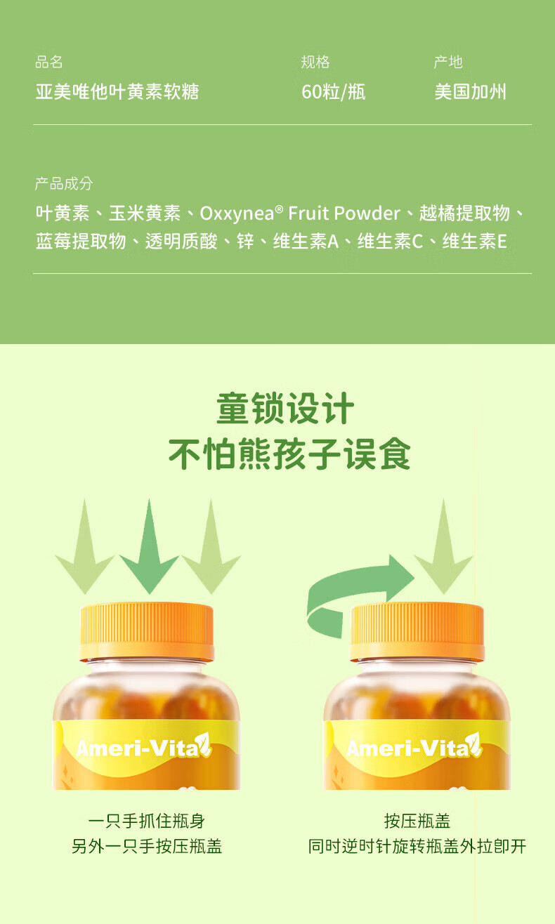 Ameri-Vita【限量50件19.9元】亚美唯他进口越橘儿童叶黄素软糖保护视力10粒