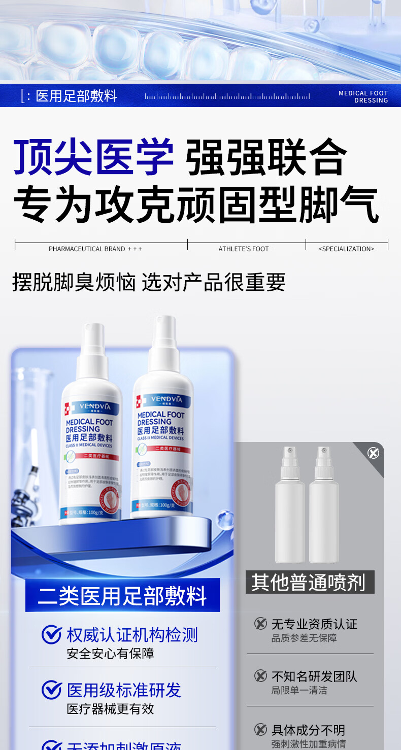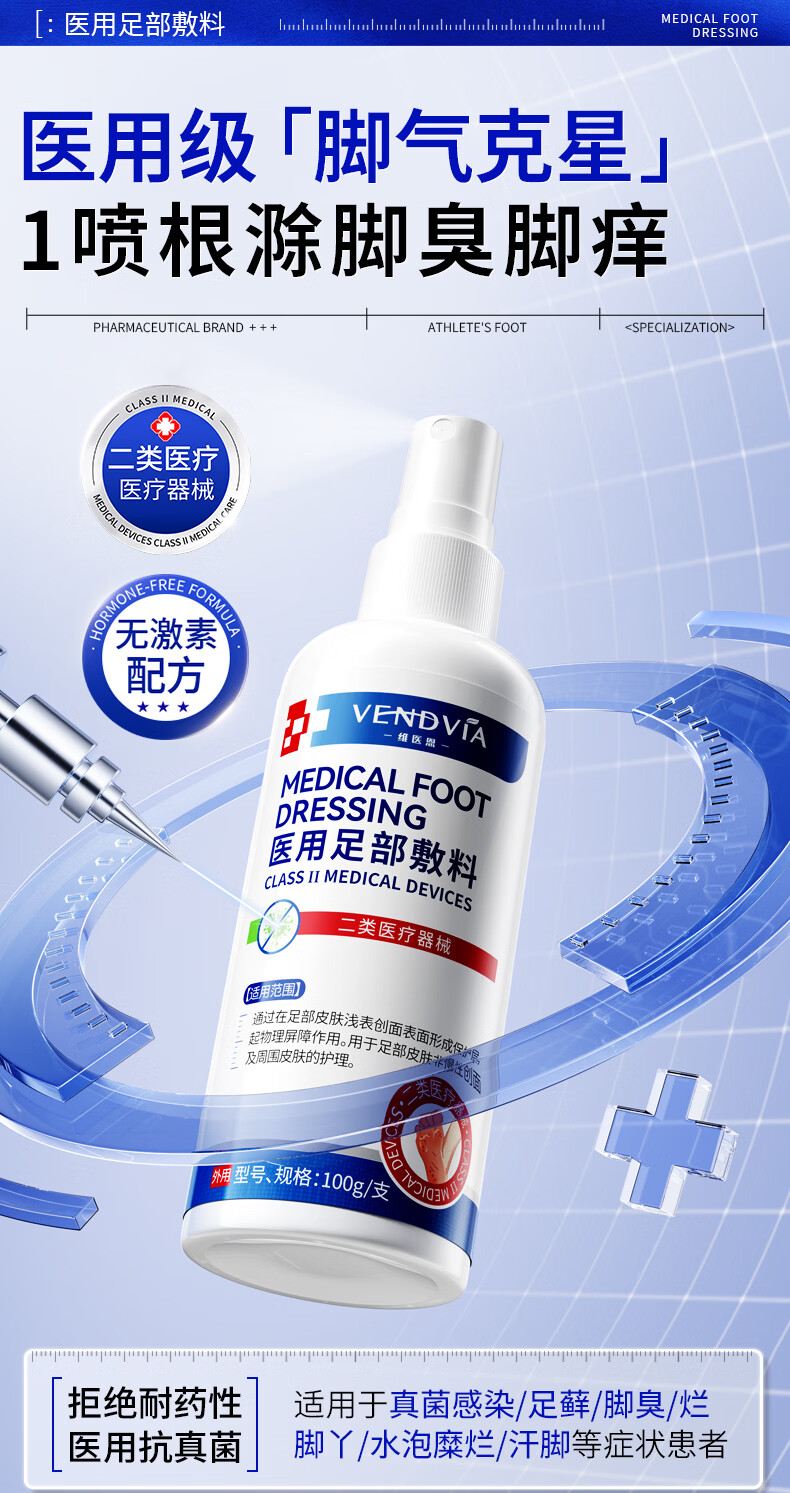 Vendvia脚气喷剂止痒脱皮烂脚丫真菌感染脚臭脚痒改善足部抑菌喷雾剂 【第二瓶半价】去脚气脚臭克星