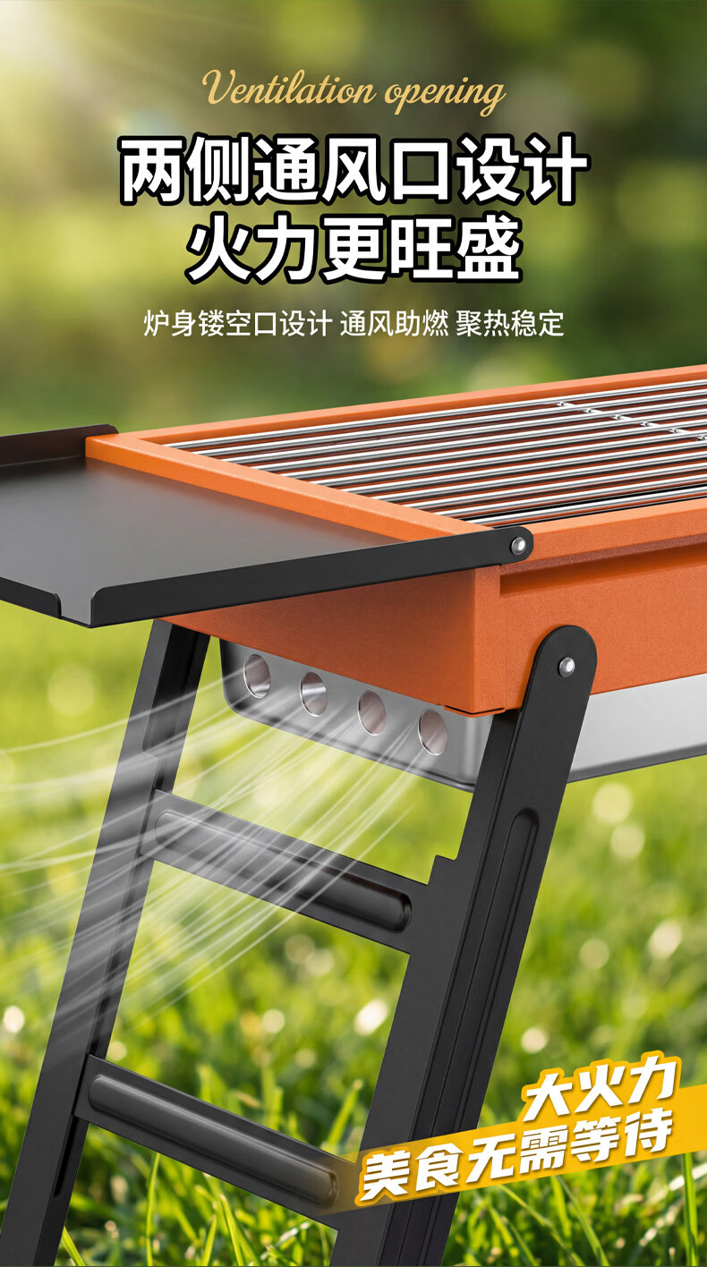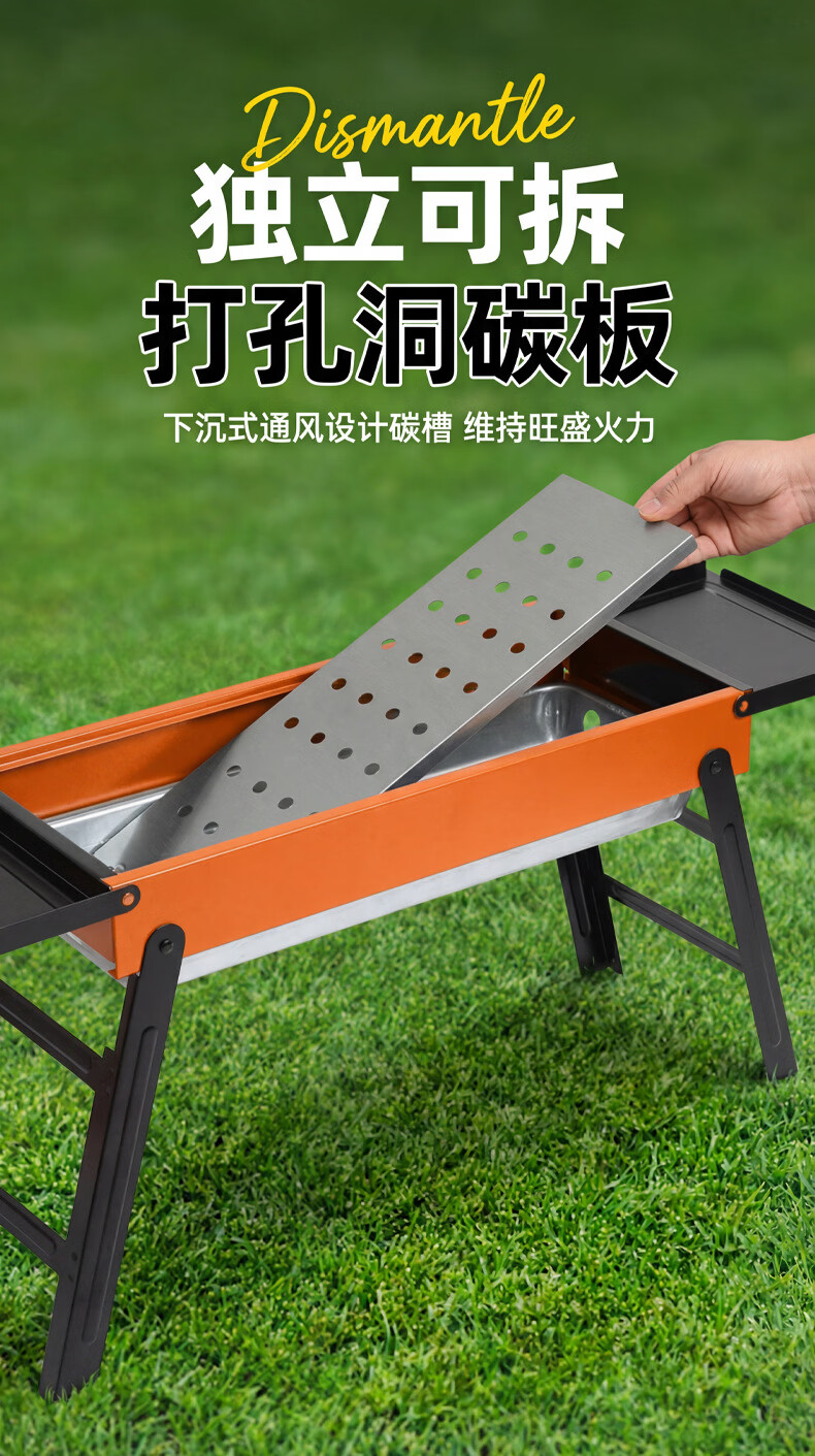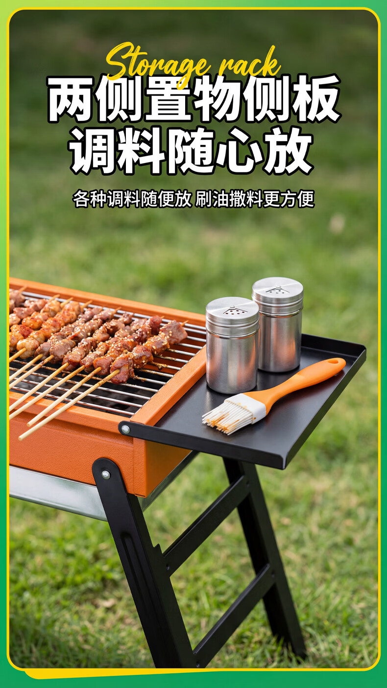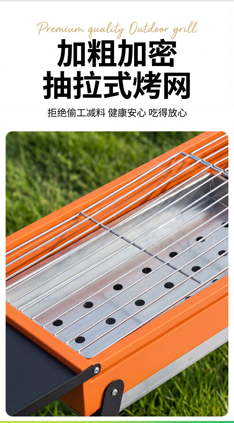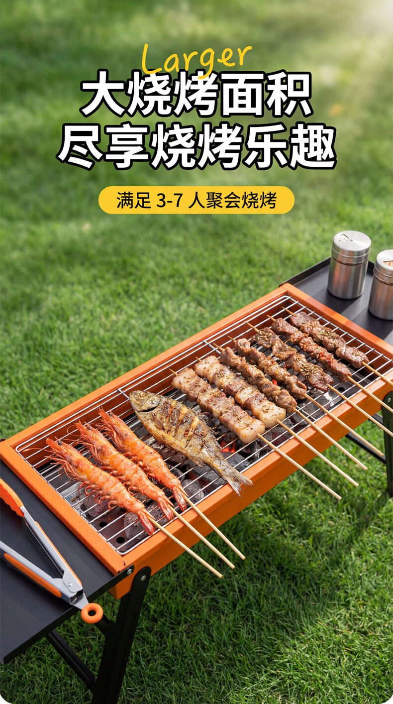 荒野七侠烧烤炉户外烤肉家用叠烤串炉子露营便携木炭锈钢小型烧烤炉 大号折叠烧烤炉-普通款-银色