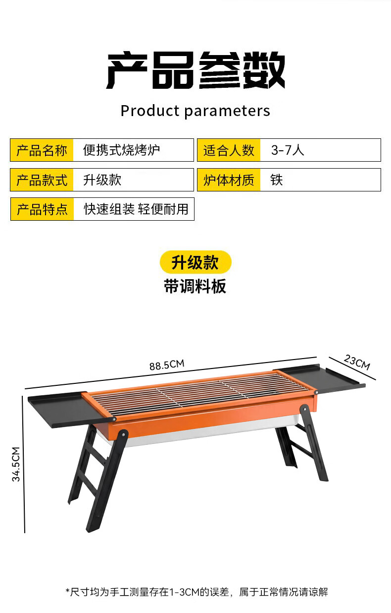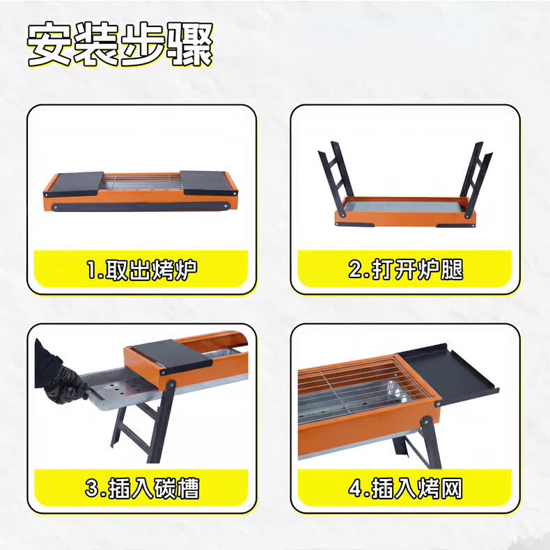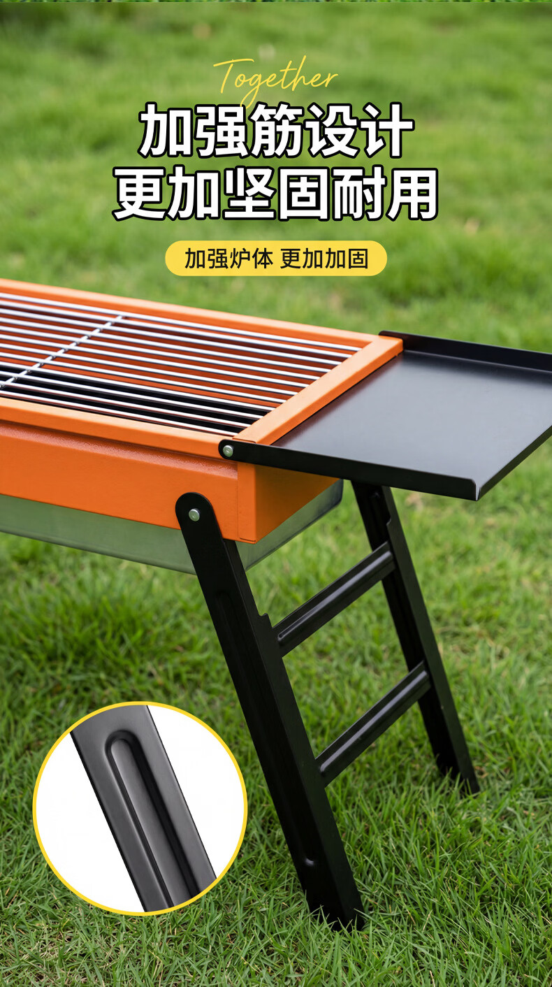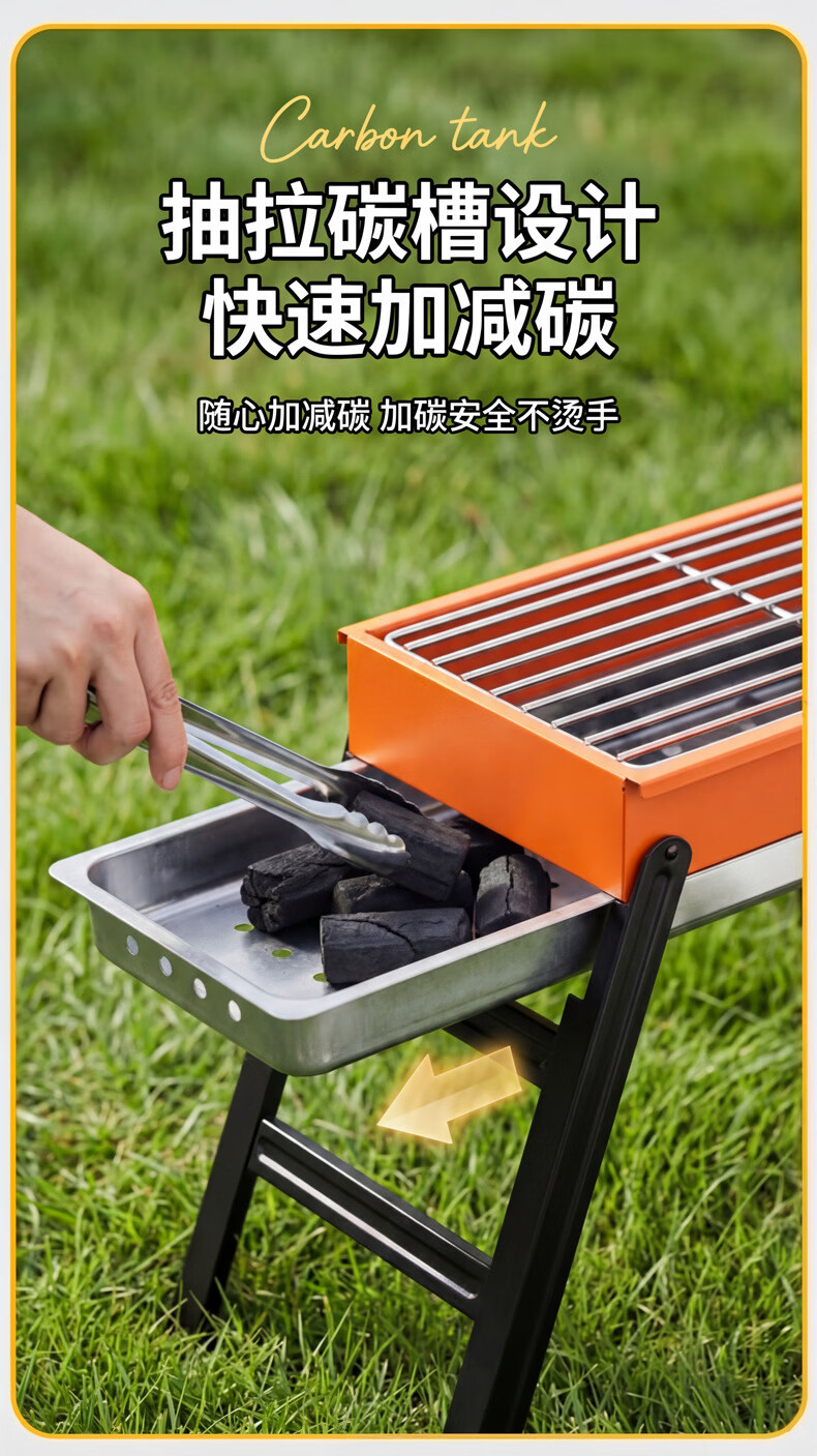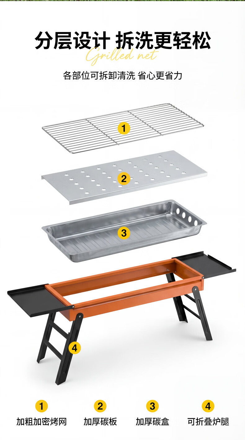 荒野七侠烧烤炉户外烤肉家用叠烤串炉子露营便携木炭锈钢小型烧烤炉 大号折叠烧烤炉-普通款-银色