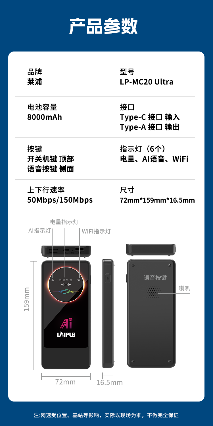 莱浦(laipu)2026莱浦官方正品AI智能语音充电宝随身wif6移动无线路由器网络宽带直播户外车载游戏 AI智能高阶版(黑色)