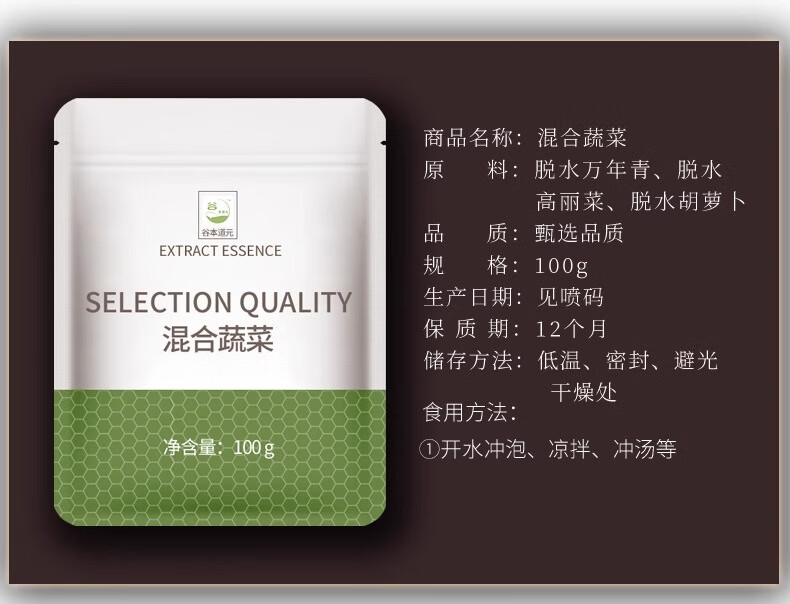 谷本道元混合蔬菜100g脱水干蔬菜包速食泡面伴侣配菜即食干货非冻干青菜