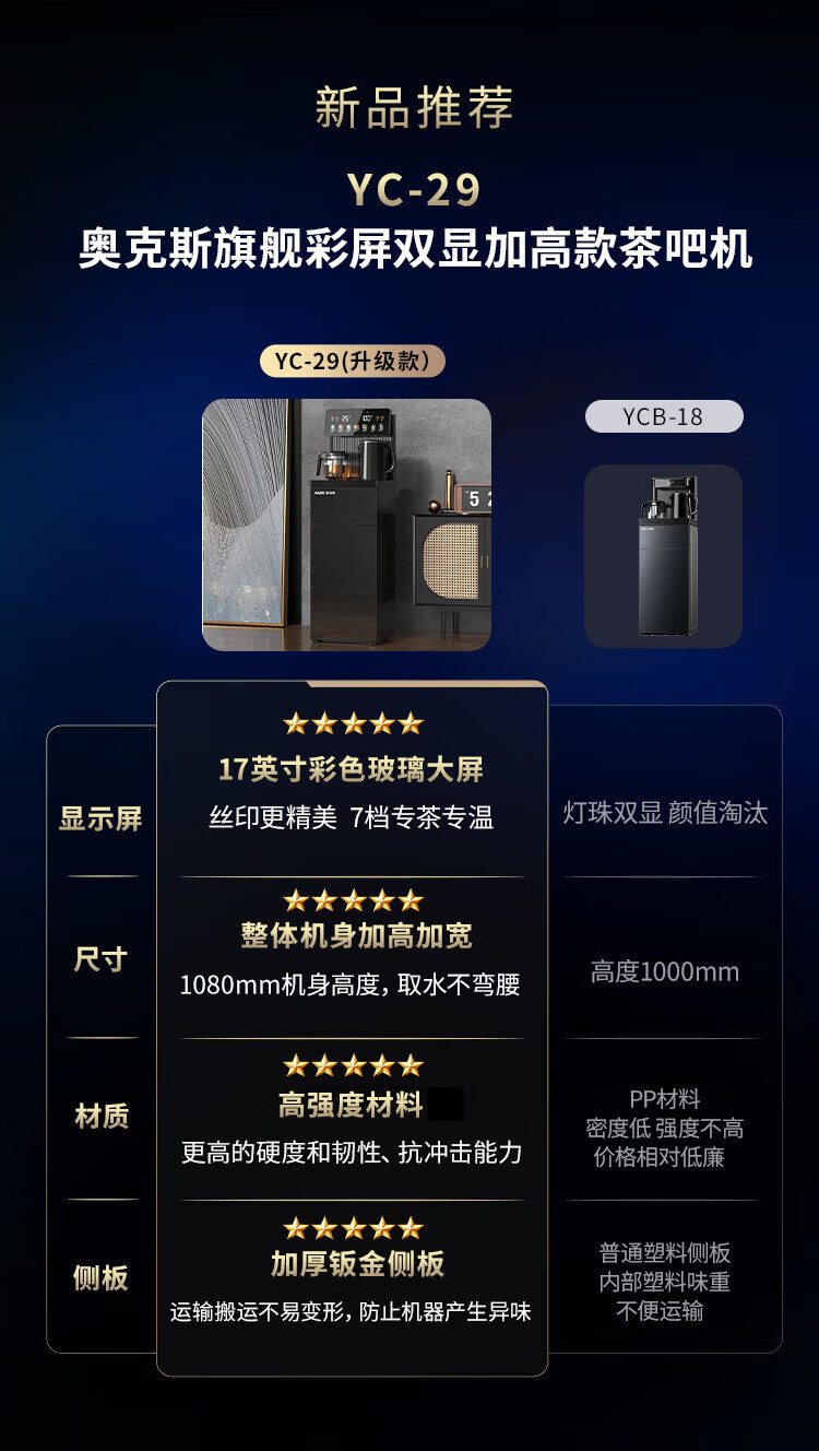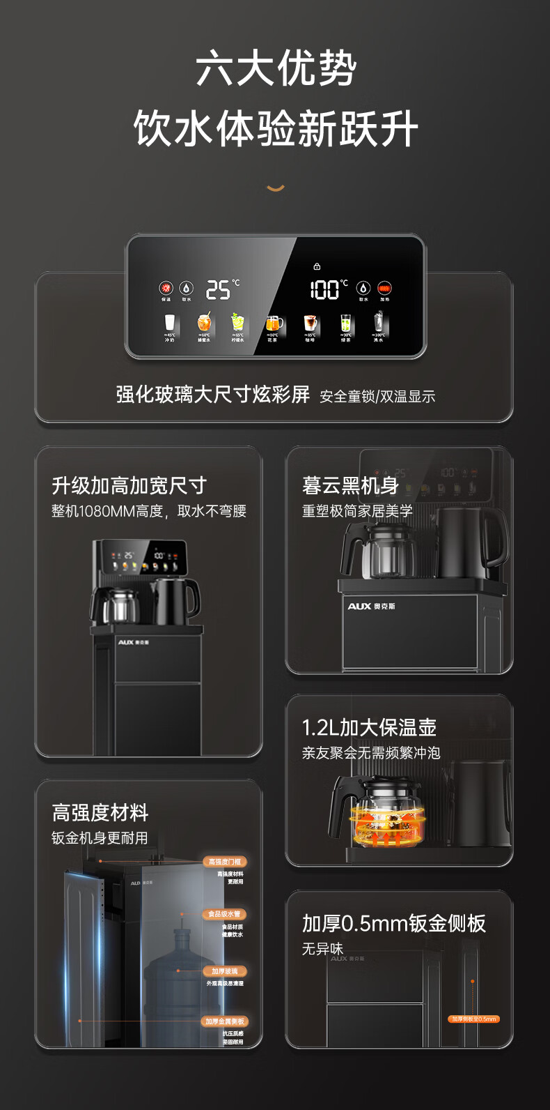 奥克斯(AUX)家用知温系列茶吧机智能遥控保温杯304不锈钢电热水壶 童锁全自动控温下置水桶立式饮水机 YC-29