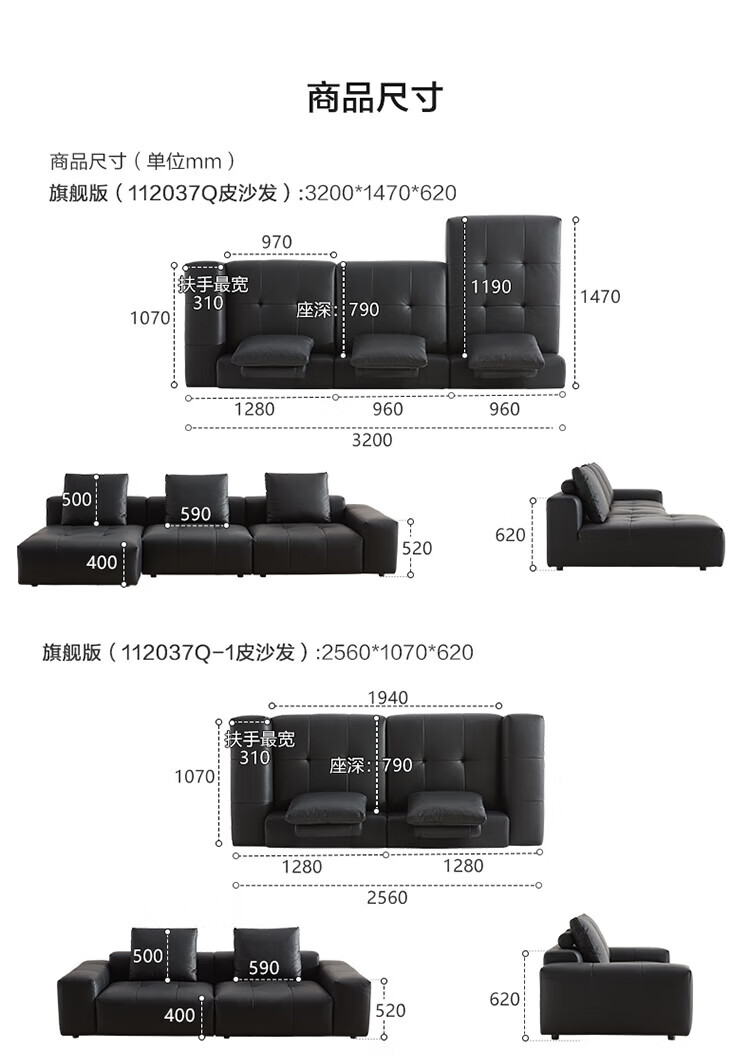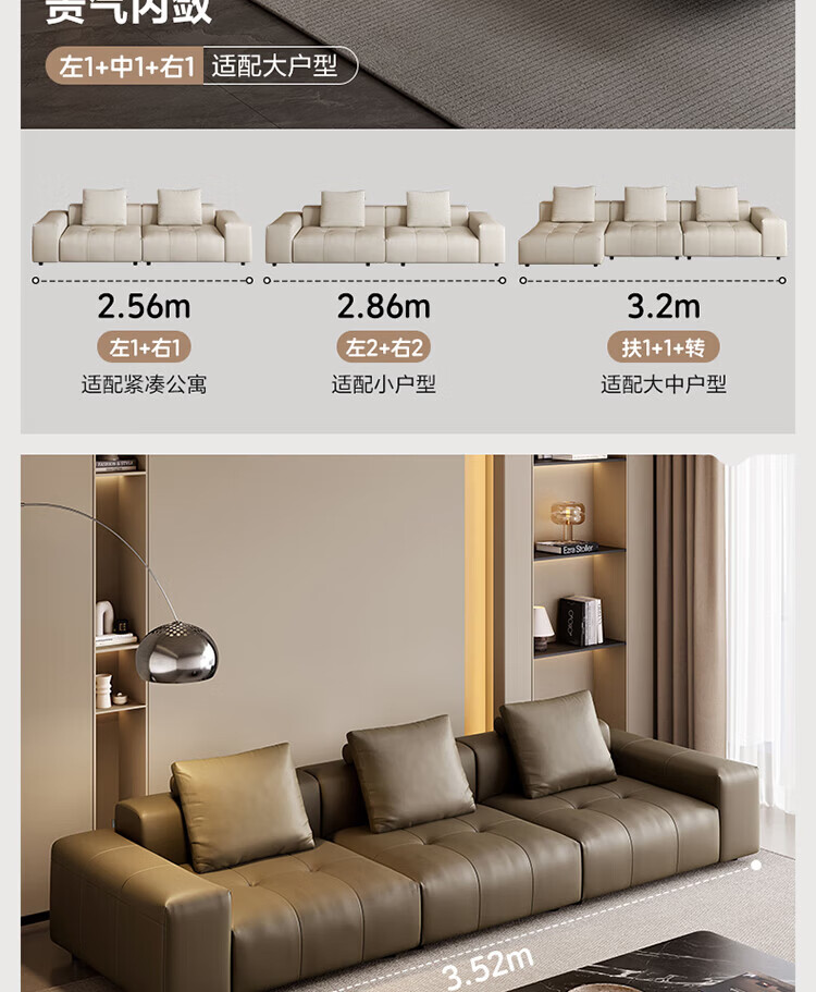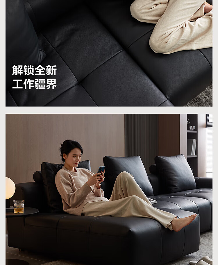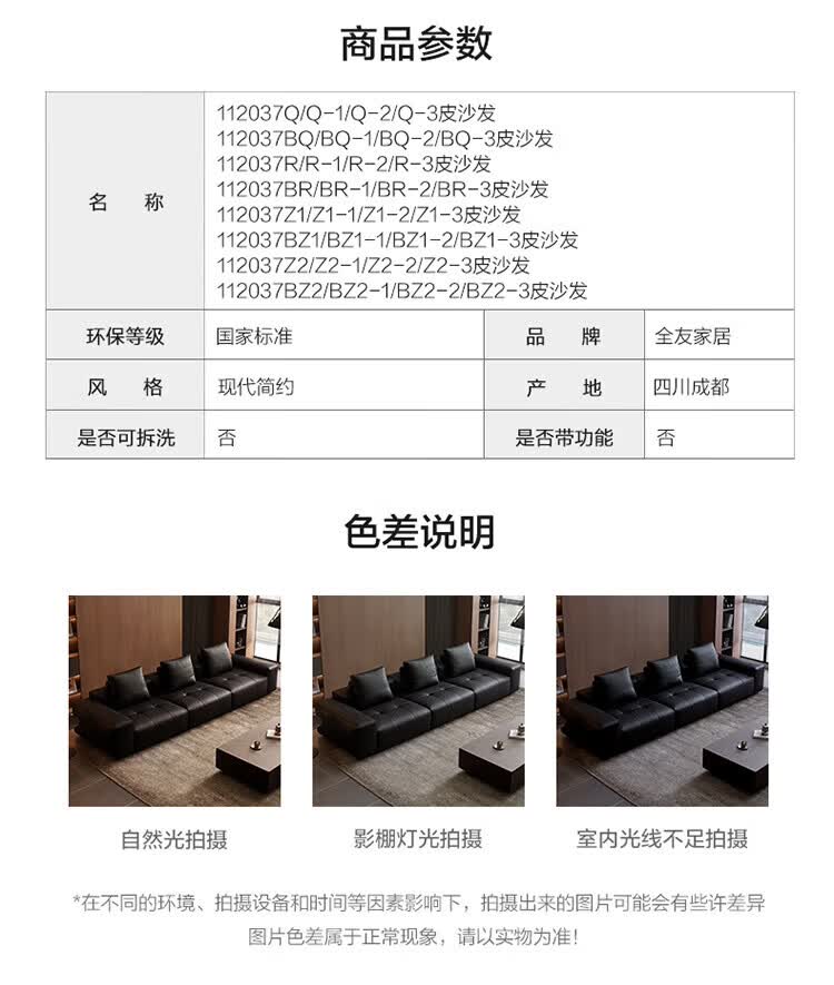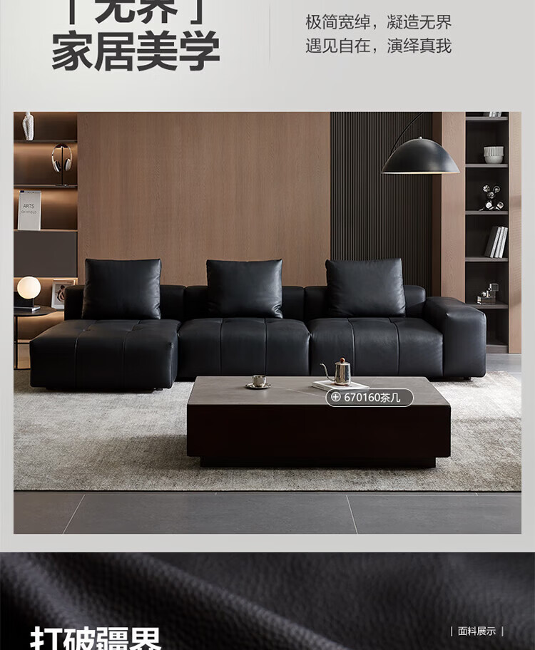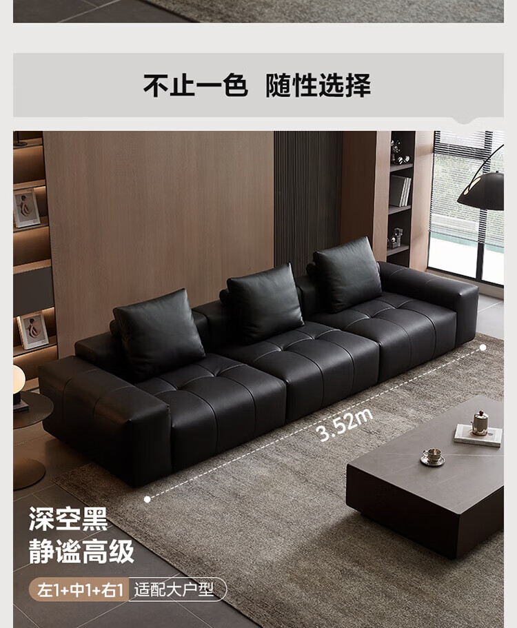 全友(QUANU)家居像素真皮沙发简约客厅家用大小户型头层牛皮黑色直排沙发家具 尊享版1.2mm|黑色|2.56m直排