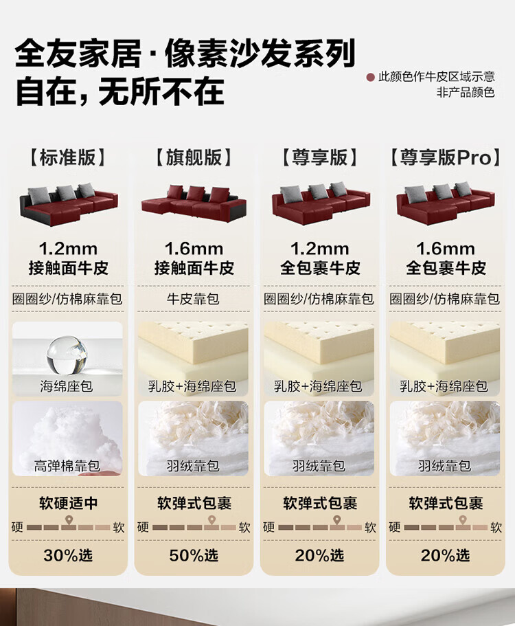 全友家居奶油风茉伊真皮床轻奢高级感2026年新款头层牛皮软包靠背床 【猫抓皮 | 米白 | 高脚】 1.2米x2米 床+床头柜*2+床垫