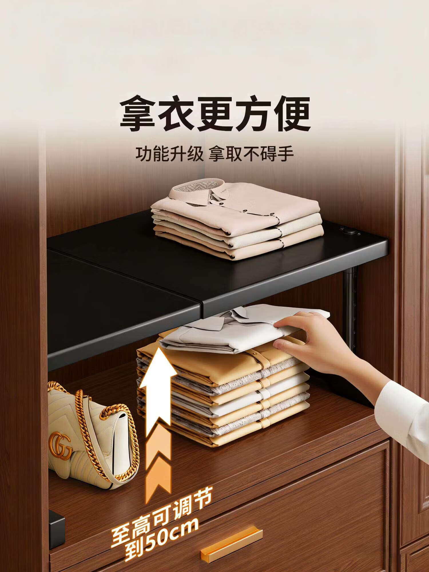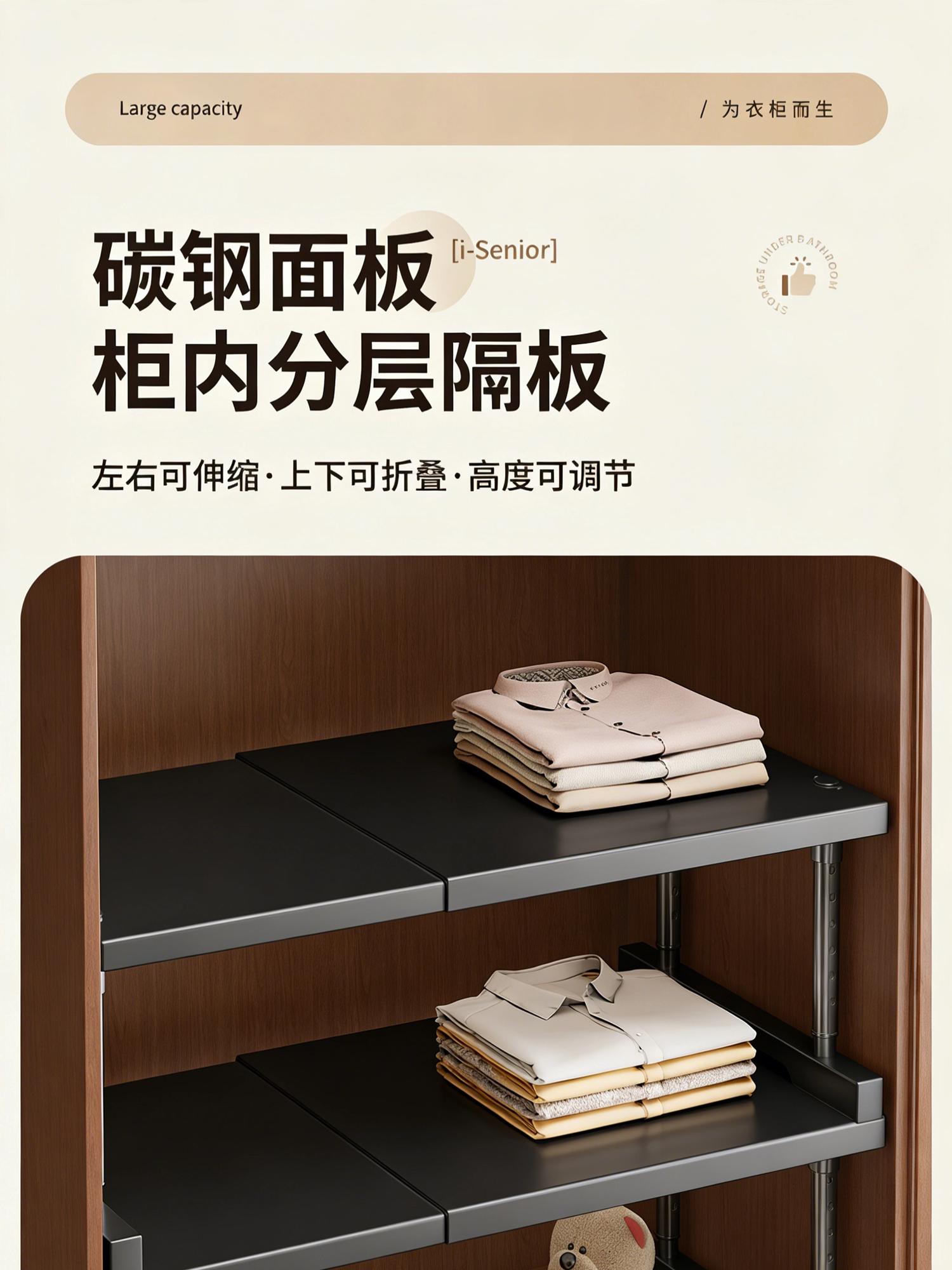 艾仕可(ASCOR)衣柜分层隔板柜子置物架隔断收纳神器橱柜内可伸缩架子鞋柜储物架 磨砂黑【长40-65】宽35cm【高25-35】