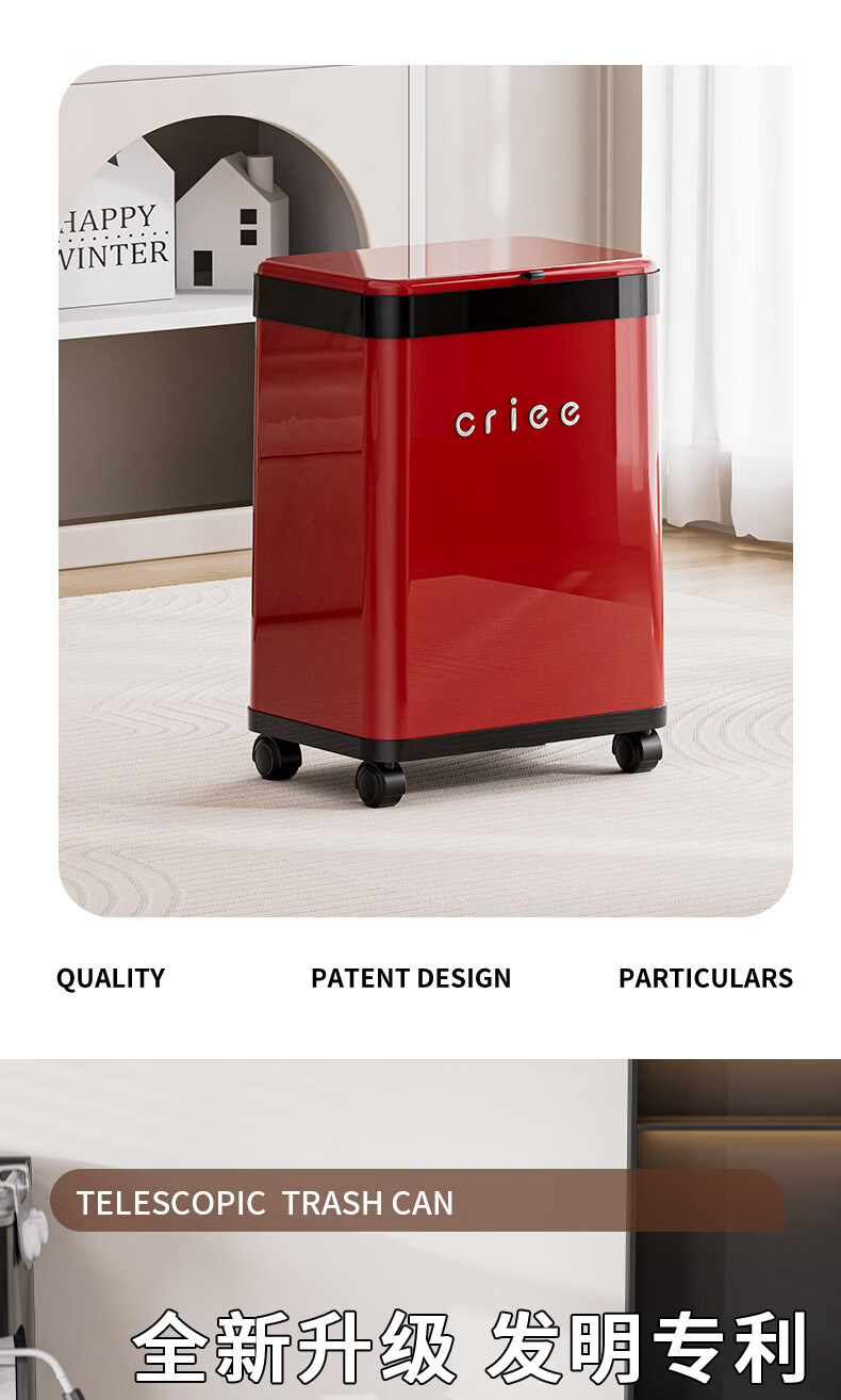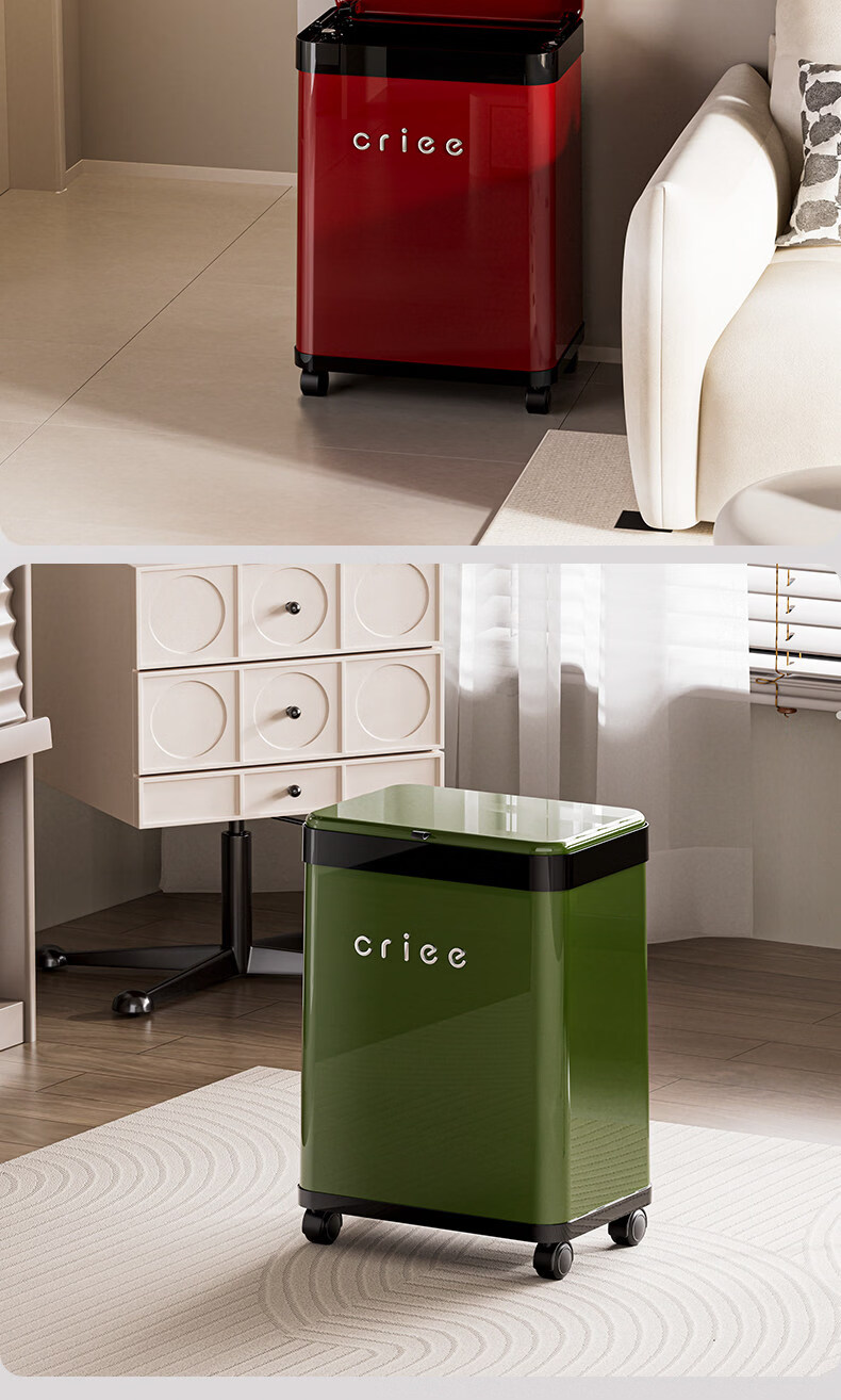 艾仕可(ASCOR)垃圾桶家用客厅卧室2026新款高颜值大号轻奢厨房厕所高脚翻盖纸篓 太空舱-红色【滑轮款360°顺滑】