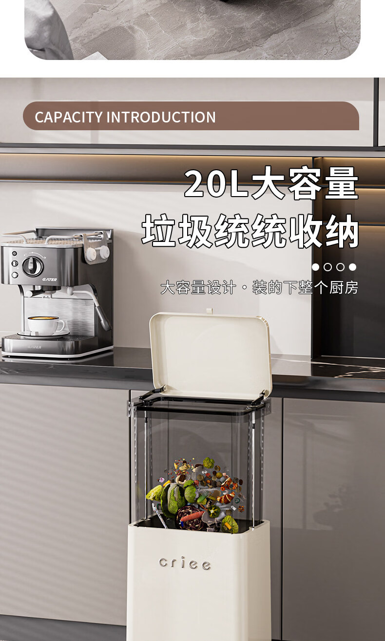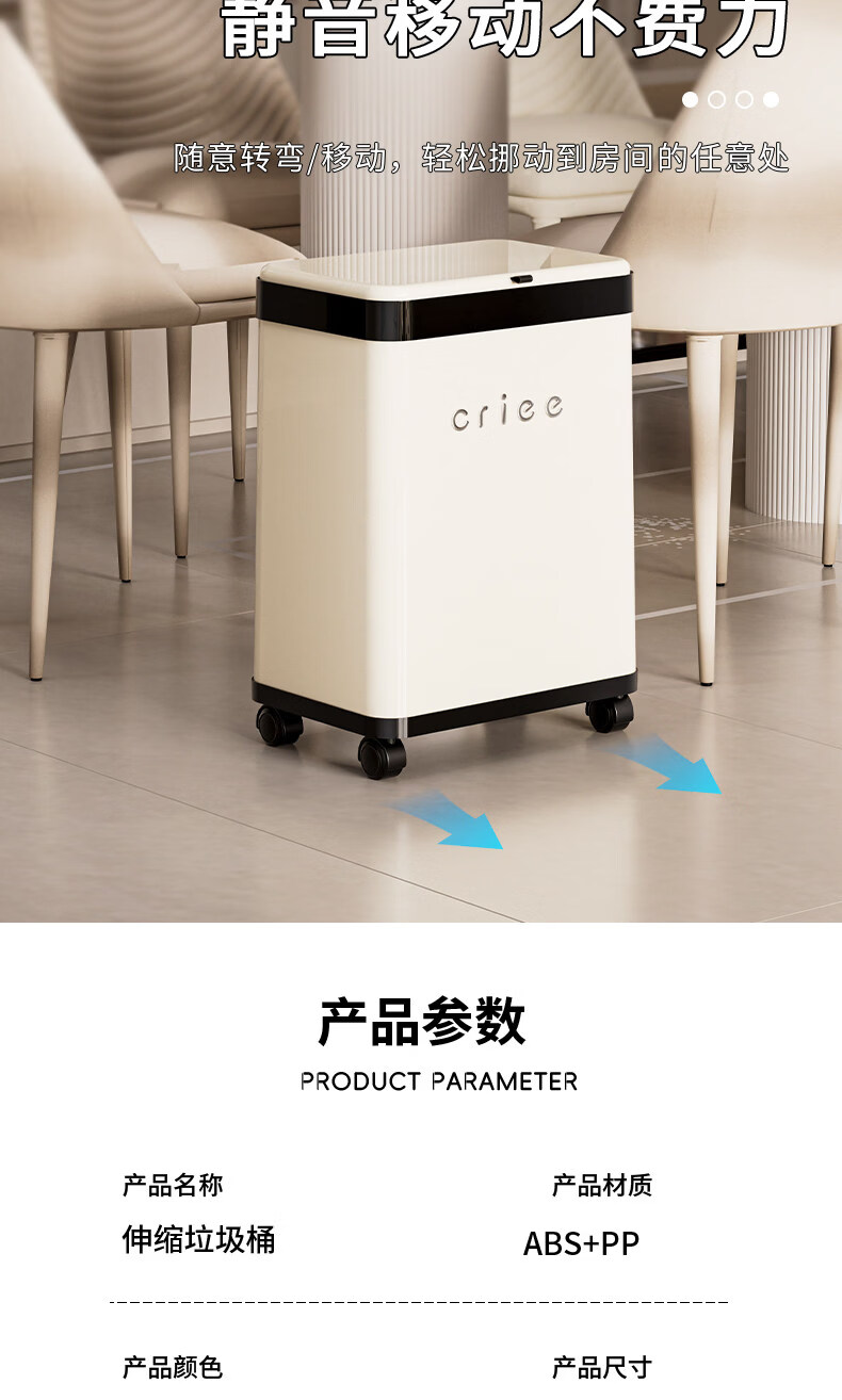 艾仕可(ASCOR)高脚垃圾桶2026新款家用滑盖式免弯腰厨房垃圾筒可移动大容量纸篓 奶油白【高脚免弯腰】