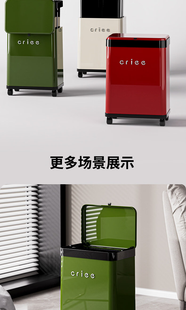 艾仕可(ASCOR)厨房垃圾桶免弯腰大容量2026新款高档颜值客厅家用轻奢可移动带盖 厨用垃圾桶-黑绿【可升降/免弯腰】