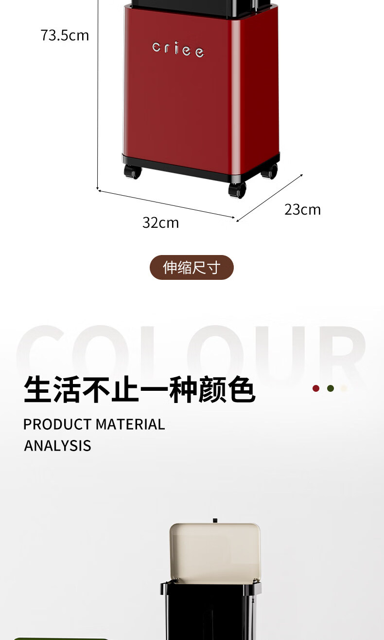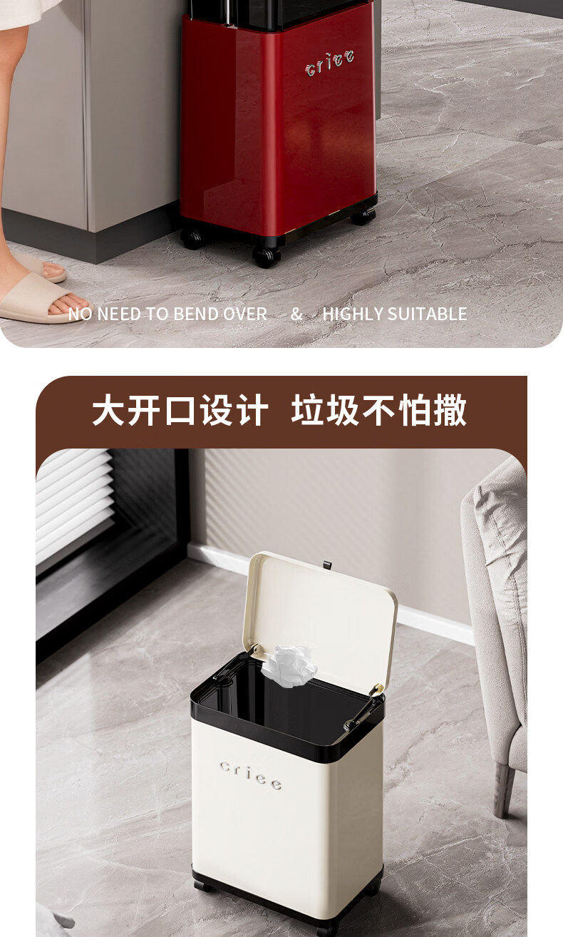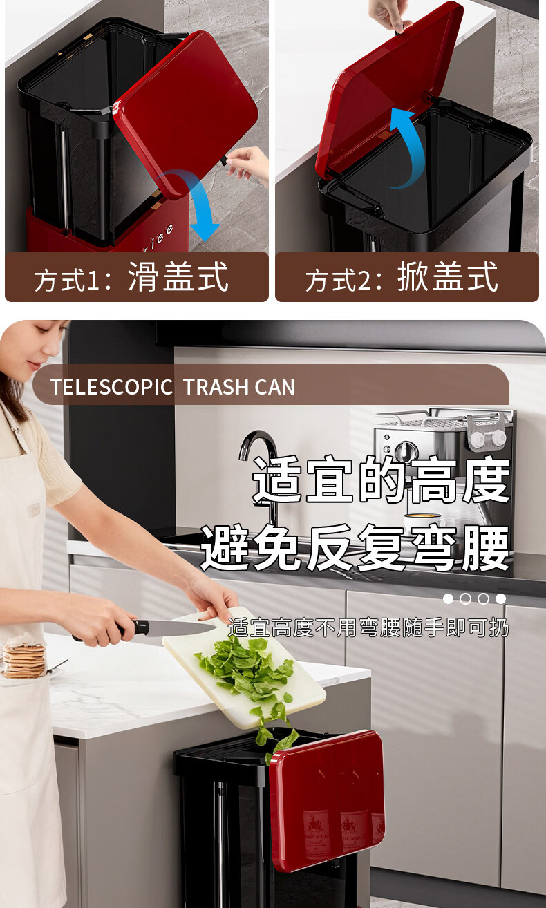 艾仕可(ASCOR)高脚垃圾桶2026新款家用滑盖式免弯腰厨房垃圾筒可移动大容量纸篓 中古红【高脚免弯腰】