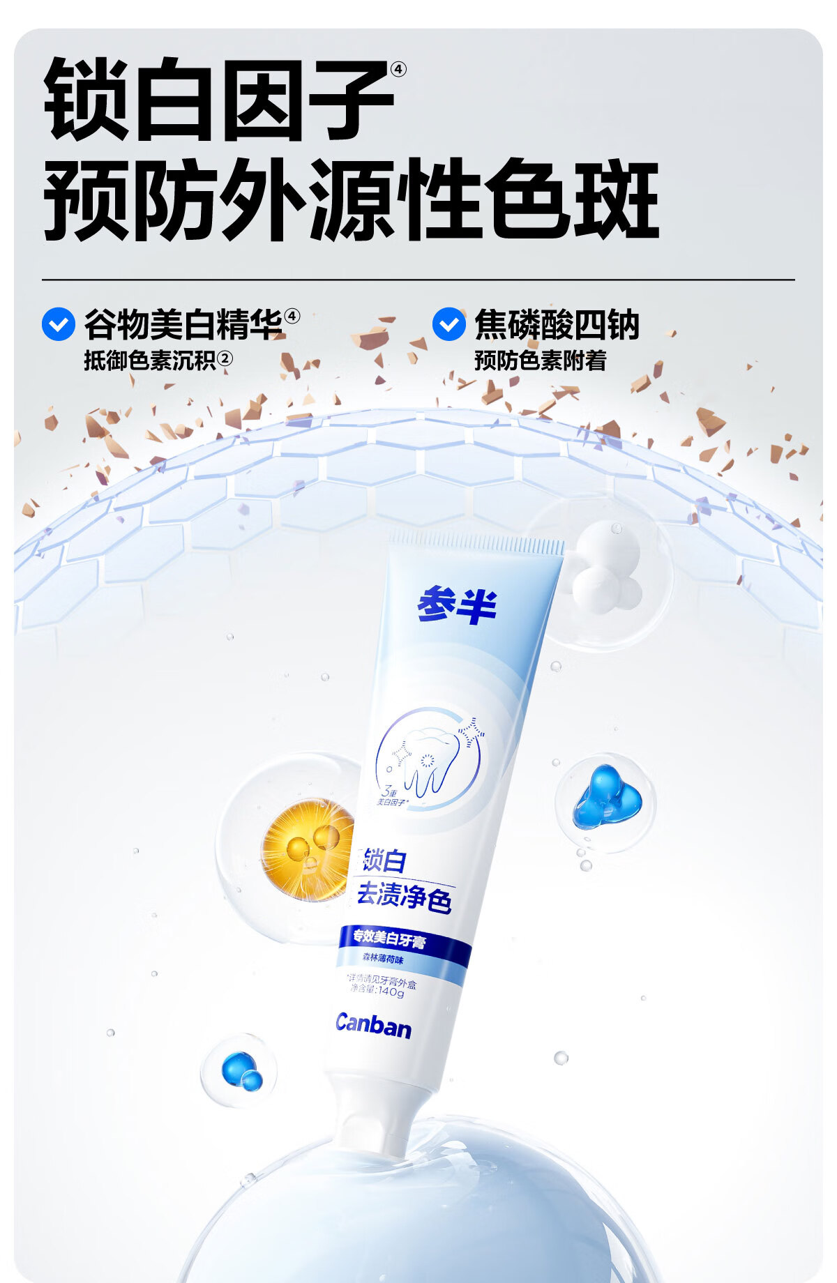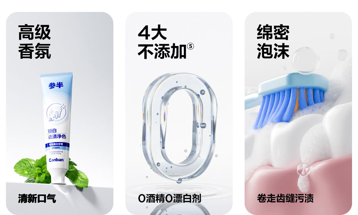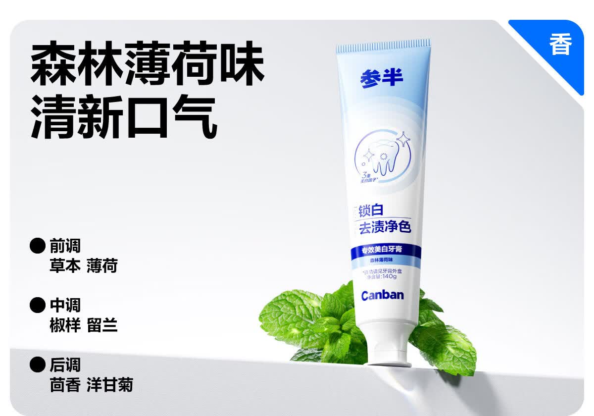 参半薄荷清新牙膏 减轻口臭去口腔异味口气持久凉感清茶薄荷味60g*3